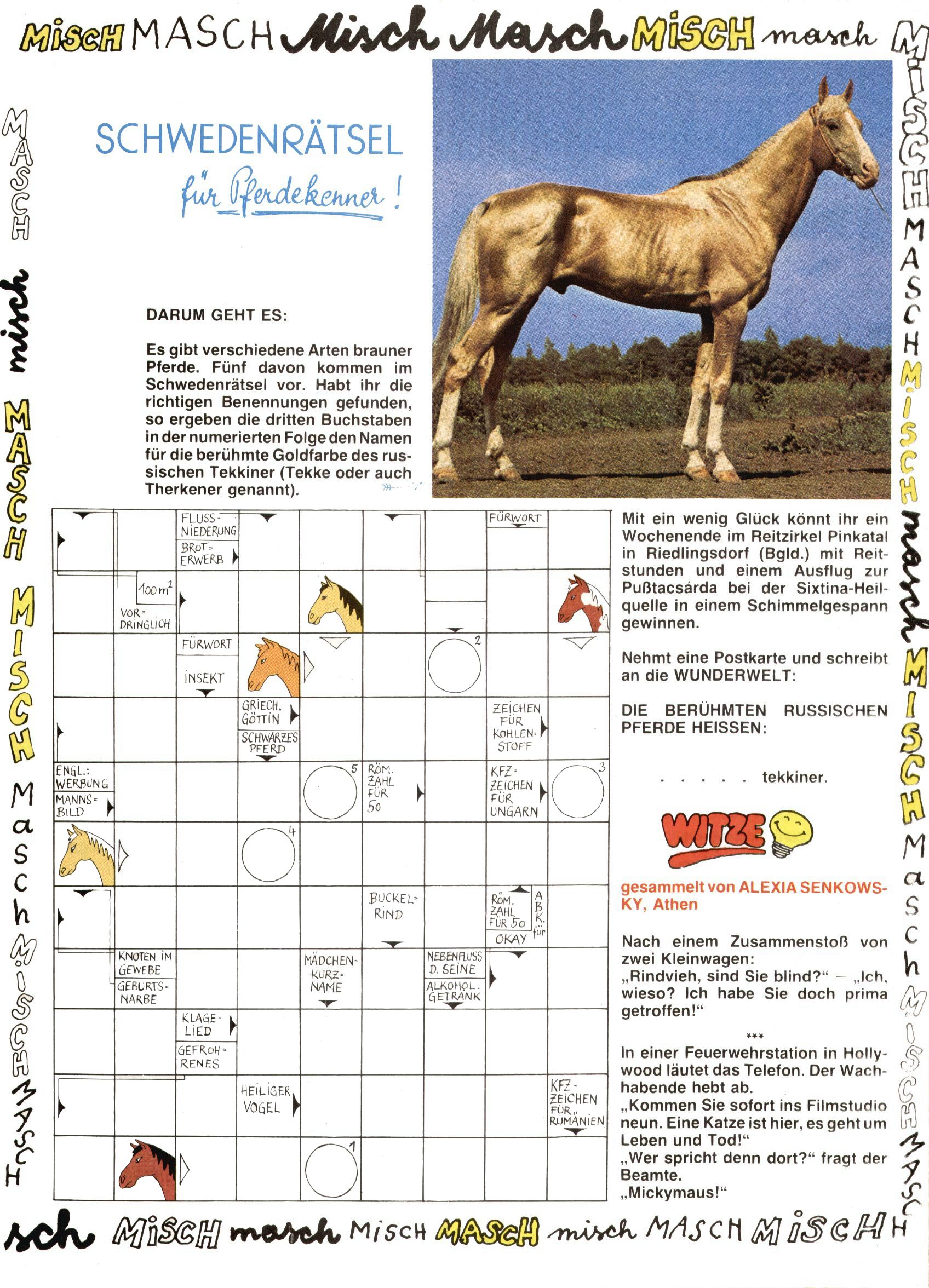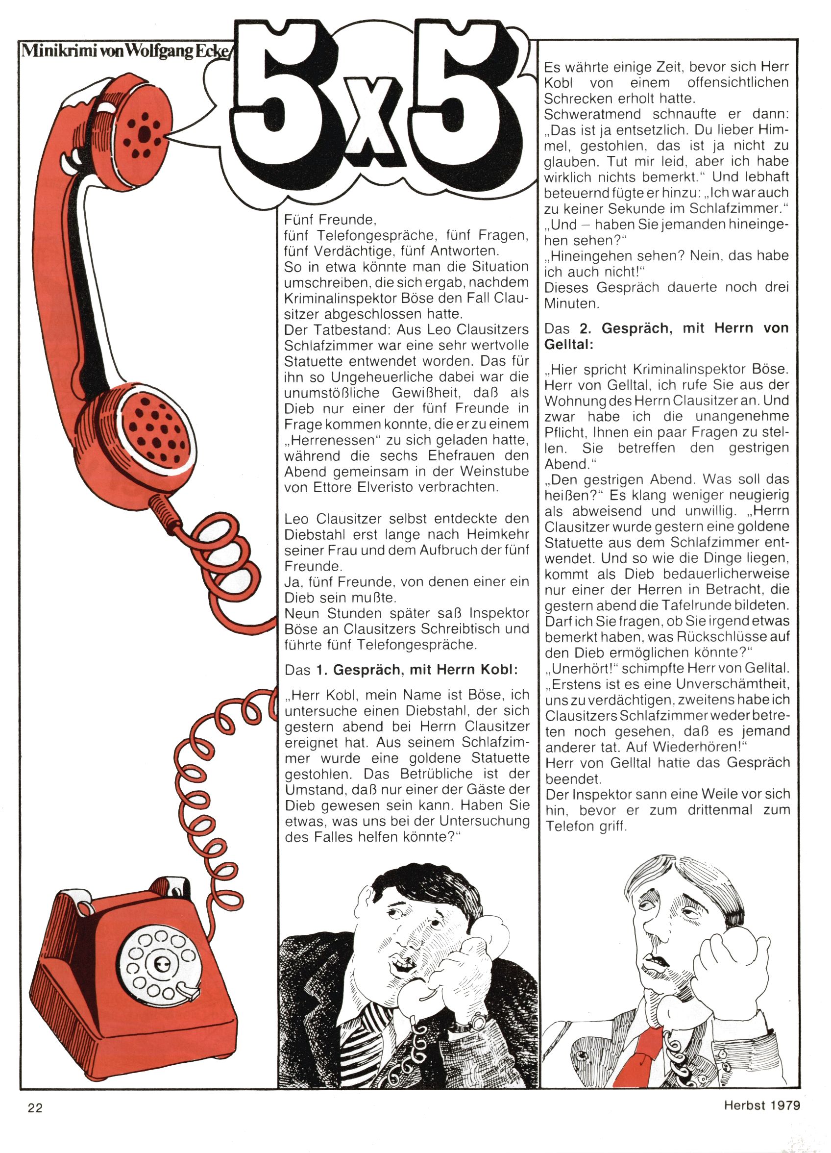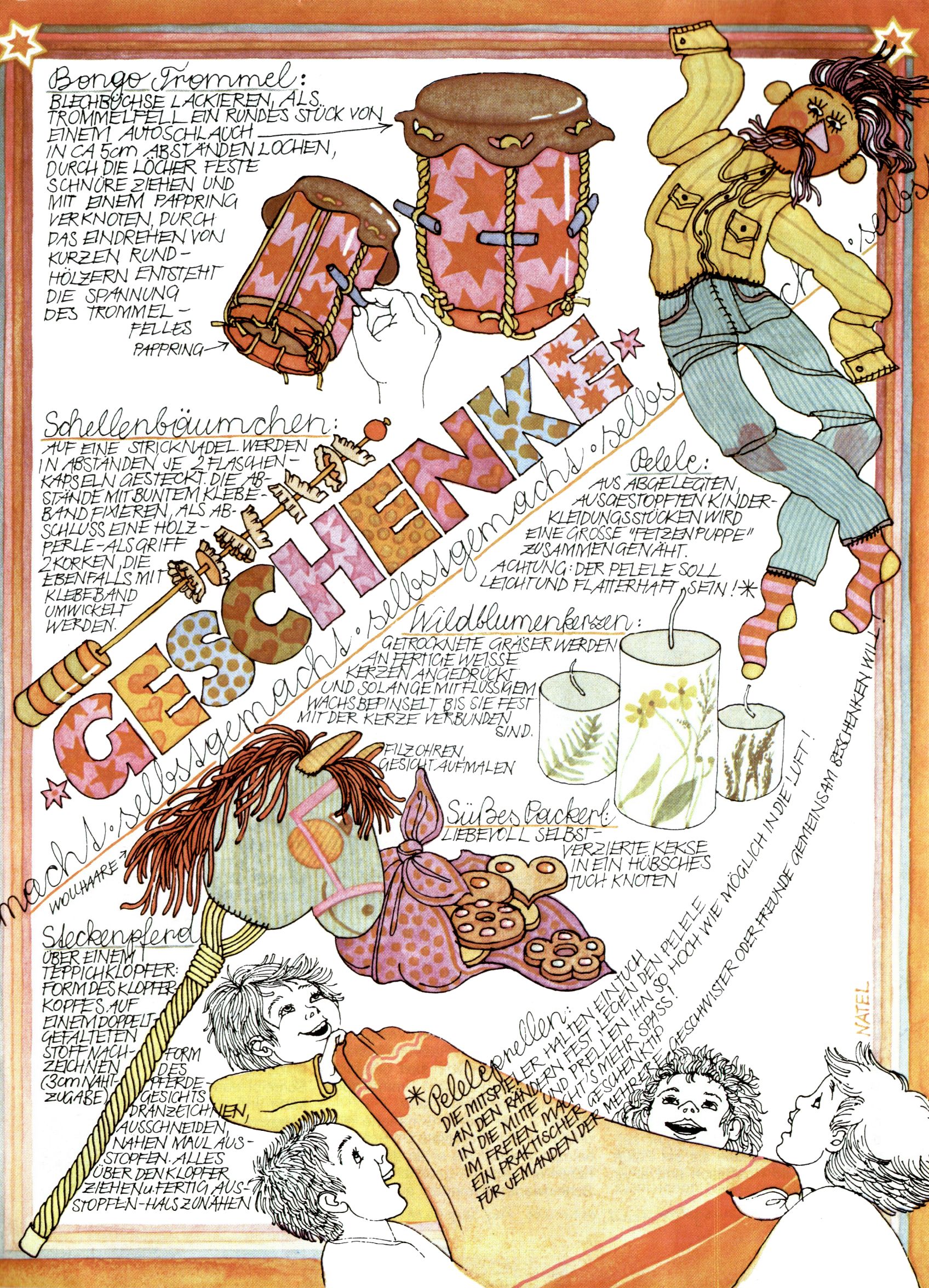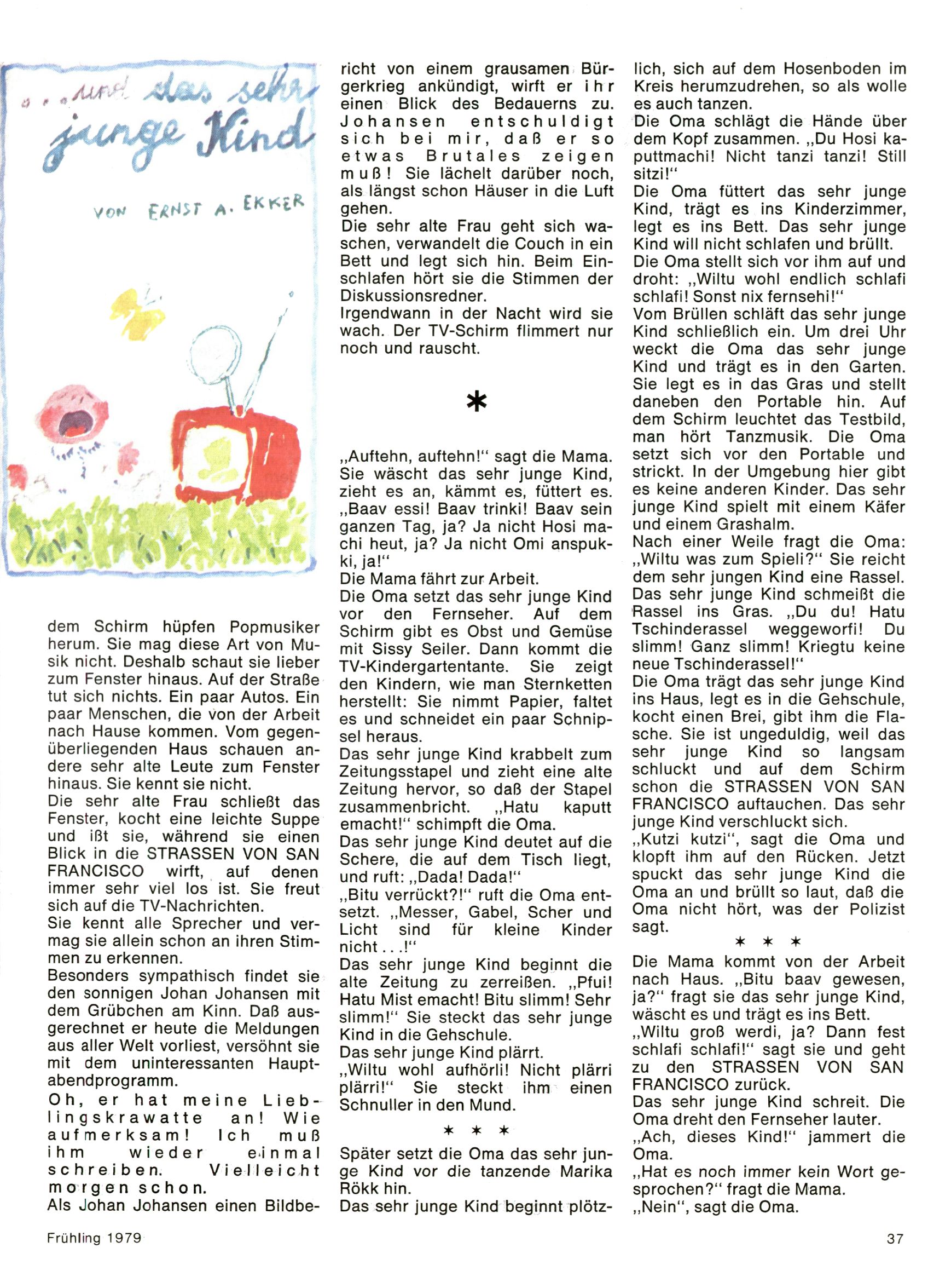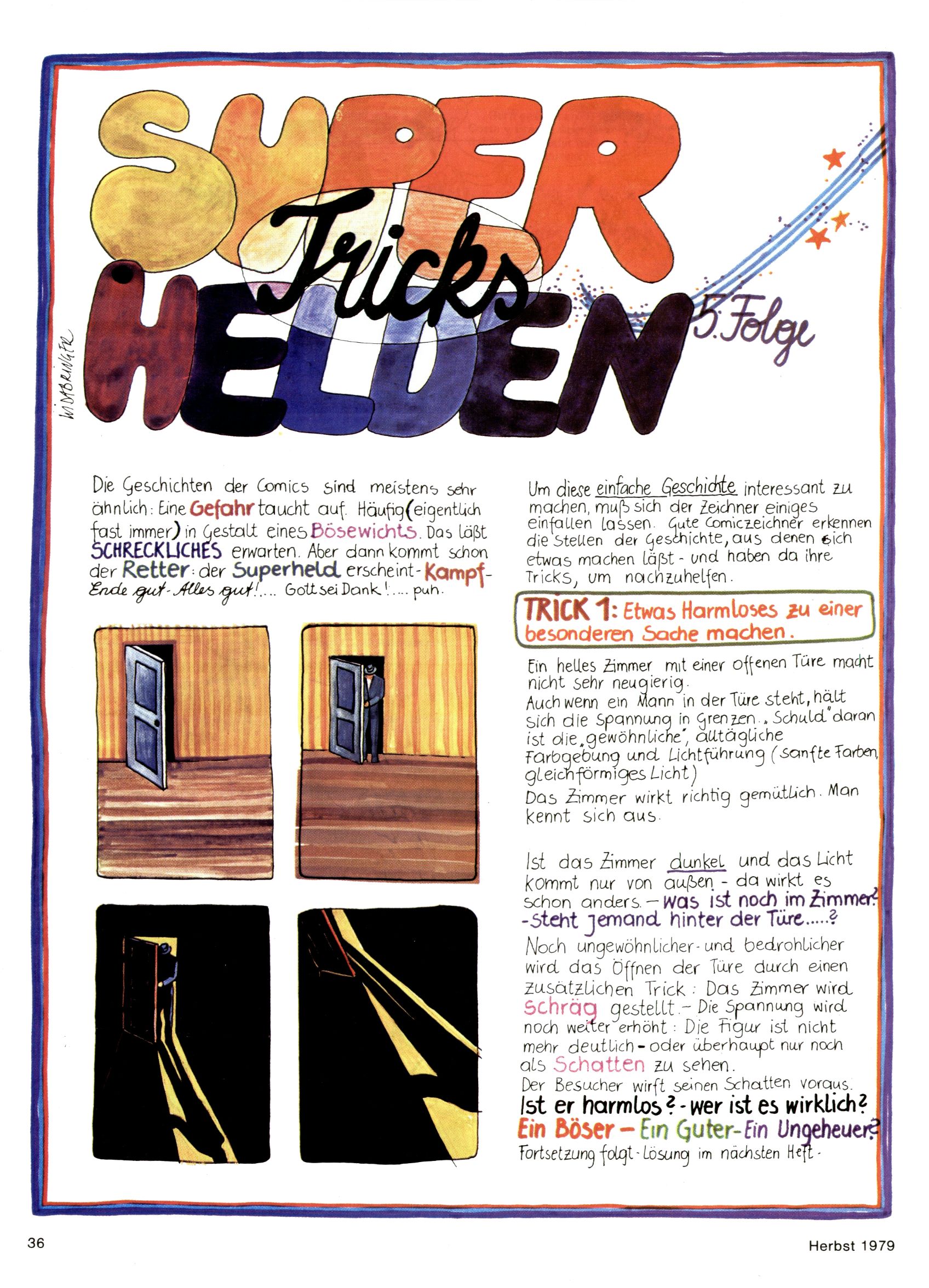 1979 - Zeit für Feinheiten Nachdem man das Grobe geklärt hatte, war es 1979 an der Zeit, der neuen Zeitung einen Schliff zu verpassen. Wilhelm Dabringer begann sich an die Bastelbögen heranzutasten, wenn seine Modelle zunächst auch sehr simpel und nichteinmal in Farbe gestaltet wurden. Die allgemeinen Bastelideen brachten nach wie vor Renate Ludescher und Helga Croy zu Papier. Als erstes echtes Gimmick der Zeitung fand sich zum Jahresausklang eine 2-Minuten-Folien-Schallplatte, nachdem aus der im Sommer mit Fragebogen angekündigten Langspielplatte wohl aus Kostengründen letztlich doch nichts geworden war. Im Herbstheft hatte es aber immerhin bereits eine Art Bastelfigur gegeben ('Glühbirne als Verwandlungskünstler'). Nach der Verabschiedung von Asterix startete Jörg Wollmann gemeinsam mit G. Januszewski die skurrile Umwelt-Cartoon-Fortsetzungsgeschichte Direktor Karl Meidlinger und der Flußgeist. Nach wie vor waren Ernst A. Ekker, Renate Welsh und Wolfgang Ecke die Hauptautoren. Ernst A. Ekker war über alle Jahre hinweg auch immer als Kino-Rezensionist unterwegs. Christine Nöstlinger bekam 1979 ein zweites Gastspielangebot. Immer mehr Reportagen behandelten Umweltthemen - die Aktiv-Umweltspürnasen waren ins Leben gerufen worden. Jugendliche bekamen die Möglichkeit, selbständig unter wissenschaftlicher Anleitung Experimente durchzuführen. Später gründete Ingrid Greisenegger mit Klaus Pitter und Werner Katzmann den Umweltspürnasenclub. Insgesamt wurden 7 Aktivbücher für Umweltspürnasen herausgegeben und ab dem Jahr 2000 sogar nochmals aufgelegt. Mit einem eigenen WunderWelt-Fragebogen versuchte man erstmals, die Meinung der Leser zu hinterfragen, um den weiteren Verlauf der Zeitung den Leserwünschen entsprechend steuern zu können. |
