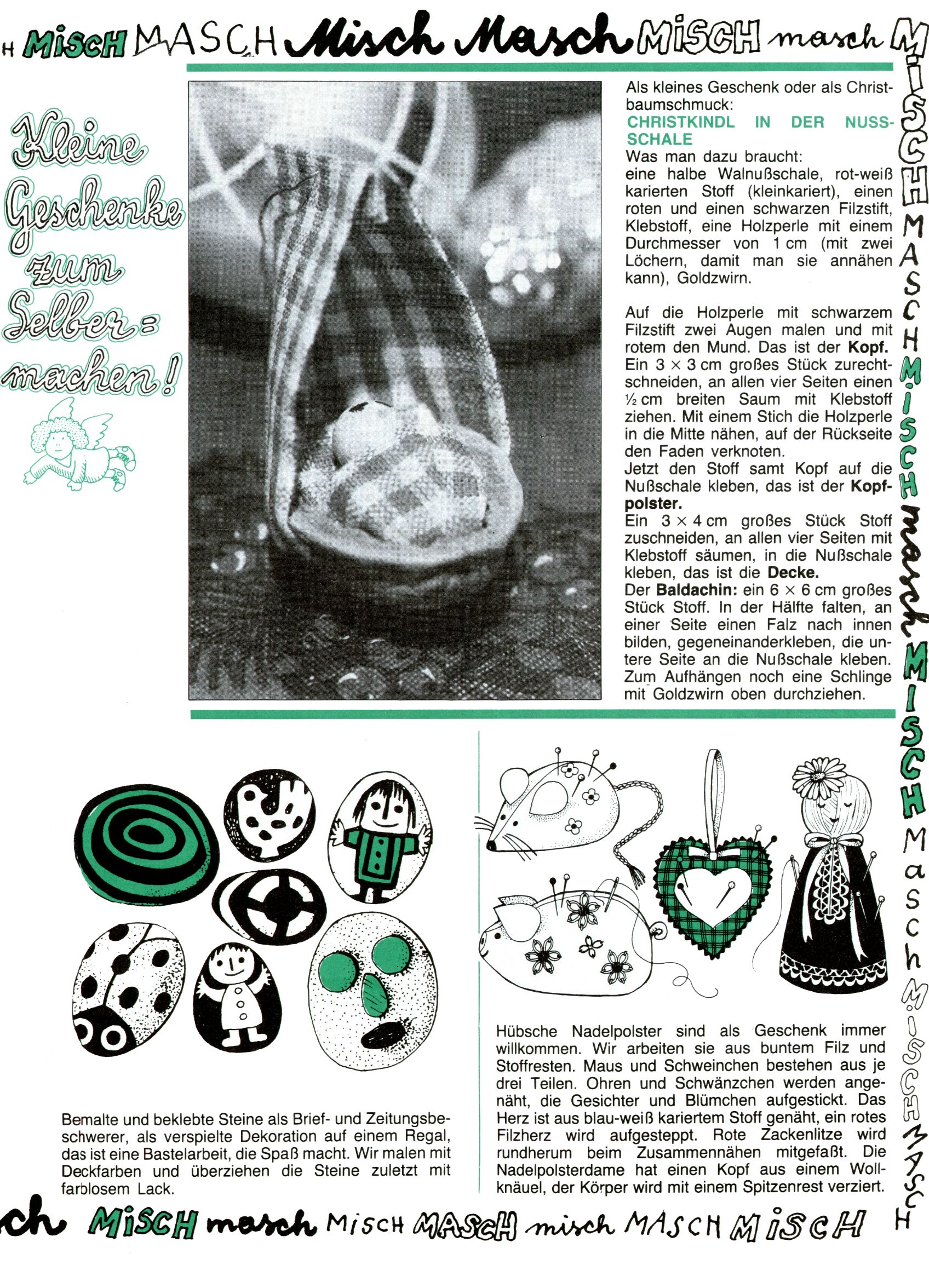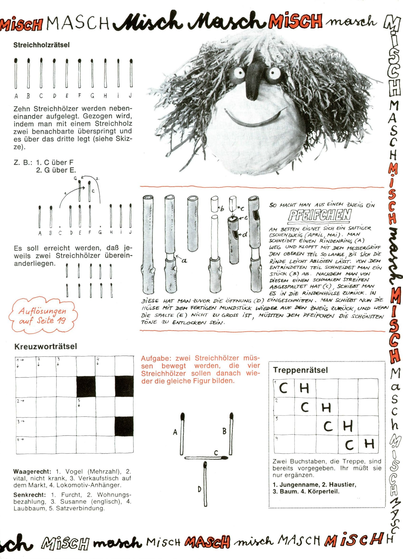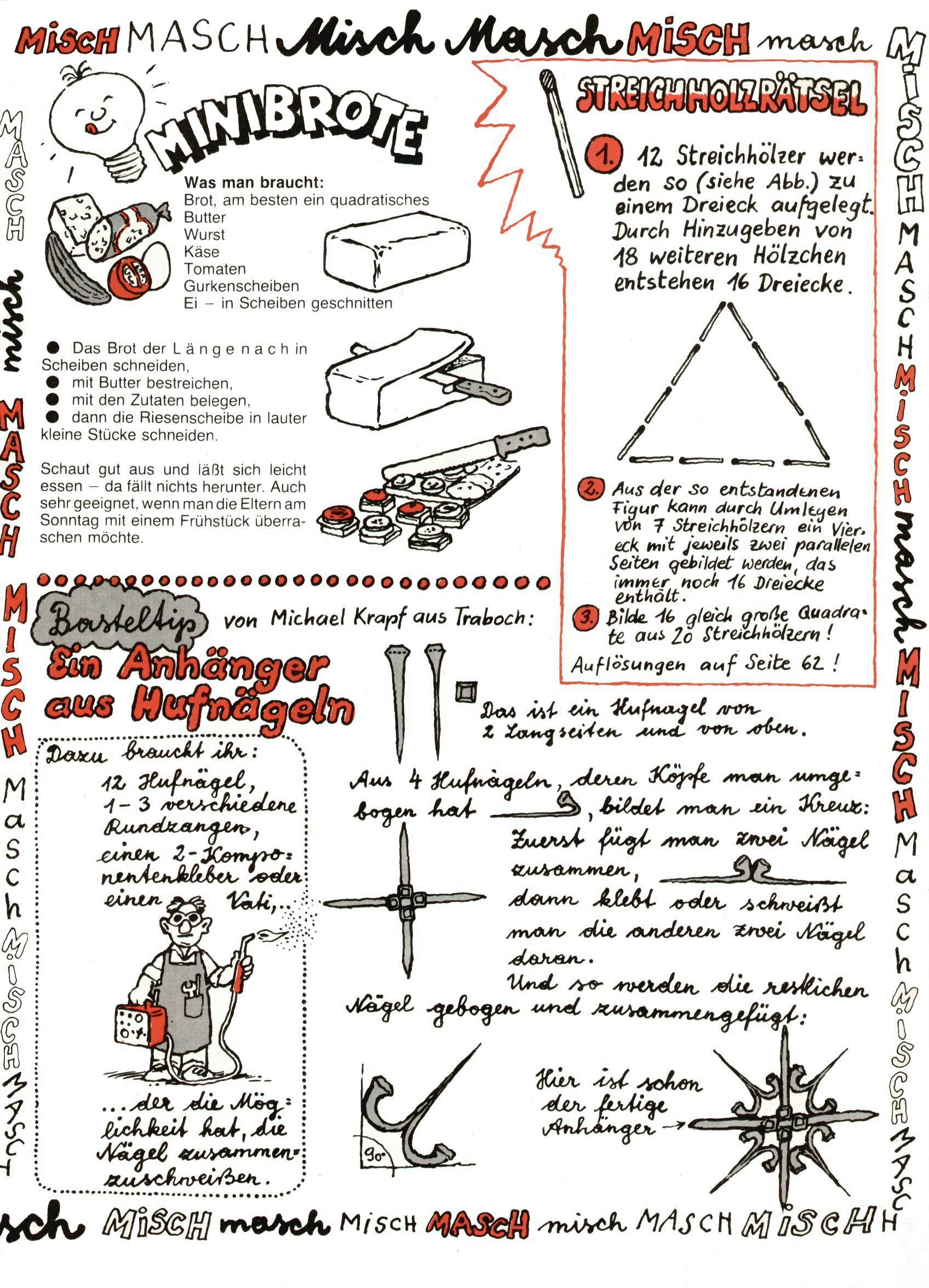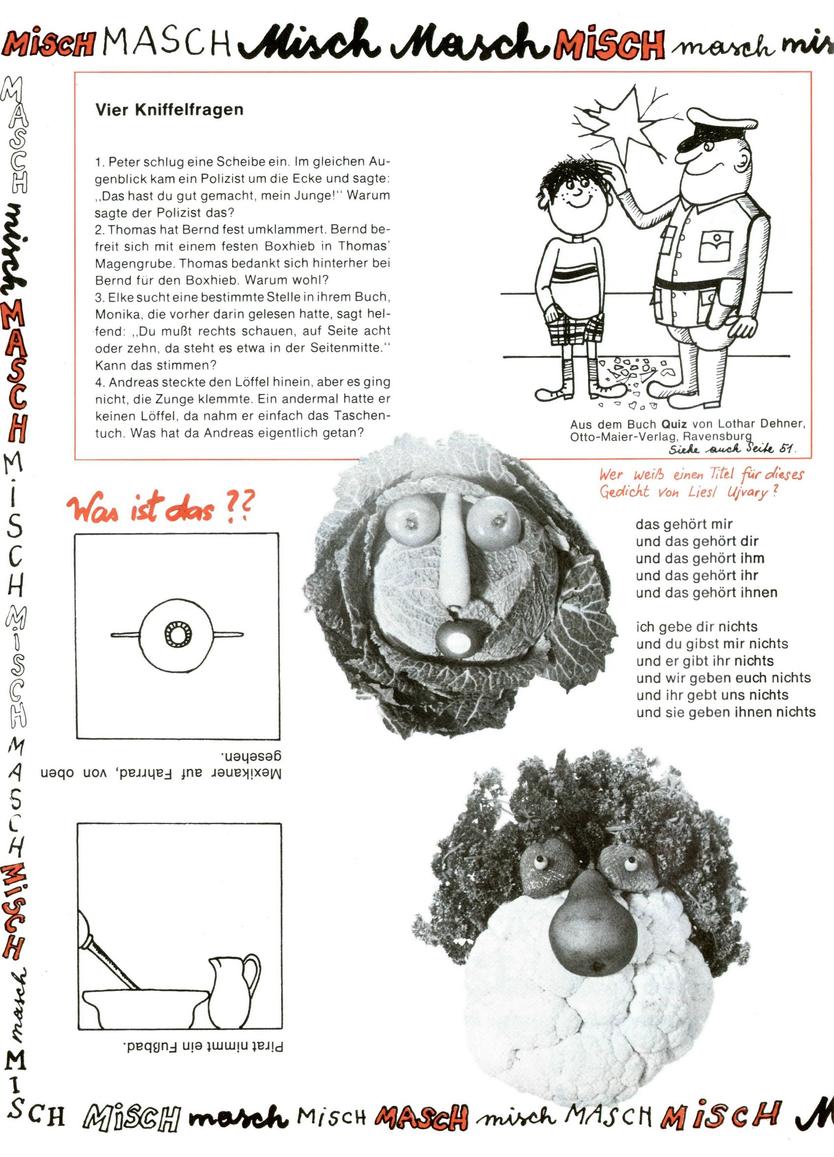 [A]usschneiden | [B]asteln/Handwerken | [C]omic | [E]rzählung/Märchen/Sage | [F]oto/Bild [G]edicht/Lied | [I]nformatives | [N]atur | [R]ätsel | [S]port/Spiel | [T]echnik/Wissen | [W]erbung |