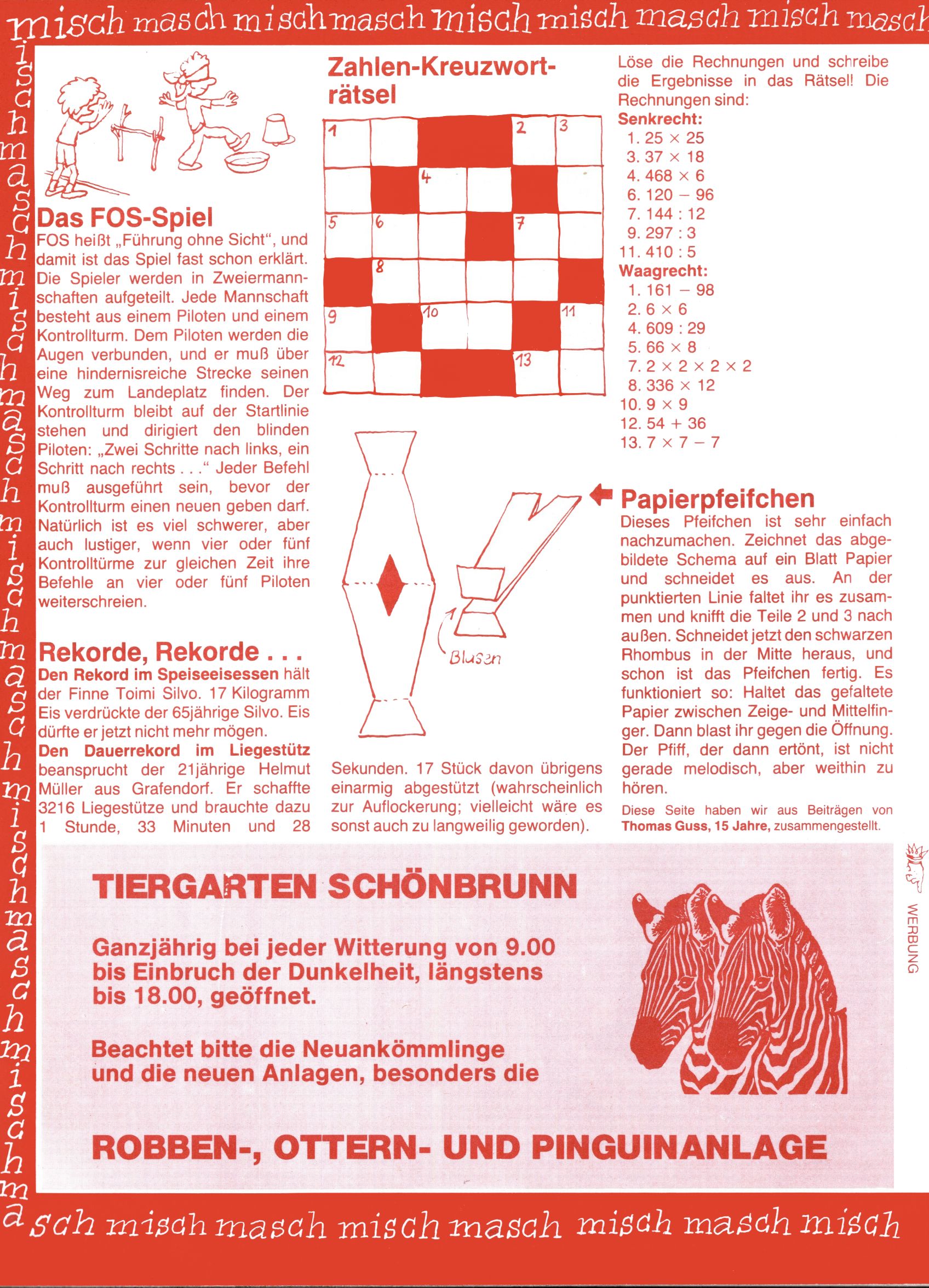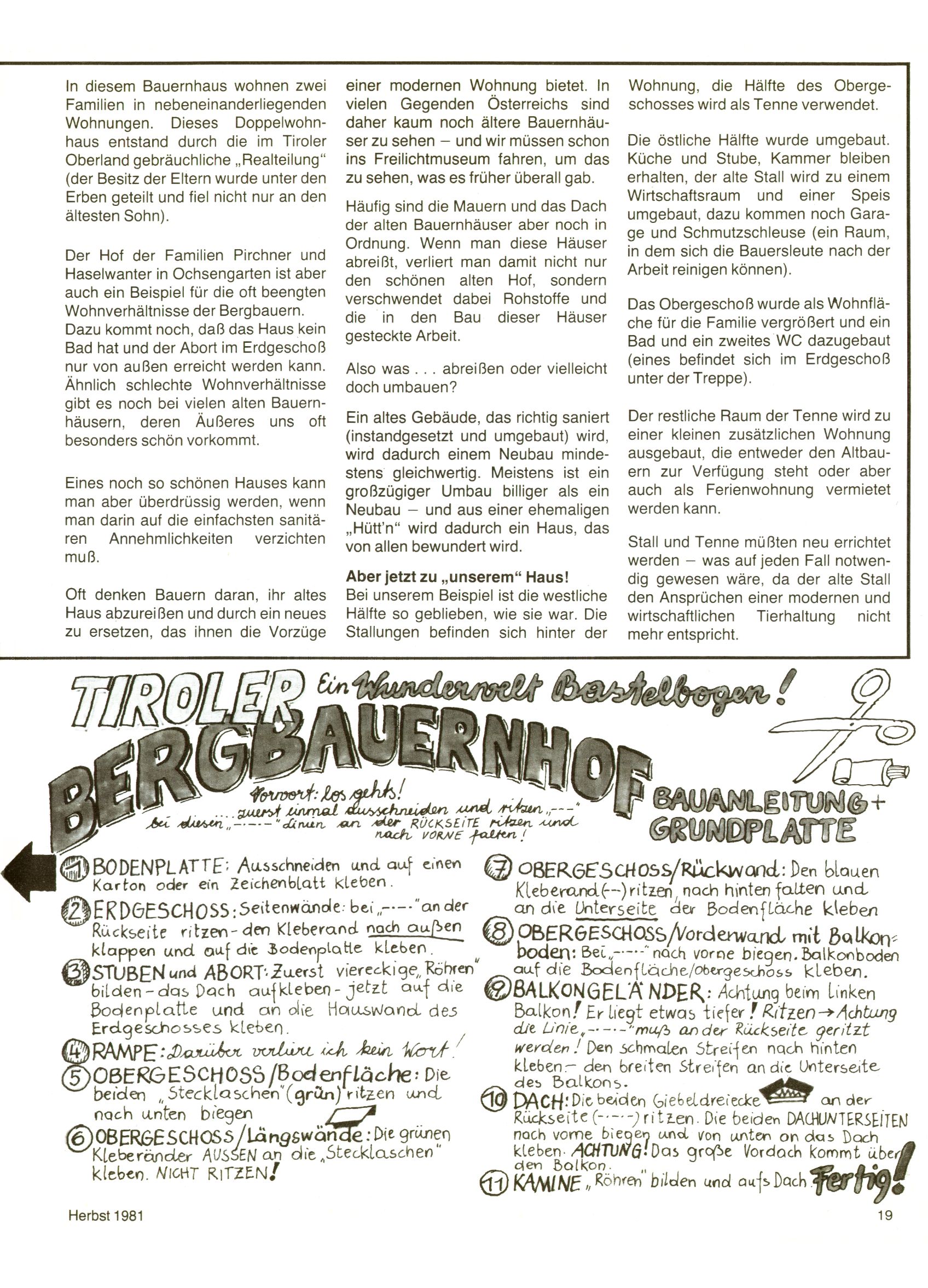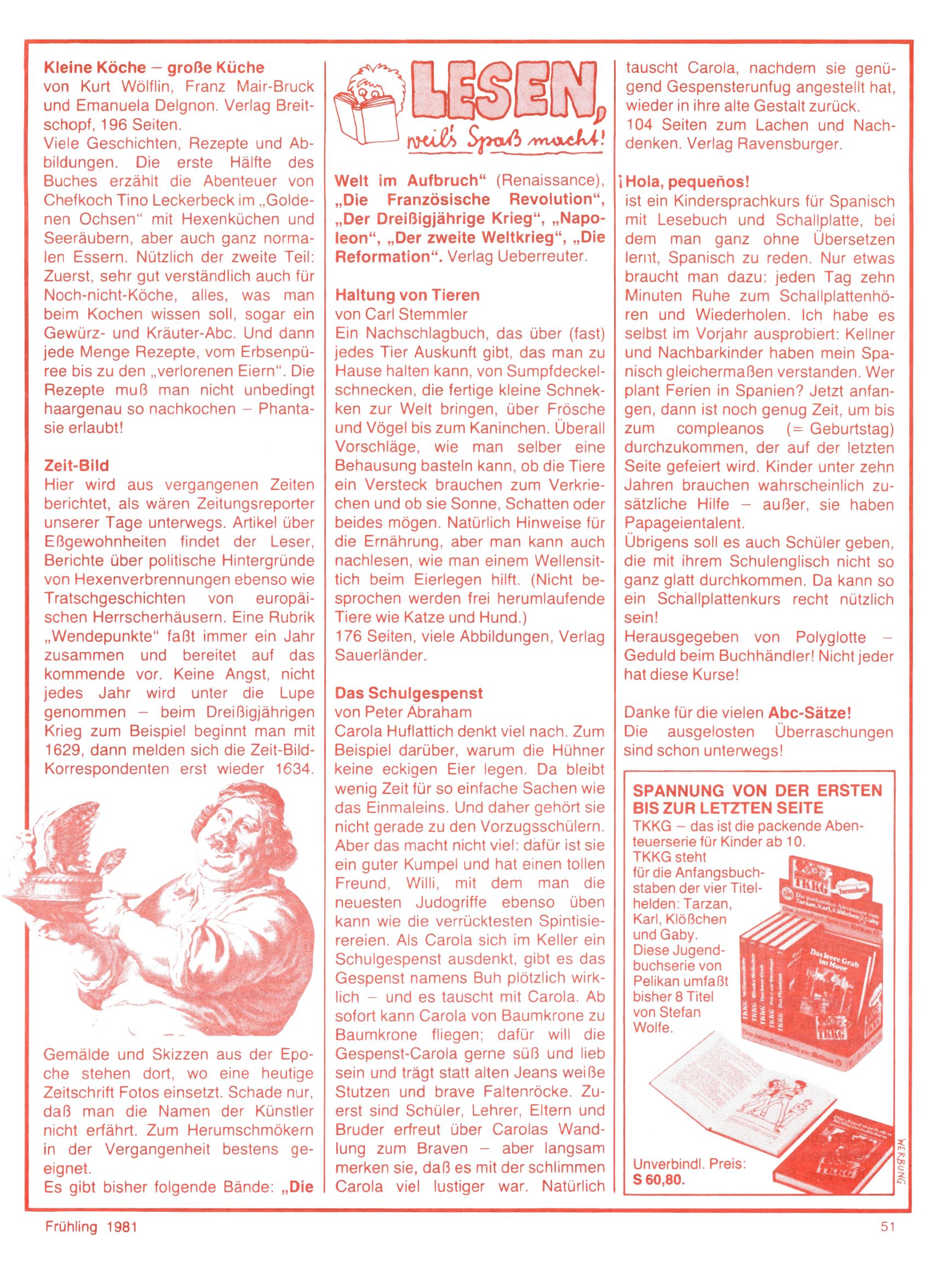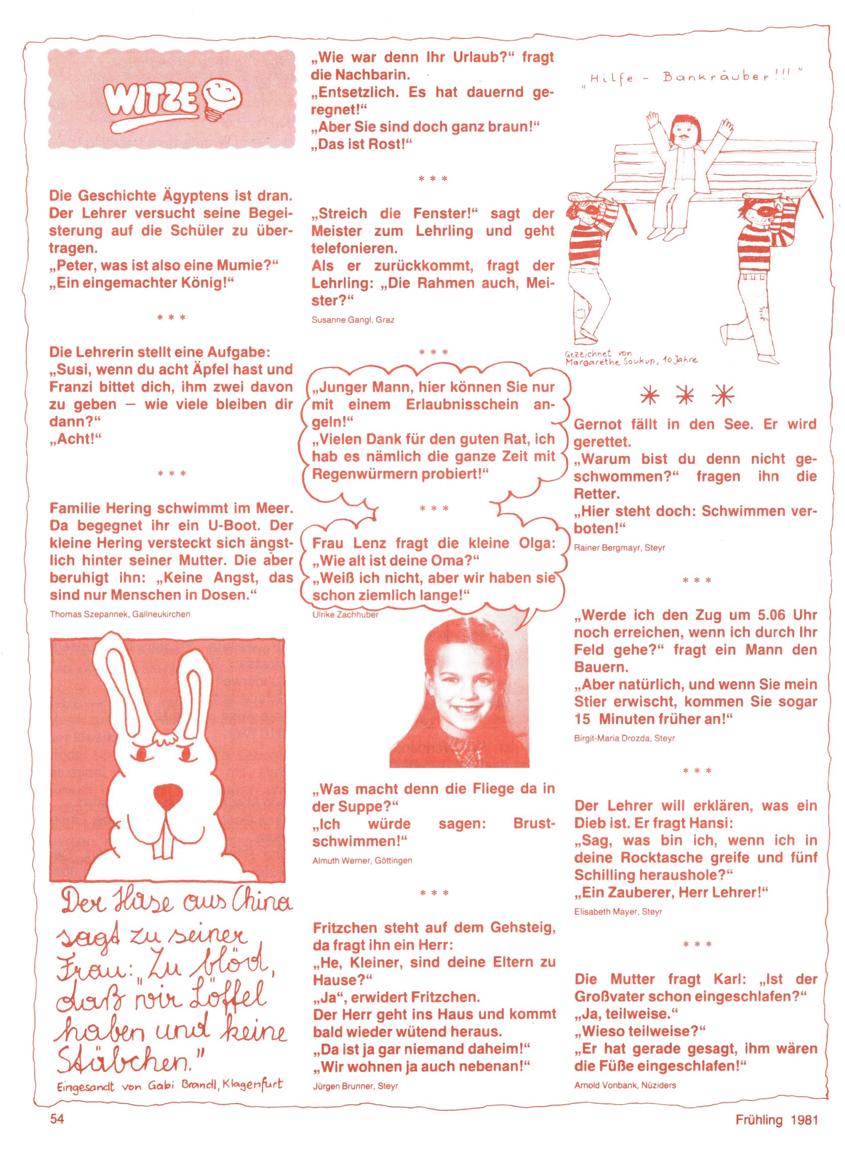 1981 - Ökosoziale Bildung ohne politische Beeinflussung Ein besonderes Kunststück, das dem Redaktionsteam der WunderWelt gelang, war es, über zehn Jahre hinweg ökologische, politische und soziale Themen anzufassen, ohne sich in Tagesthemen einzumischen oder eine politische Richtung vorzugeben. Selbst die Konkurrenz wurde trotz schwerer Verfehlungen fair und objektiv behandelt. Diesmal wurde das Konkurrenzblatt Yps unter die Lupe genommen, das als Marktführer im deutschsprachigen Raum für seine Reichweite mehrere Millionen Schmetterlinge hatte töten lassen, um diese den Lesern zu präsentieren. Die Antwort der WunderWelt war es, in einem Bildbericht die Schönheit der Schmetterlinge aufzuzeigen und dann in einem neutral gefassten Artikel die Leser um ihre Meinung zu fragen. Vorbildlicher hätte eine Redaktion kaum arbeiten können. Der Lohn dieser Arbeit war der Staatspreis für journalistische Leistungen im Interesse für die Jugend für Ingrid Greisenegger durch die Republik Österreich. Das Team der WunderWelt hatte nunmehr seinen Stil gefunden und verfeinert; demzufolge gab es 1981 abgesehen von einem Dritte-Welt-Schwerpunkt keine erwähnenswerten Neuerungen mehr. |