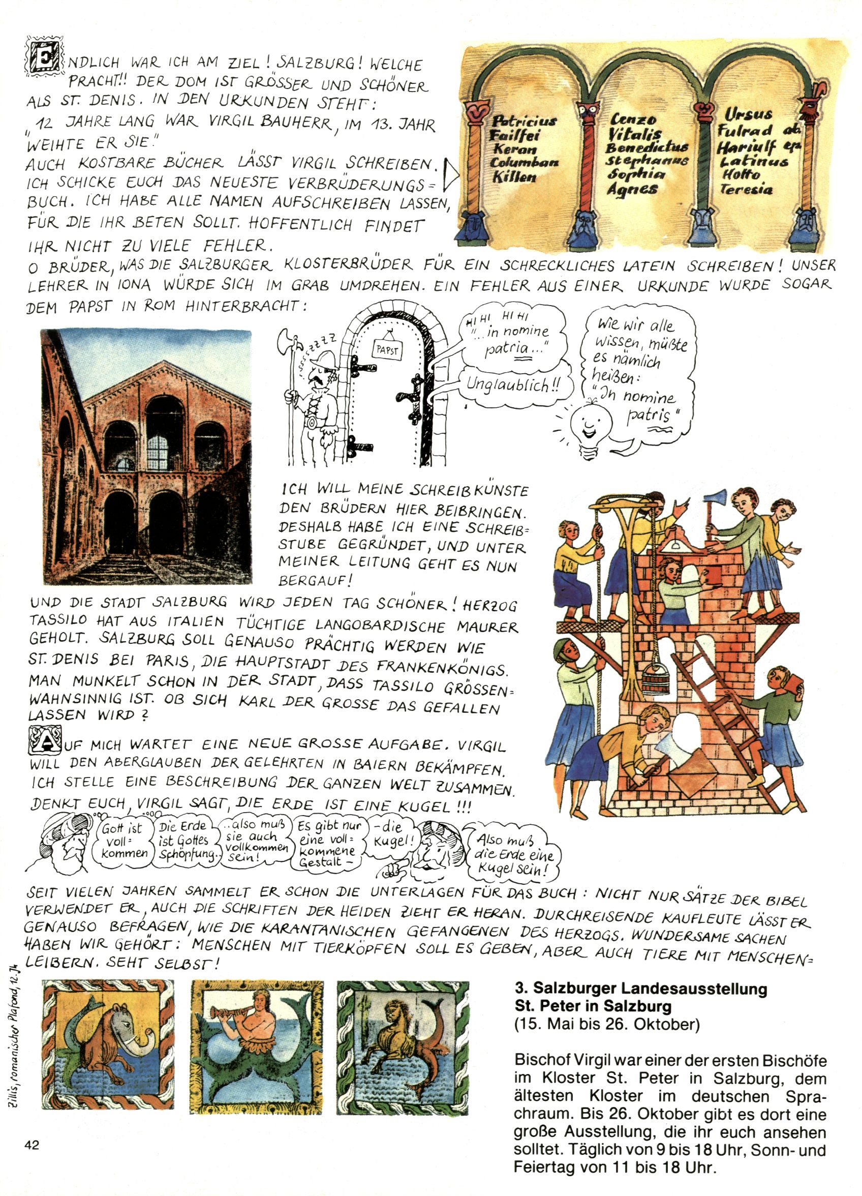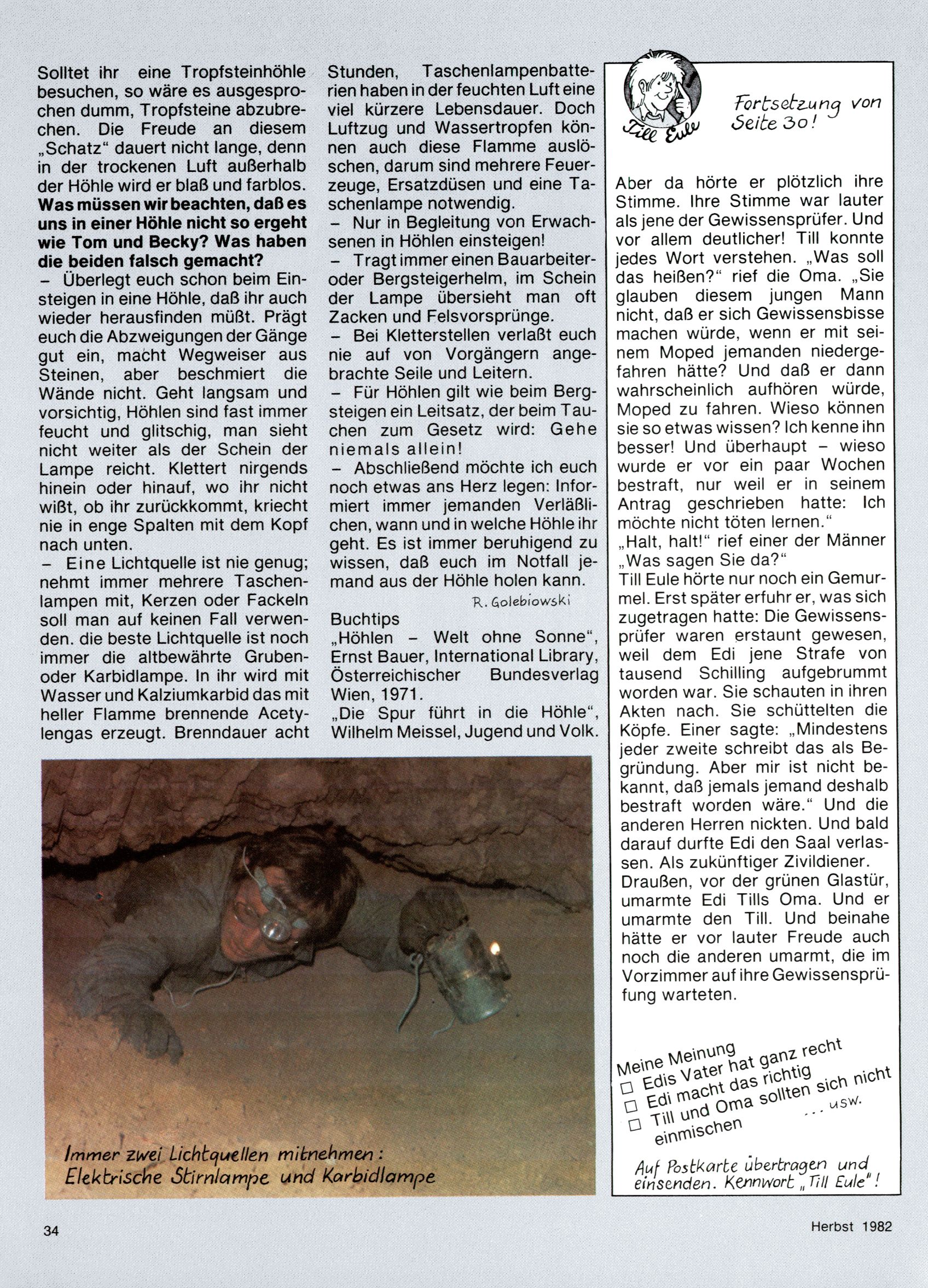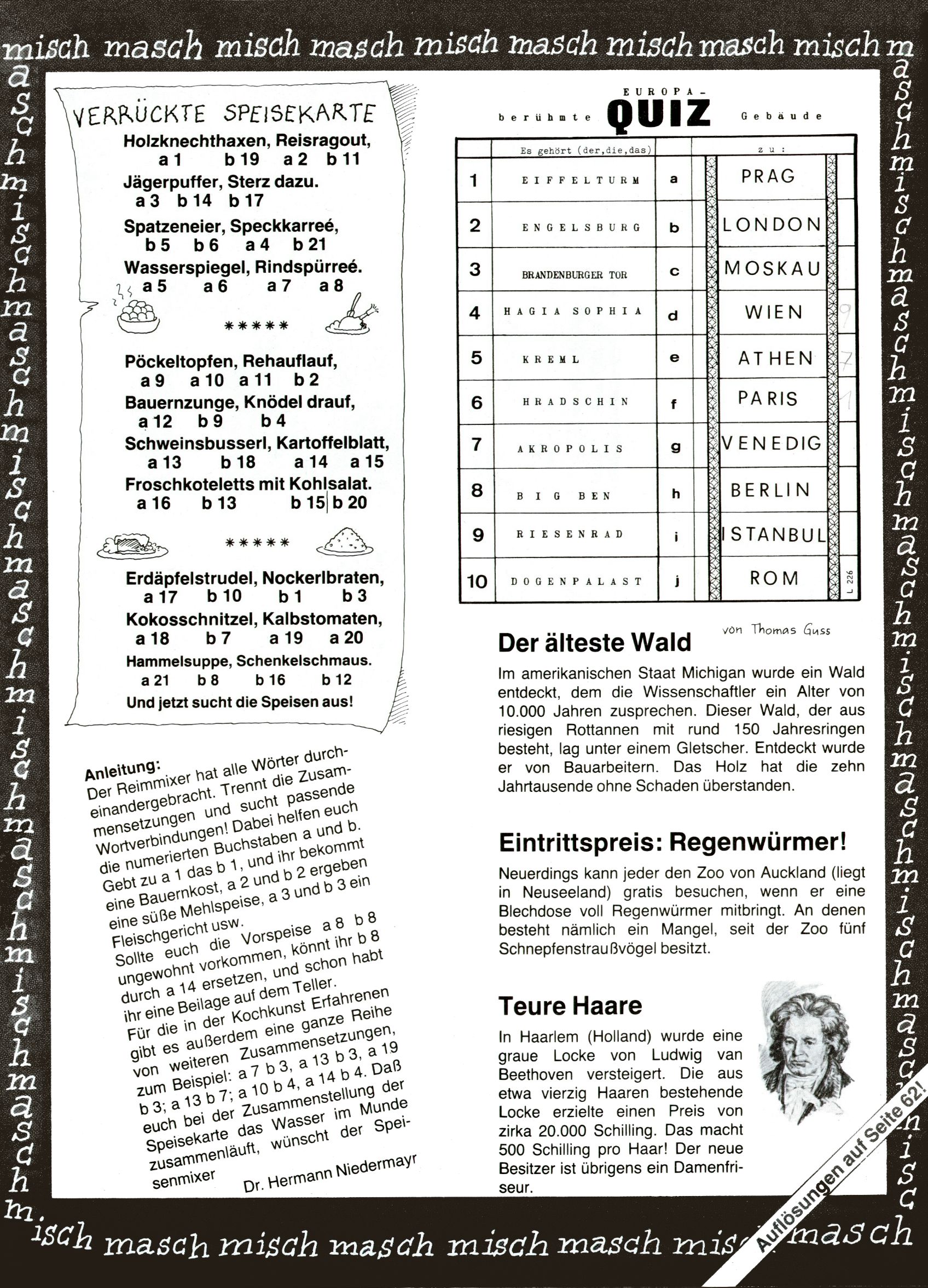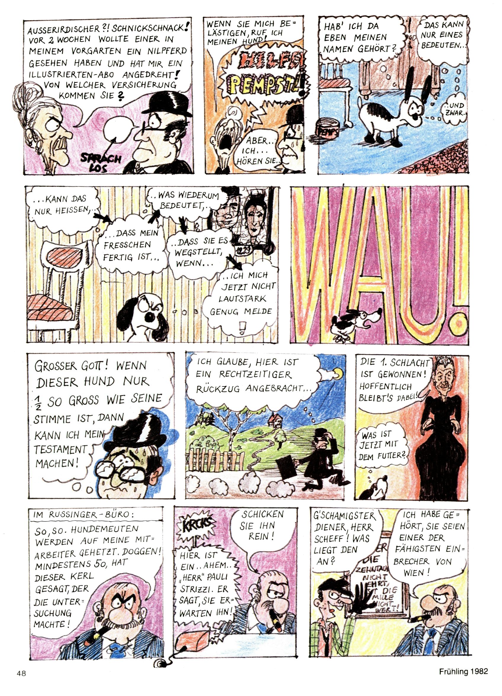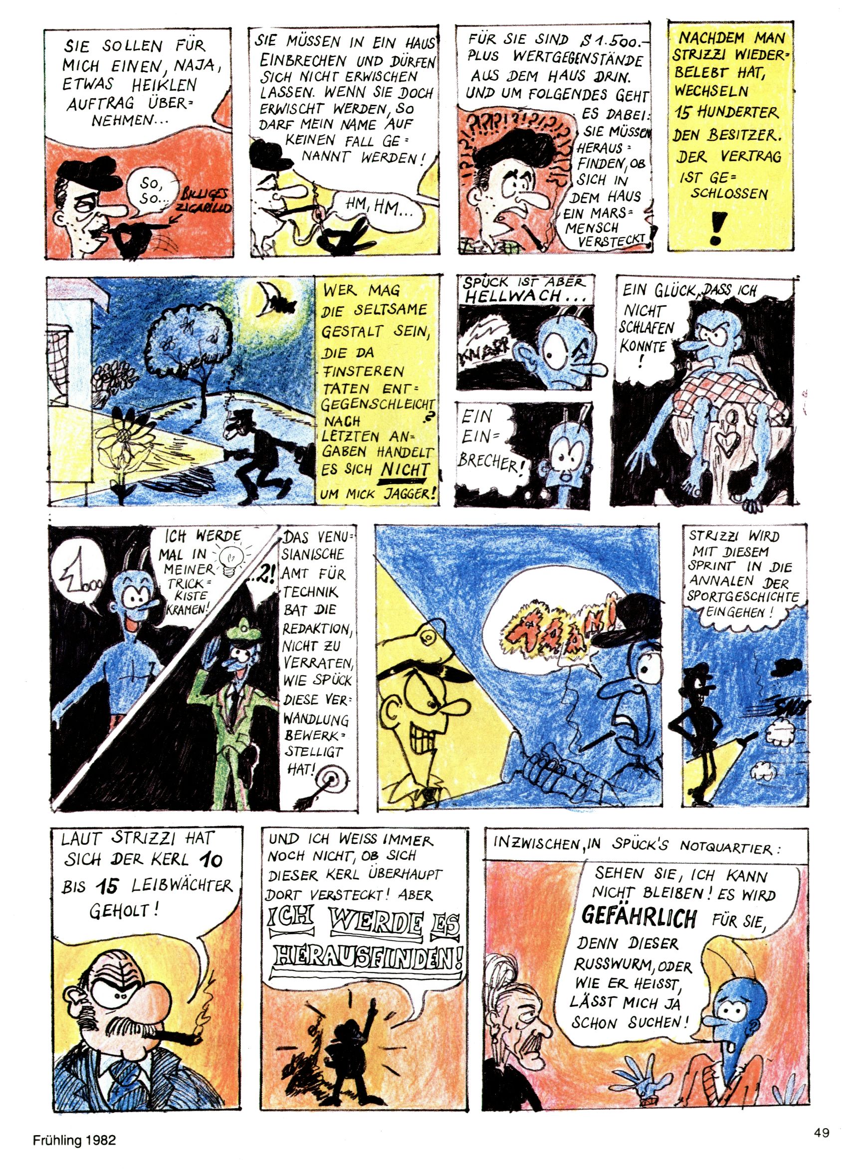 1982 - Hin und her In der angestrebten Marktnische hatte sich die WunderWelt 1982 perfekt eingenistet. Ohne auf Qualität zu verzichten, wäre eine Erhöhung der Reichweite in der multimedialen Umwelt nicht mehr möglich gewesen. Änderungen wurden daher nur in Datailbereichen durchgeführt. Neu war, dass erstmals ein Wunderwelt-Leser eine eigene Cartoonfolge starten durfte. Der fünfzehnjährige Thomas Maurer zeichnete mit Spück, dem Außerirdischen eine abgehobene Serie, die zwar in Teilbereichen witzig war, über deren Qualität und Professionalität man aber – freundlich ausgedrückt – geteilter Meinung sein konnte. Was freilich niemand ahnen konnte, war, dass genau dieser Thomas Maurer 26 Jahre später mit der Romy die höchste österreichische Filmauszeichnung für das beste Drehbuch erhalten würde. So gab es eine ganze Reihe von Jugendlichen, die in der WunderWelt erstmals aufgefallen waren und später bemerkenswerte Karrieren hinlegten. Nach dem Experiment Spück kehrte man aber wieder zu Altbewährtem zurück. Fortan wurden Cartoons nur mehr eingekauft. Lediglich Klaus Pitters Comicserie Strick brachte es als Eigenproduktion auf 46 Folgen und hielt bis zum Schluss durch. Andere neue Autoren 1982 waren Peter Abraham, Lea Steininger und Birgit Riejke. Wieder einmal entdeckte man das Thema Burgen. Mit der Aktion Ritterschlag wurden mehrere österreichische Burgen und das Leben im Mittelalter vorgestellt. |