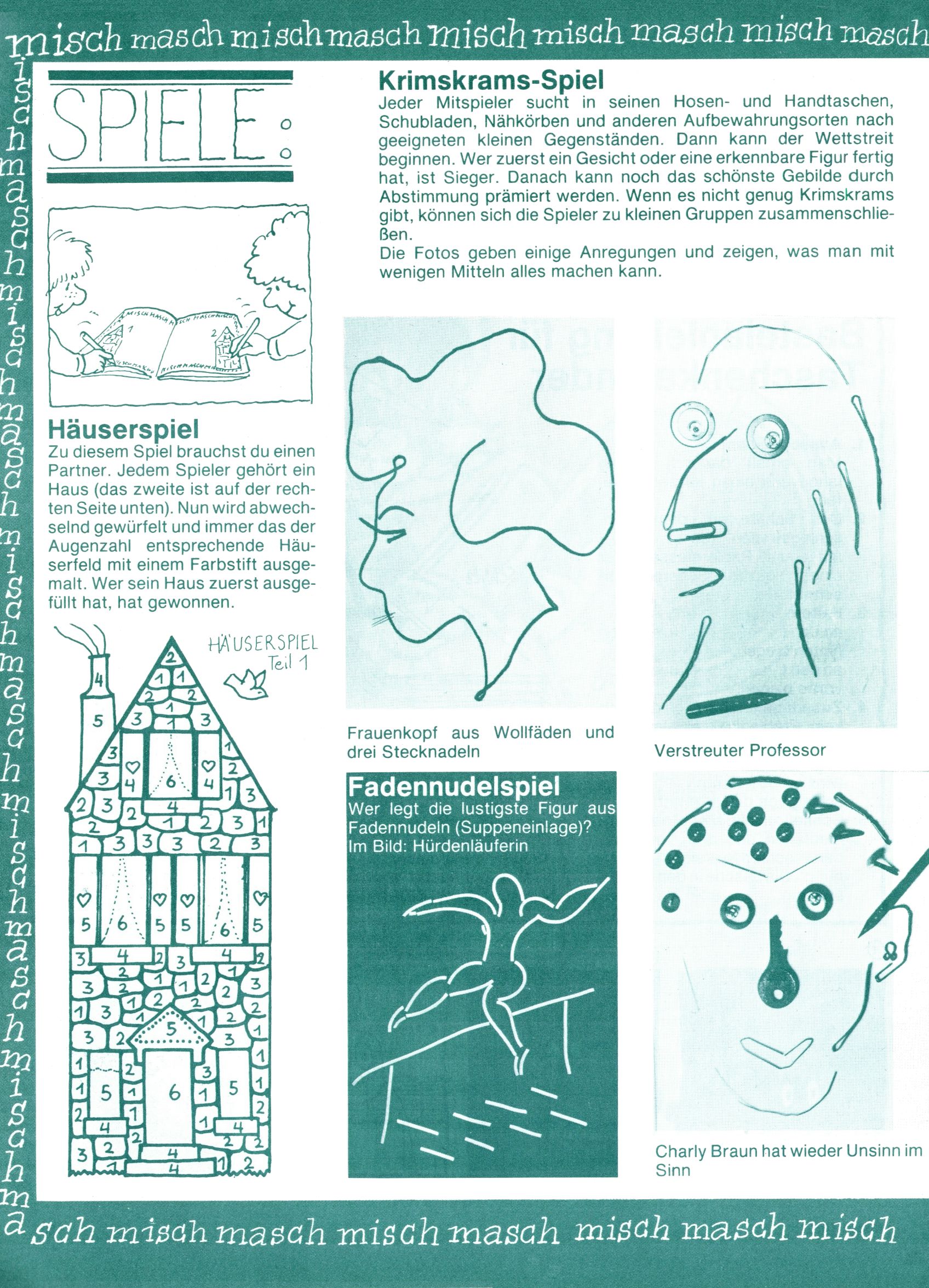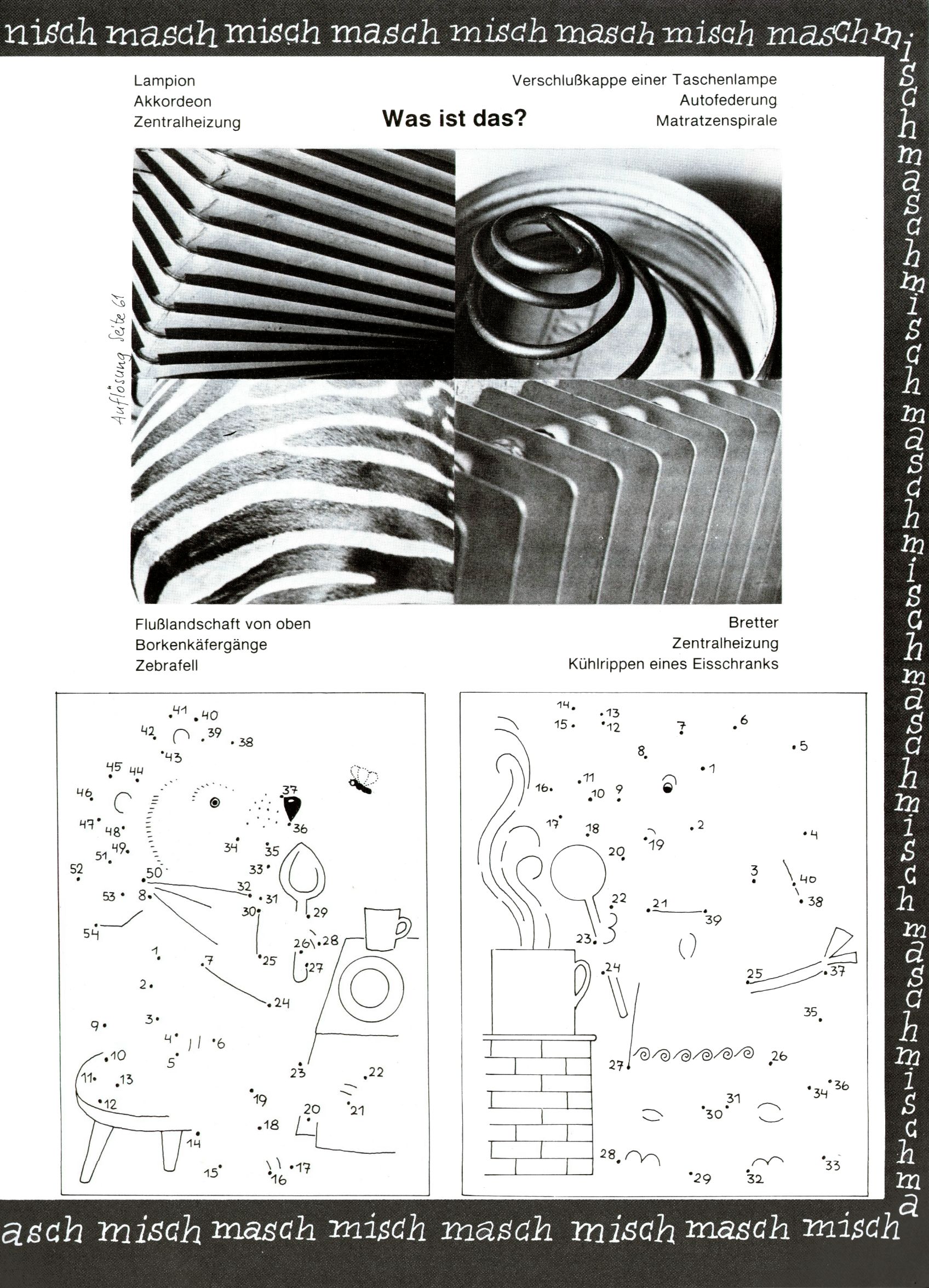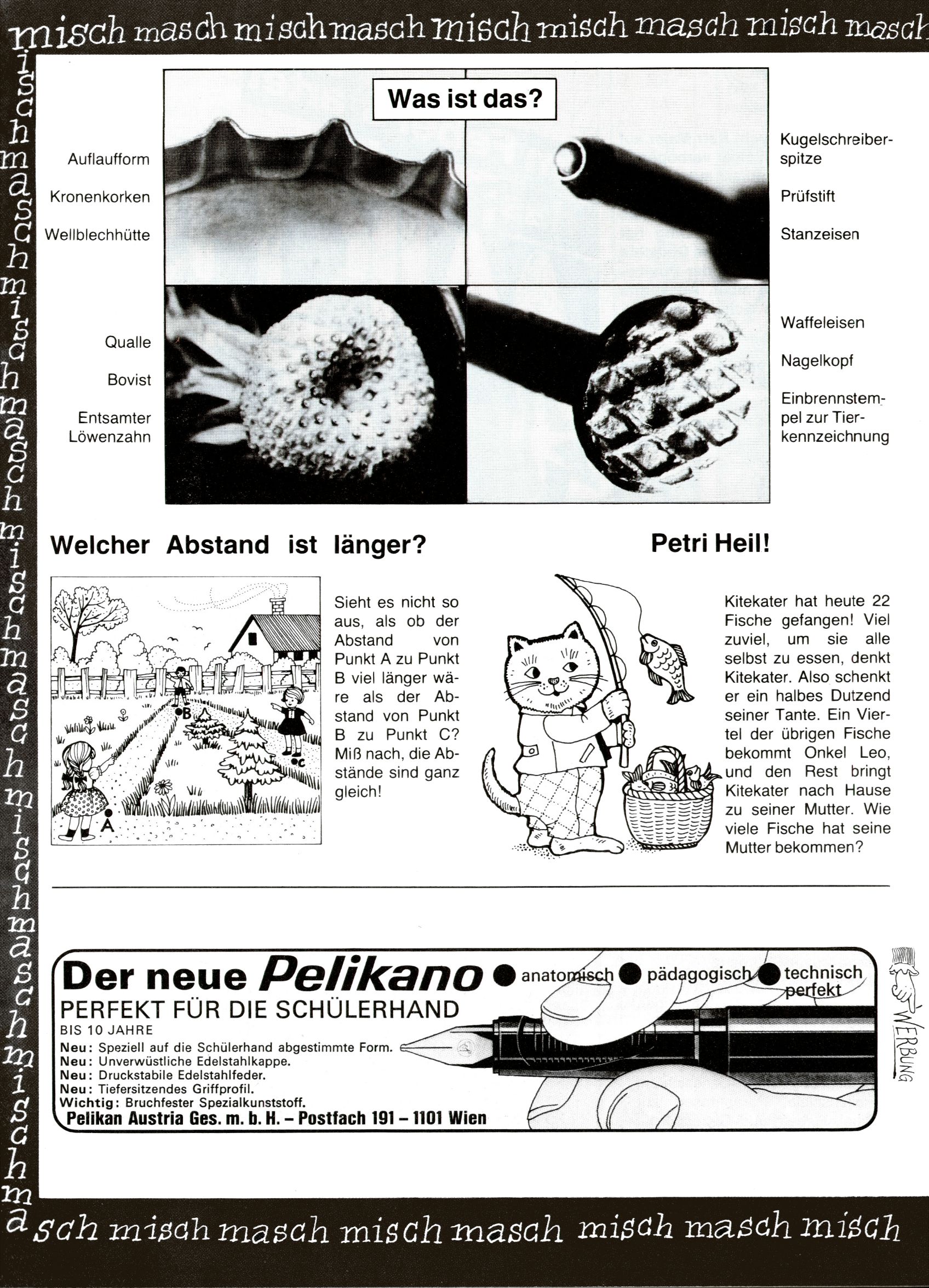 [A]usschneiden | [B]asteln/Handwerken | [C]omic | [E]rzählung/Märchen/Sage | [F]oto/Bild [G]edicht/Lied | [I]nformatives | [N]atur | [R]ätsel | [S]port/Spiel | [T]echnik/Wissen | [W]erbung |