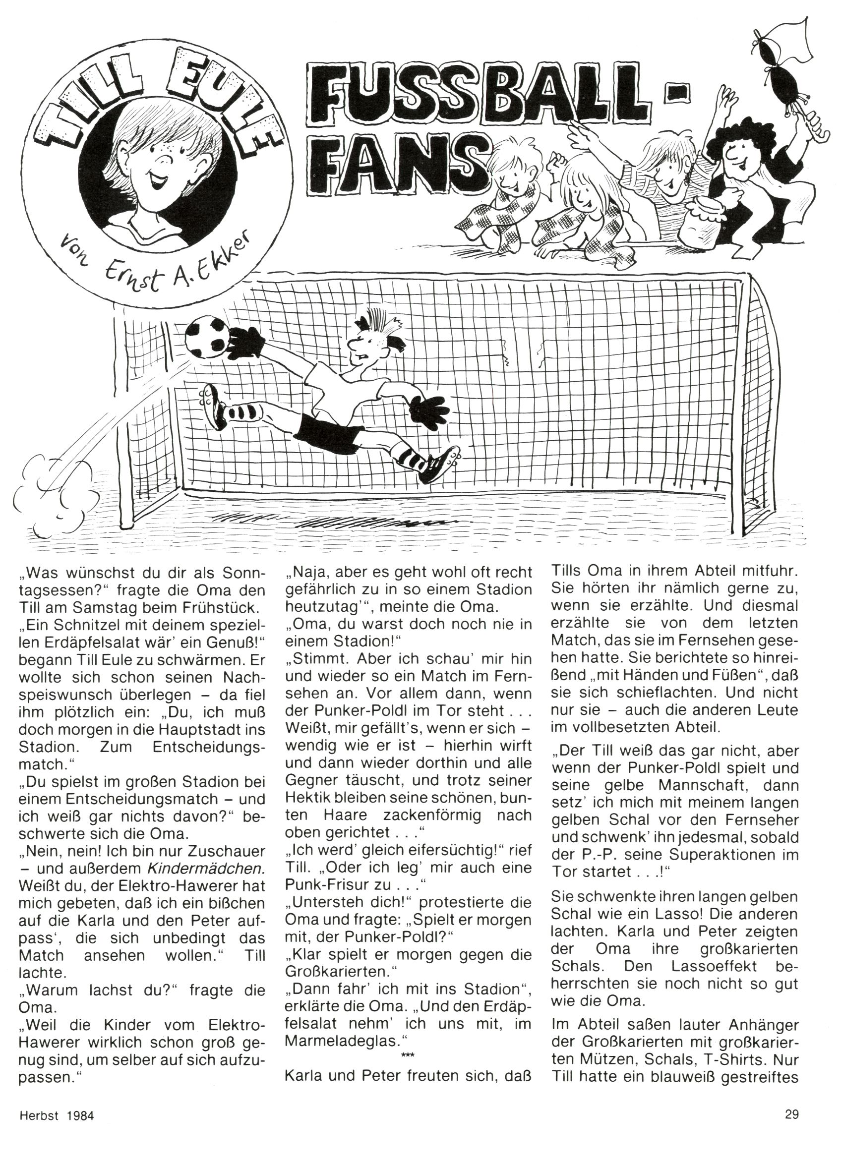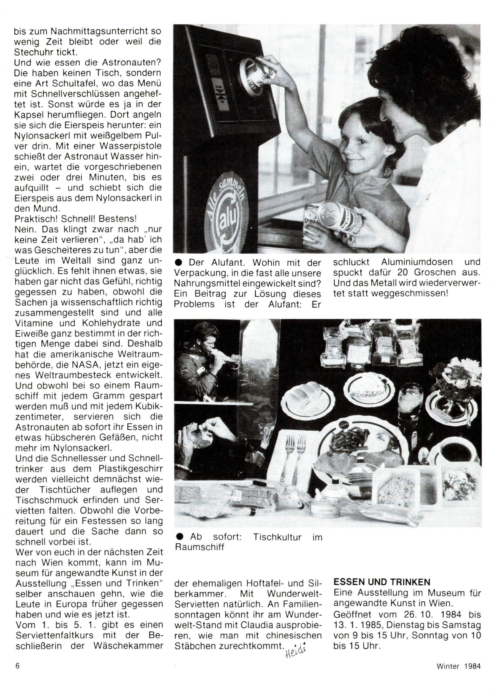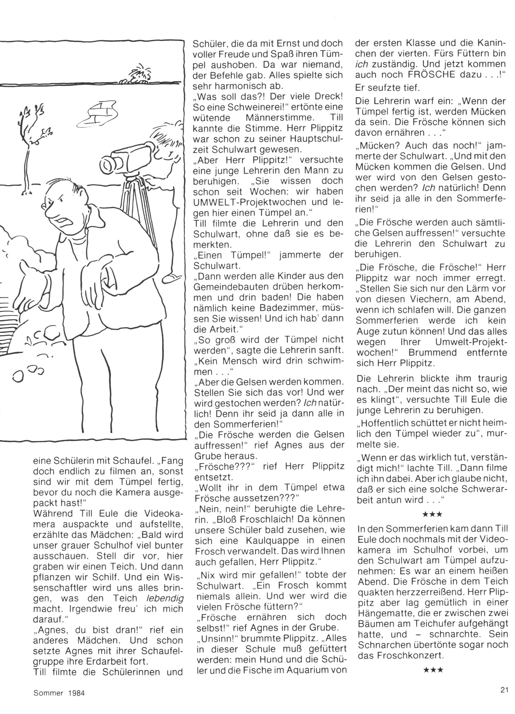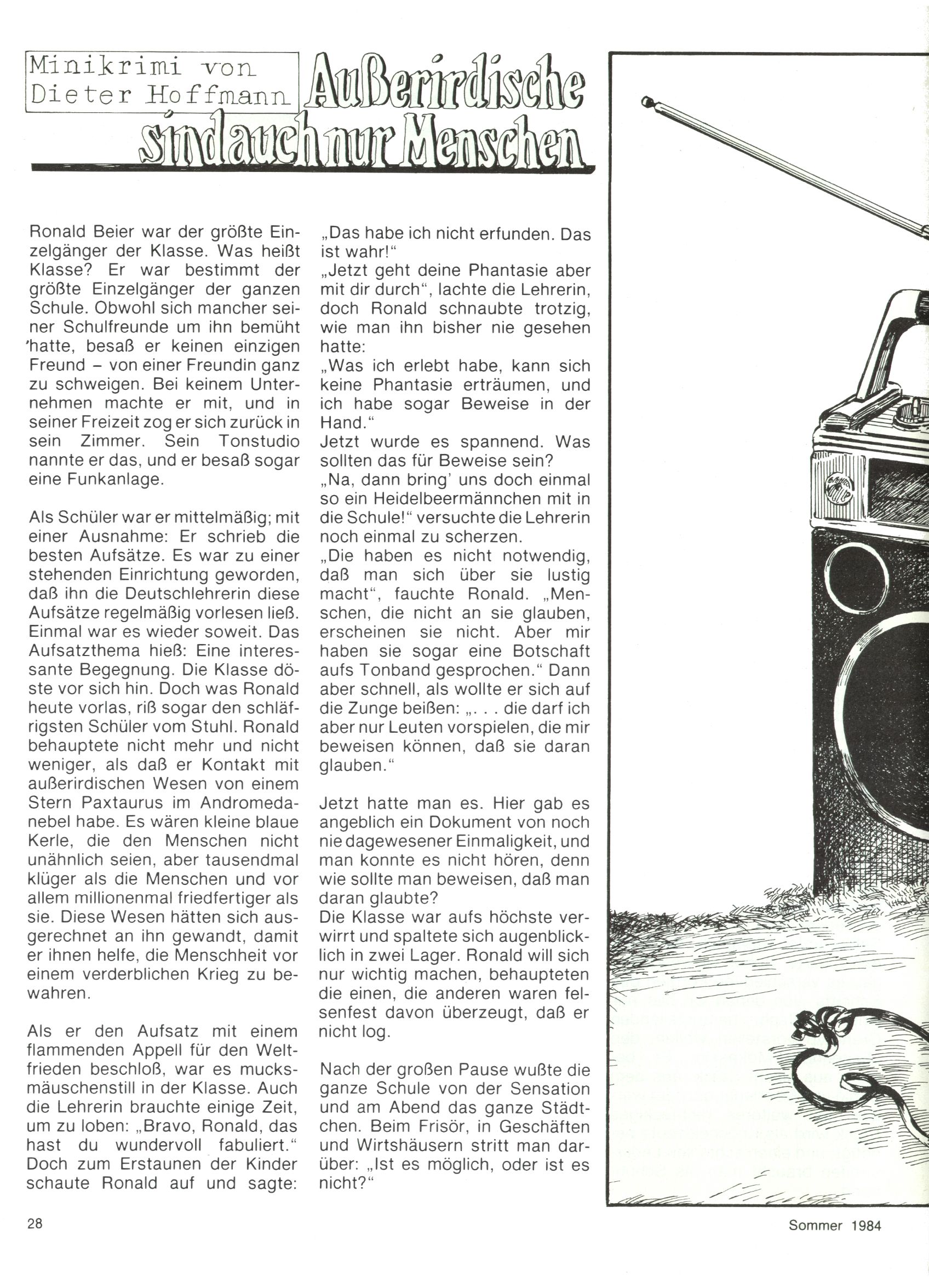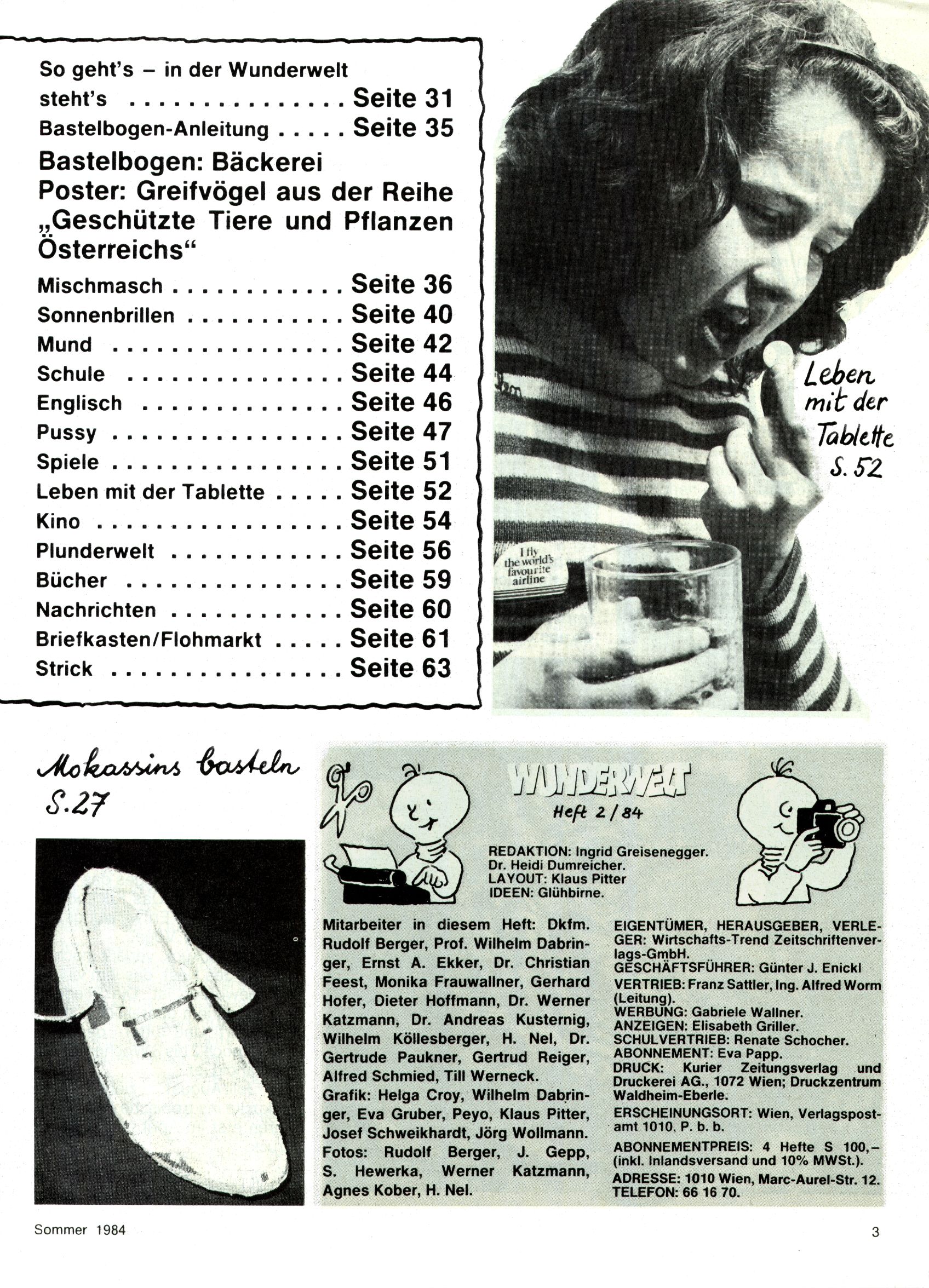 1984 - Der letzte Tango 1984 gab es keine Experimente mehr. Der Aufbau der Zeitung glich exakt dem von 1982 und 1983. Dies hatte einen Grund. Ab 1985 sollte die letzte Phase der WunderWelt eingeleitet werden. Vorerst gab es Wissenschaftliches wie zuletzt – Johann Gepp berichtete über Ameisenlöwen, Christian Feest wieder einmal über Indianer; daneben gab es Beiträge über Sport, Ernährung, biologische Landwirtschaft, die Erzgewinnung, Greifvögel und anderes. Dieter Hoffmann und Ernst A. Ekker bestritten ihr obligatorisches Fernduell bei den Kurzgeschichten, Wilhelm Dabringer zeichnete wie immer für die Bastelbögen verantwortlich. Die Vertriebsleitung hatte 1984 ein gewisser Alfred Worm inne und alleine dieser Umstand konnte einen hellhörig werden lassen. In der Tat war 1985 dann alles anders. |