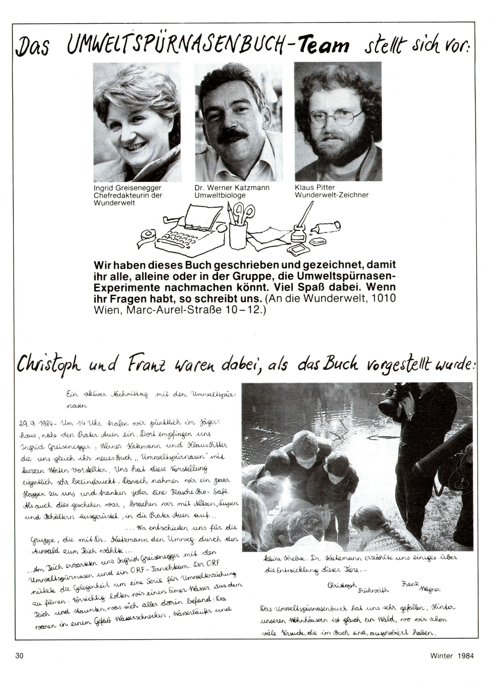 Das Umweltspürnasenbuch-Team (Ingrid Greisengger, Werner Katzmann, Klaus Pitter) |