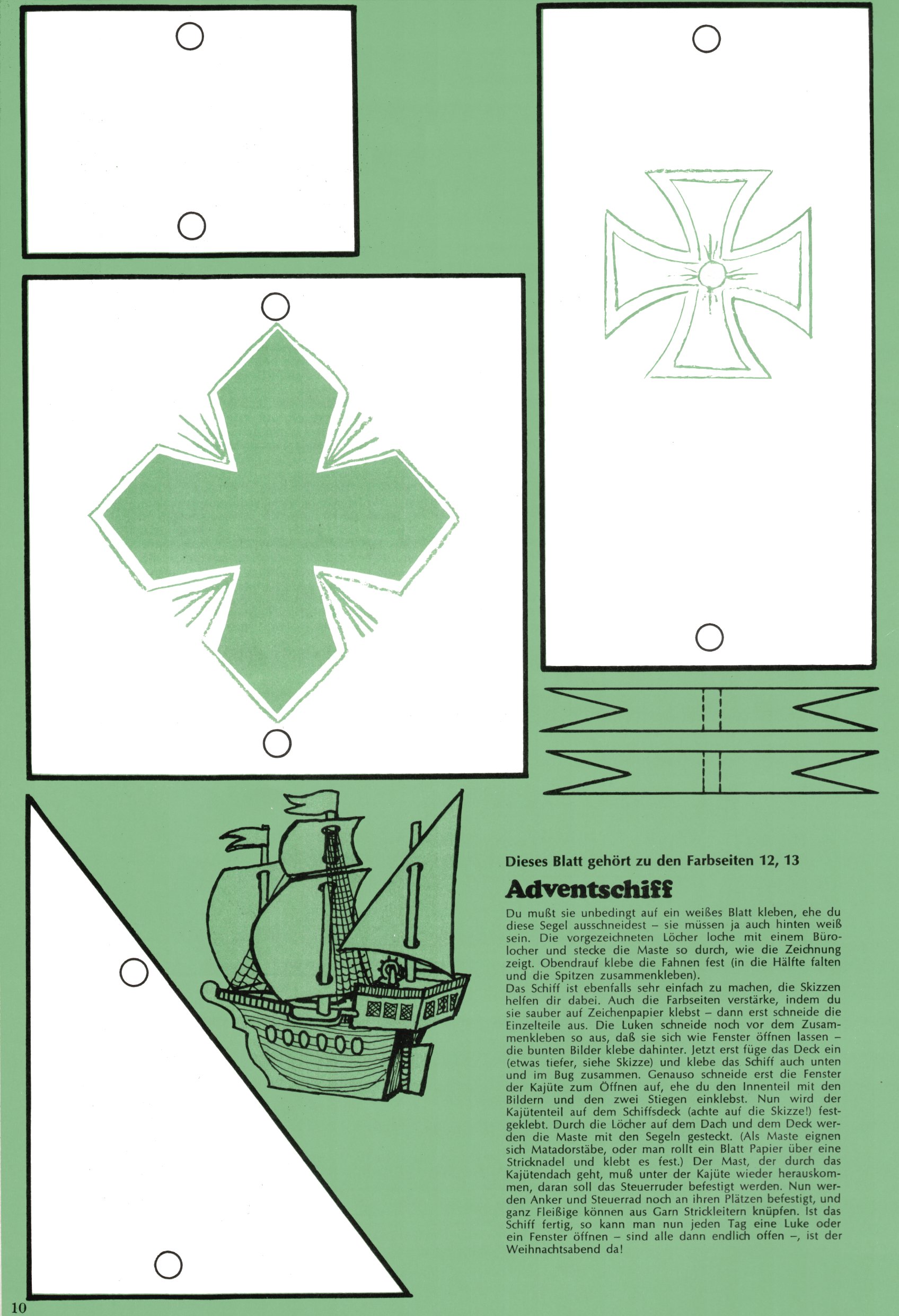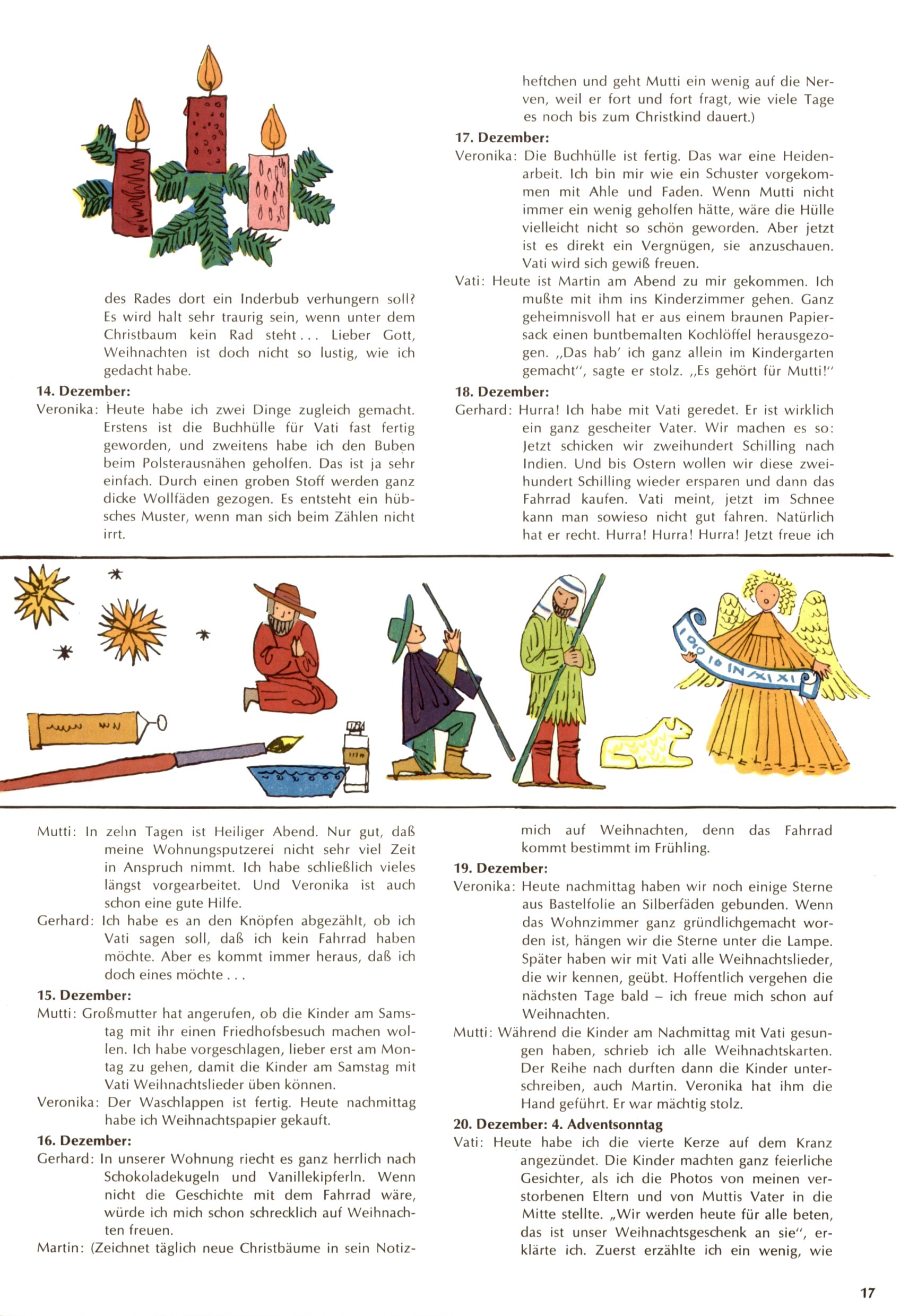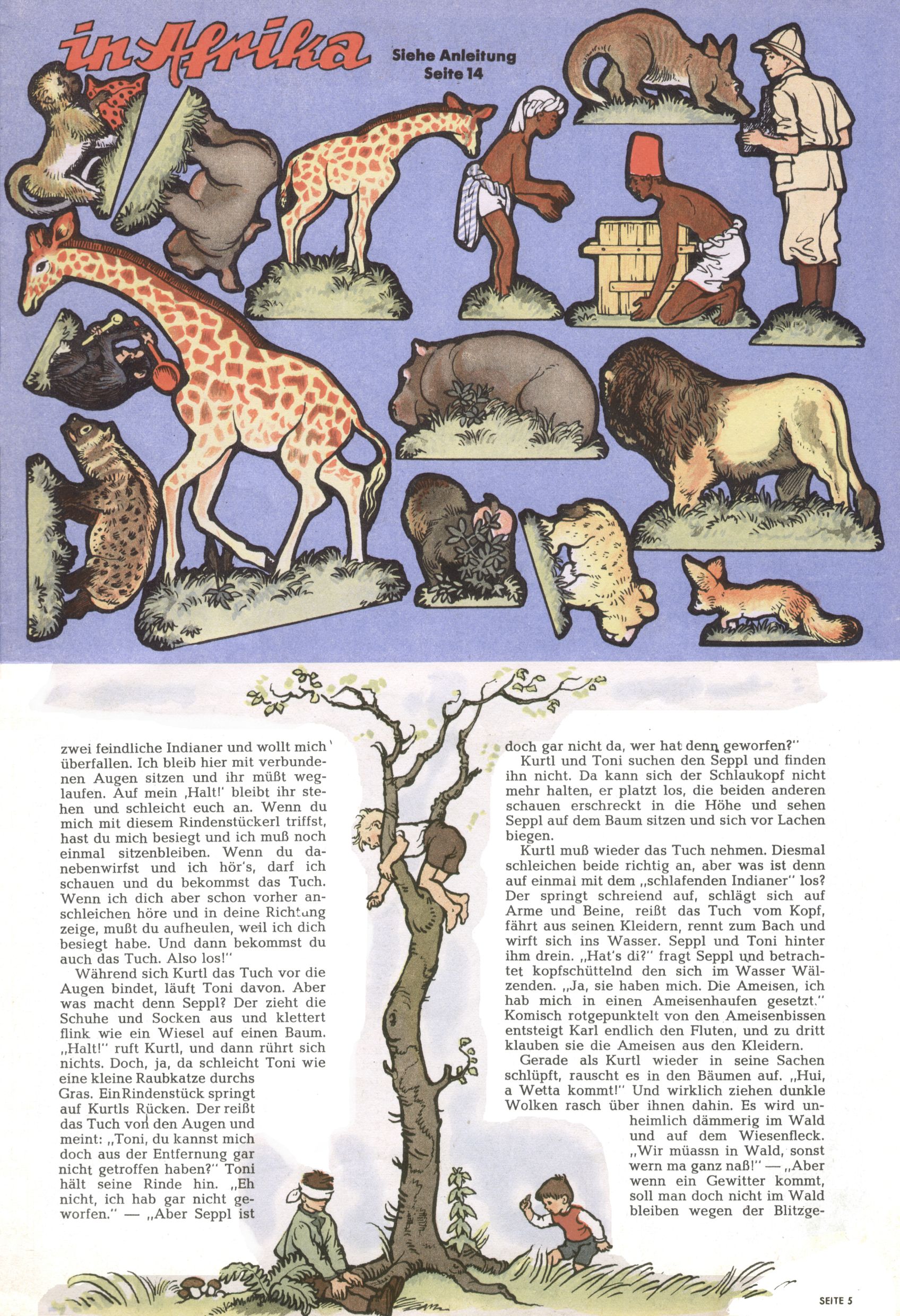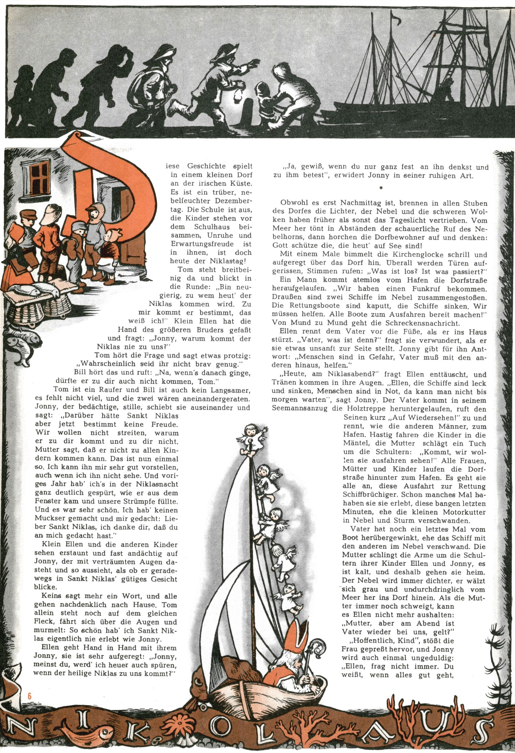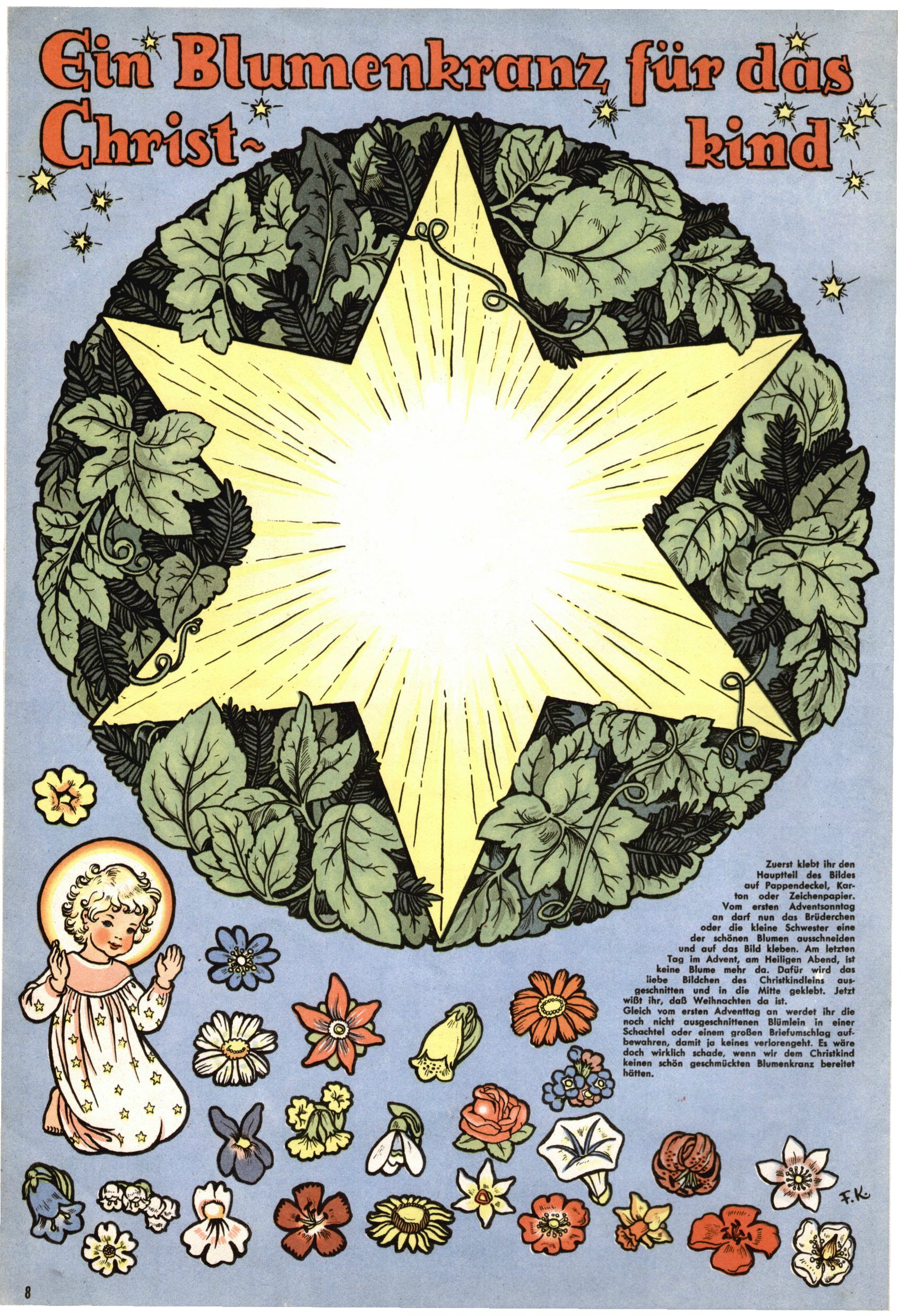 Die Wunderwelt im Festtagsgewand In den Sonderheften präsentierte sich die Wunderwelt wahrhaftig in Feiertagsstimmung. Mit wenigen Ausnahmen gab es pro Jahr drei Sonderhefte - zu Weihnachten bzw. im Advent, zu Ostern und in den Ferien im Sommer. Experimente mit Faschings- und Muttertagsheften hatten sich nicht bewährt. Selbst als es die Einzelhefte in der Krisensituation nach 1967 nicht mehr gab, wurde die Wunderwelt-Zeitung im Layout der Sonderhefte fortgesetzt: Zunächst mit 3 bis 5 und ab 1971 immerhin wieder mit 10-12 Heften pro Jahr. Die Weihnachts-, Oster- und Ferienhefte hatten naturgemäß verschiedene Schwerpunkte. Während im Sommer Spielen und Werken mit Material im Vordergrund stand, waren es zu Weihnachten Krippen und Adventhäuser; zu Ostern dann Erzählungen, Hasenstädte und Oster-Basteleien. Das bessere Papier der Sonderhefte erleichterte das Ausschneiden der insgesamt mehr als 1000 Papiermodelle erheblich. Die Sonderhefte waren vergleichsweise aufwändig gestaltet, aber auch ein wichtiges Zusatzgeschäft für die Zeitung. Die Kinder fieberten dem Erscheinungsdatum der jeweiligen Ausgabe nicht selten richtiggehend entgegen. Mit knapp 100 Seiten pro Jahr machten die Sonderhefte von der Menge her zwar nicht einmal ein Viertel aus, trugen aber zum Erscheinungsbild mindestens genauso viel bei wie die Standardhefte. Im Wesentlichen blieb das Layout der Sonderhefte über die Jahre hin unverändert. Mühselig wurde es, als man den Inhalt der Beiträge vorübergehend auf die Seiten gleichmäßig verteilte und die Kinder ermunterte, die Hefte in der Mitte zu zerschneiden. Die eine Hälfte enthielt dann etwa Erzählungen und Bastelvorschläge, der andere Teil der Zeitung Spielanleitungen. Zur übersichtlichkeit trugen diese Layoutversuche jedenfalls in keiner Weise bei und als besonderen Auswuchs gab es eine Zeitlang auf einer Seite oft mehrere Seitennummern, je nachdem, ob sich diese auf das Gesamtheft oder den herauszunehmenden und zu zerschneidenden Heftteil bezogen. Gegen Ende der 1950er Jahre kehrte man wieder zu einem ganzseitigen Layout zurück und Ideen wie ein Spiel-(Heft-im-)Heft gehörten der Vergangenheit an. In den Sonderheften experimentierte man dann noch ab Mitte der 1960er Jahre, als die Verkaufszahlen stark rückläufig waren, mit grundsätzlich neuen Darstellungsformen - weg vom Niedlich-Kitschigen und engagierte neue Grafikerinnen wie Gundi Groh und Hella Soyka. Den erhofften Erfolg brachte dies jedoch nicht mehr. |