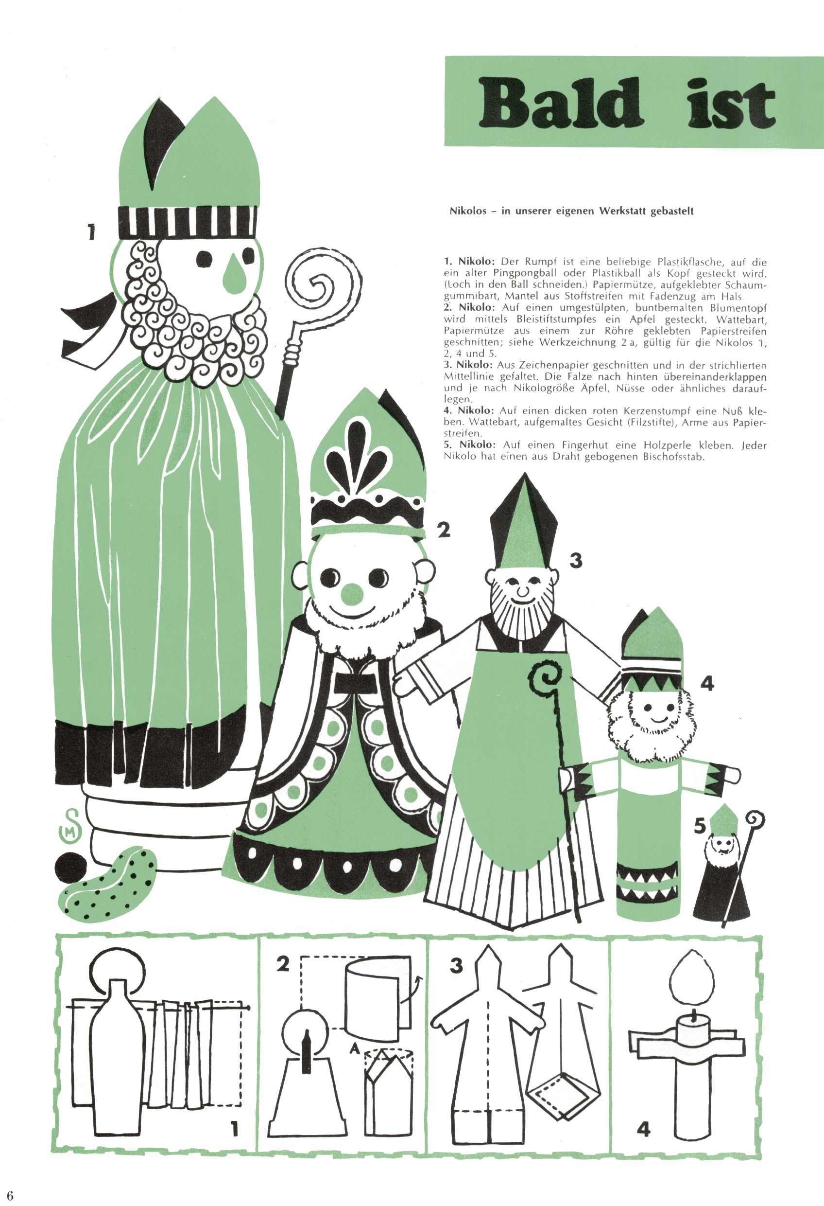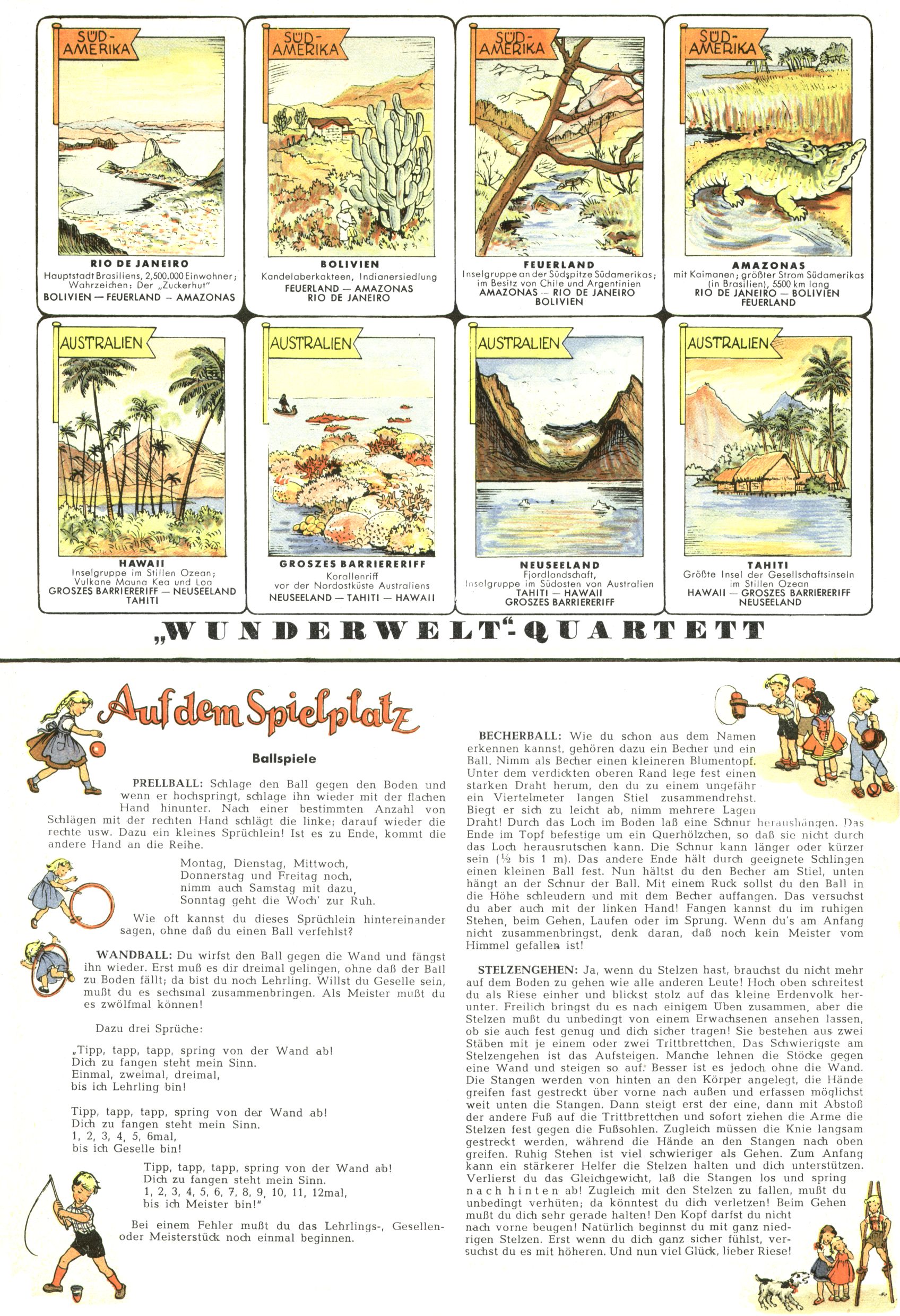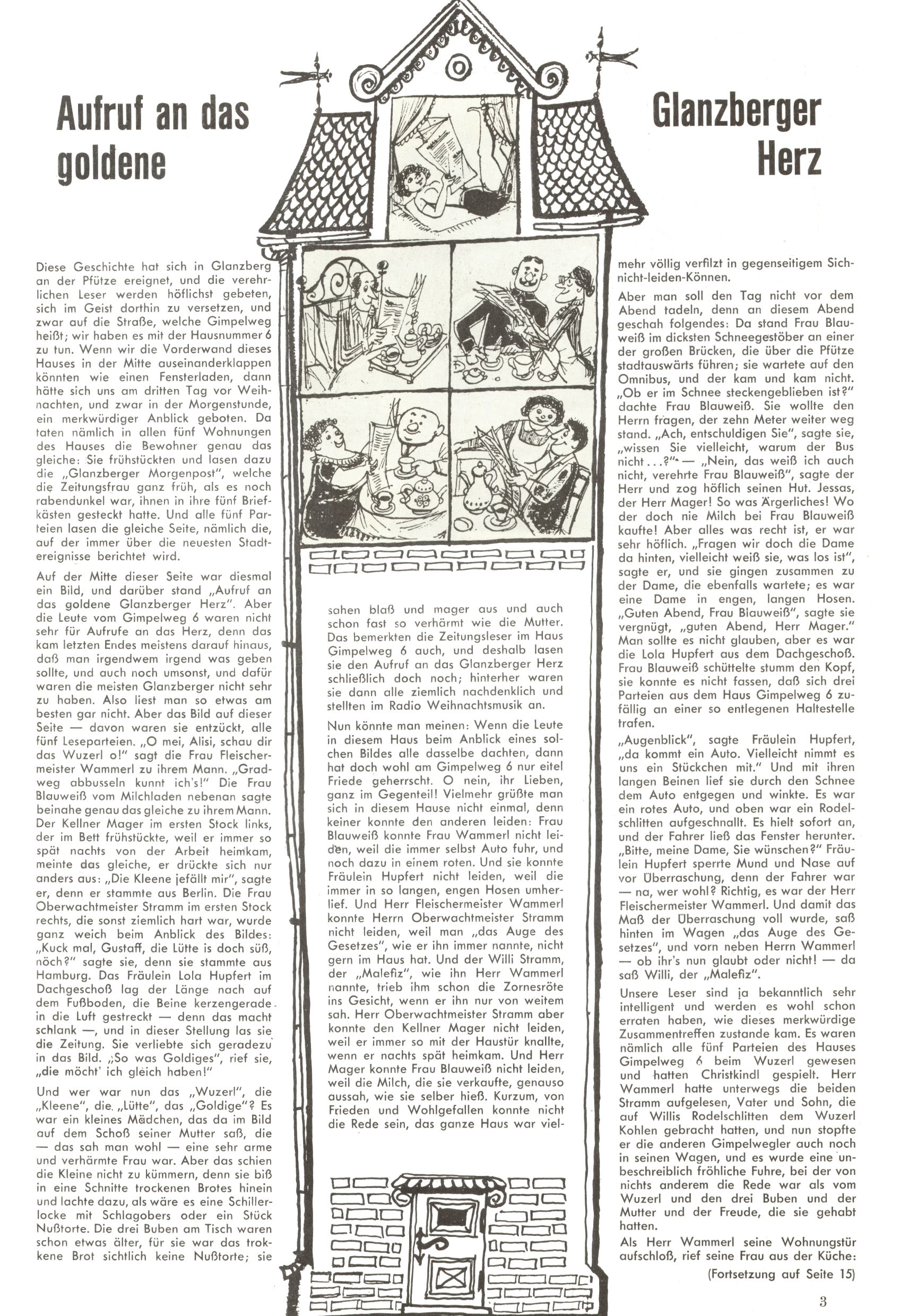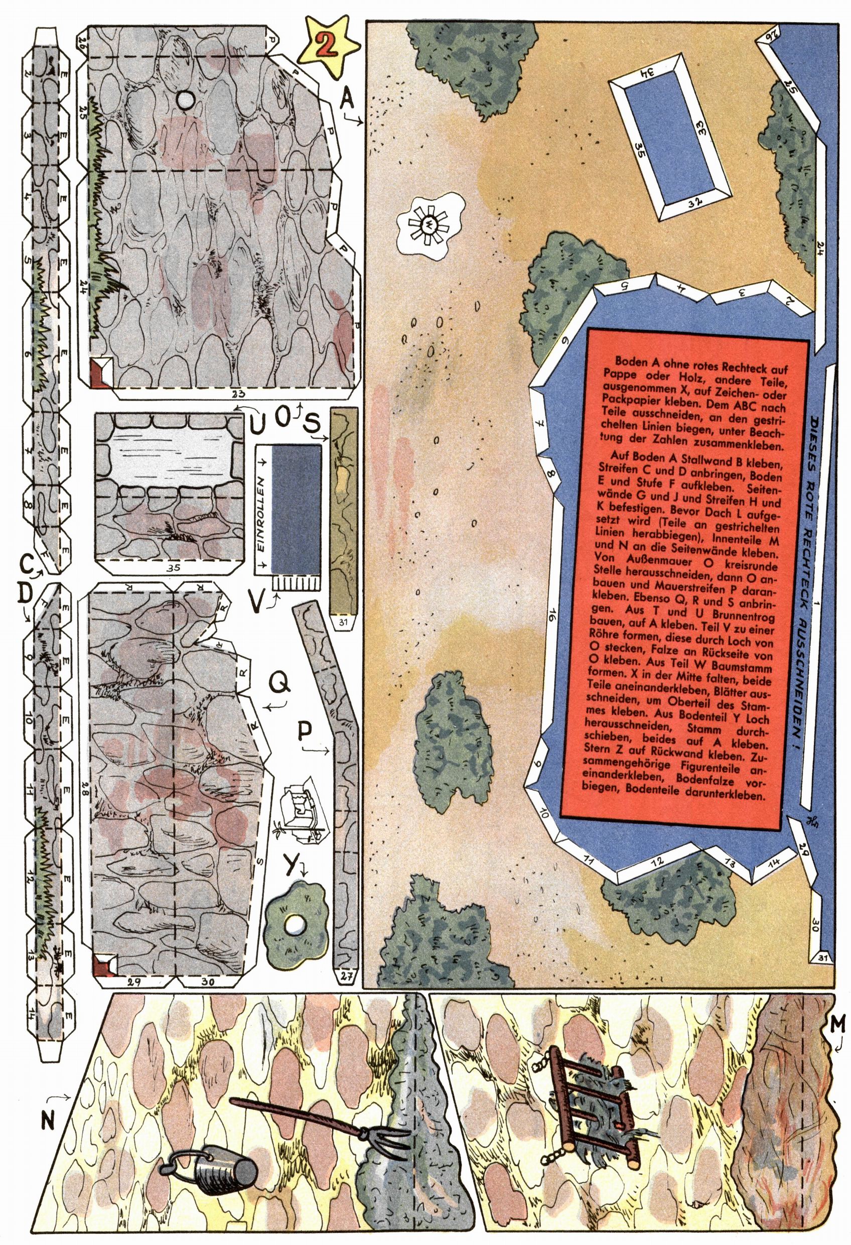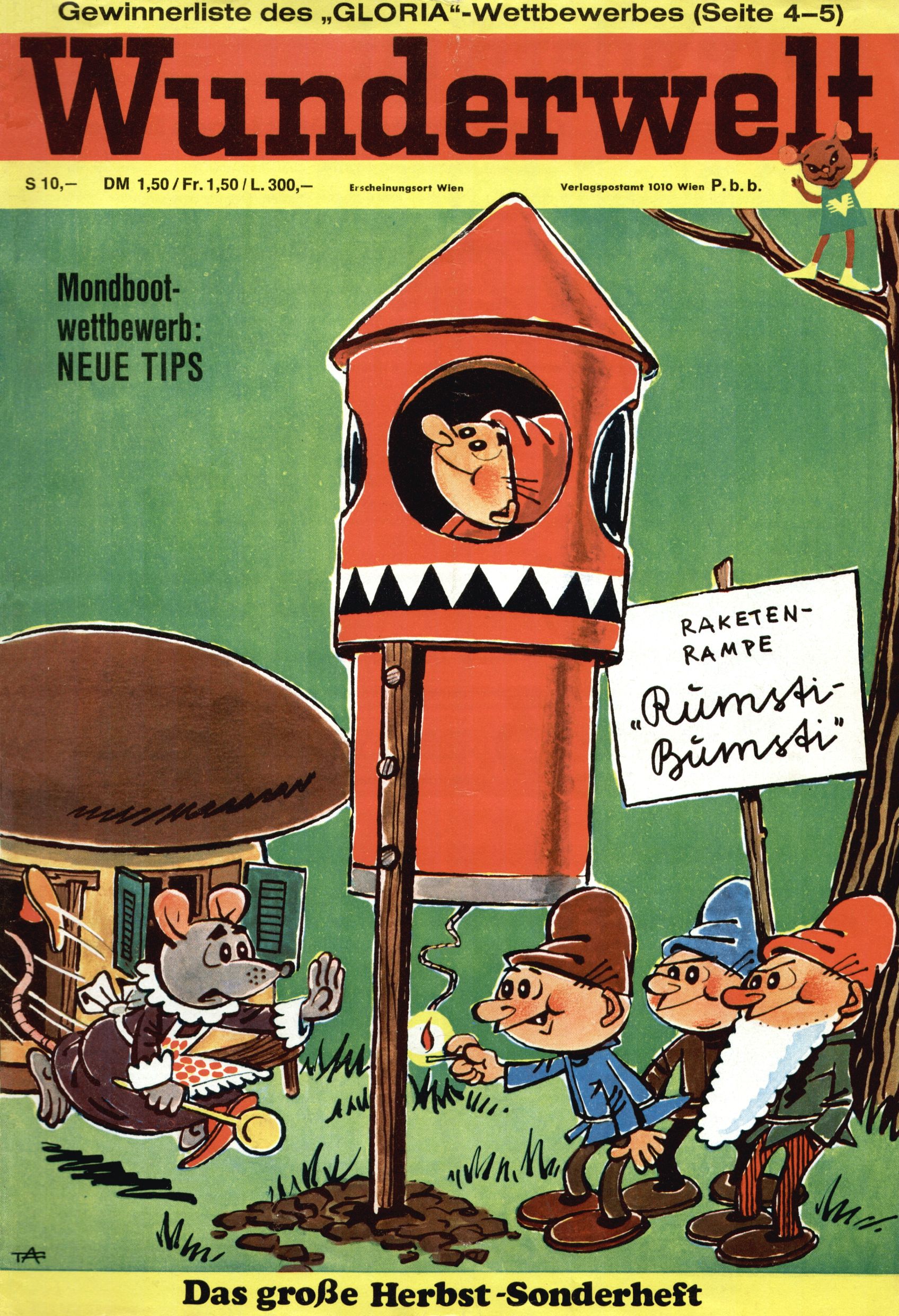 Die Wunderwelt im Festtagsgewand In den Sonderheften präsentierte sich die Wunderwelt wahrhaftig in Feiertagsstimmung. Mit wenigen Ausnahmen gab es pro Jahr drei Sonderhefte - zu Weihnachten bzw. im Advent, zu Ostern und in den Ferien im Sommer. Experimente mit Faschings- und Muttertagsheften hatten sich nicht bewährt. Selbst als es die Einzelhefte in der Krisensituation nach 1967 nicht mehr gab, wurde die Wunderwelt-Zeitung im Layout der Sonderhefte fortgesetzt: Zunächst mit 3 bis 5 und ab 1971 immerhin wieder mit 10-12 Heften pro Jahr. Die Weihnachts-, Oster- und Ferienhefte hatten naturgemäß verschiedene Schwerpunkte. Während im Sommer Spielen und Werken mit Material im Vordergrund stand, waren es zu Weihnachten Krippen und Adventhäuser; zu Ostern dann Erzählungen, Hasenstädte und Oster-Basteleien. Das bessere Papier der Sonderhefte erleichterte das Ausschneiden der insgesamt mehr als 1000 Papiermodelle erheblich. Die Sonderhefte waren vergleichsweise aufwändig gestaltet, aber auch ein wichtiges Zusatzgeschäft für die Zeitung. Die Kinder fieberten dem Erscheinungsdatum der jeweiligen Ausgabe nicht selten richtiggehend entgegen. Mit knapp 100 Seiten pro Jahr machten die Sonderhefte von der Menge her zwar nicht einmal ein Viertel aus, trugen aber zum Erscheinungsbild mindestens genauso viel bei wie die Standardhefte. Im Wesentlichen blieb das Layout der Sonderhefte über die Jahre hin unverändert. Mühselig wurde es, als man den Inhalt der Beiträge vorübergehend auf die Seiten gleichmäßig verteilte und die Kinder ermunterte, die Hefte in der Mitte zu zerschneiden. Die eine Hälfte enthielt dann etwa Erzählungen und Bastelvorschläge, der andere Teil der Zeitung Spielanleitungen. Zur übersichtlichkeit trugen diese Layoutversuche jedenfalls in keiner Weise bei und als besonderen Auswuchs gab es eine Zeitlang auf einer Seite oft mehrere Seitennummern, je nachdem, ob sich diese auf das Gesamtheft oder den herauszunehmenden und zu zerschneidenden Heftteil bezogen. Gegen Ende der 1950er Jahre kehrte man wieder zu einem ganzseitigen Layout zurück und Ideen wie ein Spiel-(Heft-im-)Heft gehörten der Vergangenheit an. In den Sonderheften experimentierte man dann noch ab Mitte der 1960er Jahre, als die Verkaufszahlen stark rückläufig waren, mit grundsätzlich neuen Darstellungsformen - weg vom Niedlich-Kitschigen und engagierte neue Grafikerinnen wie Gundi Groh und Hella Soyka. Den erhofften Erfolg brachte dies jedoch nicht mehr. |