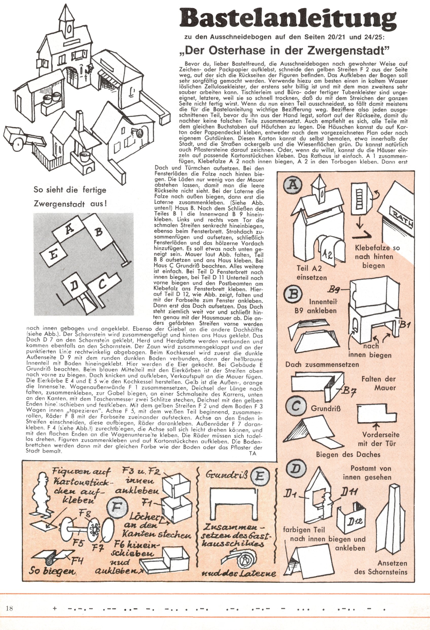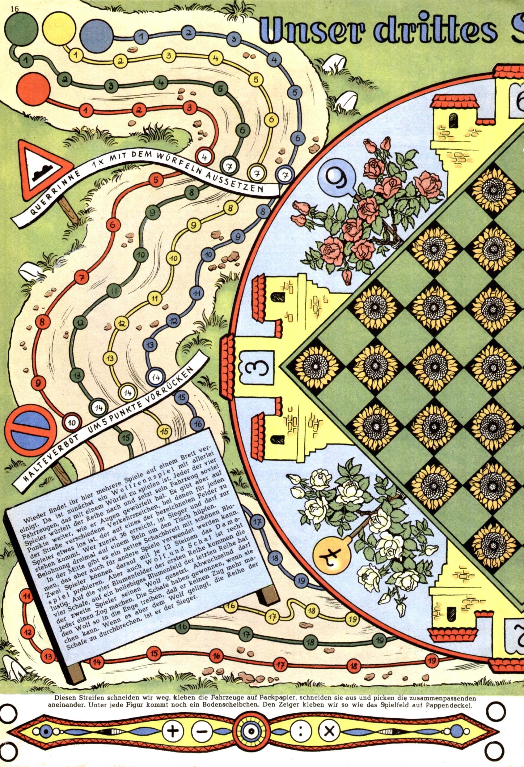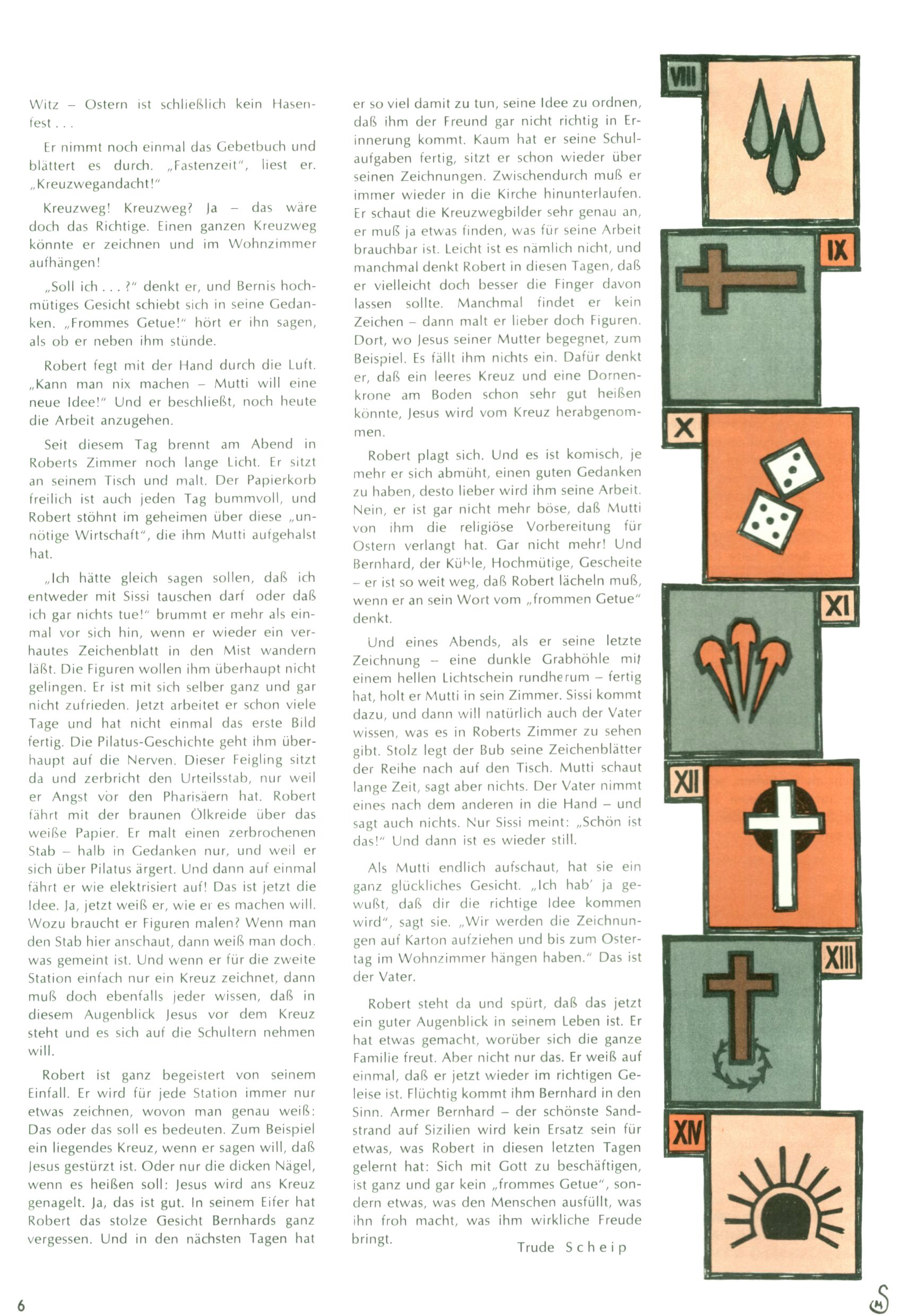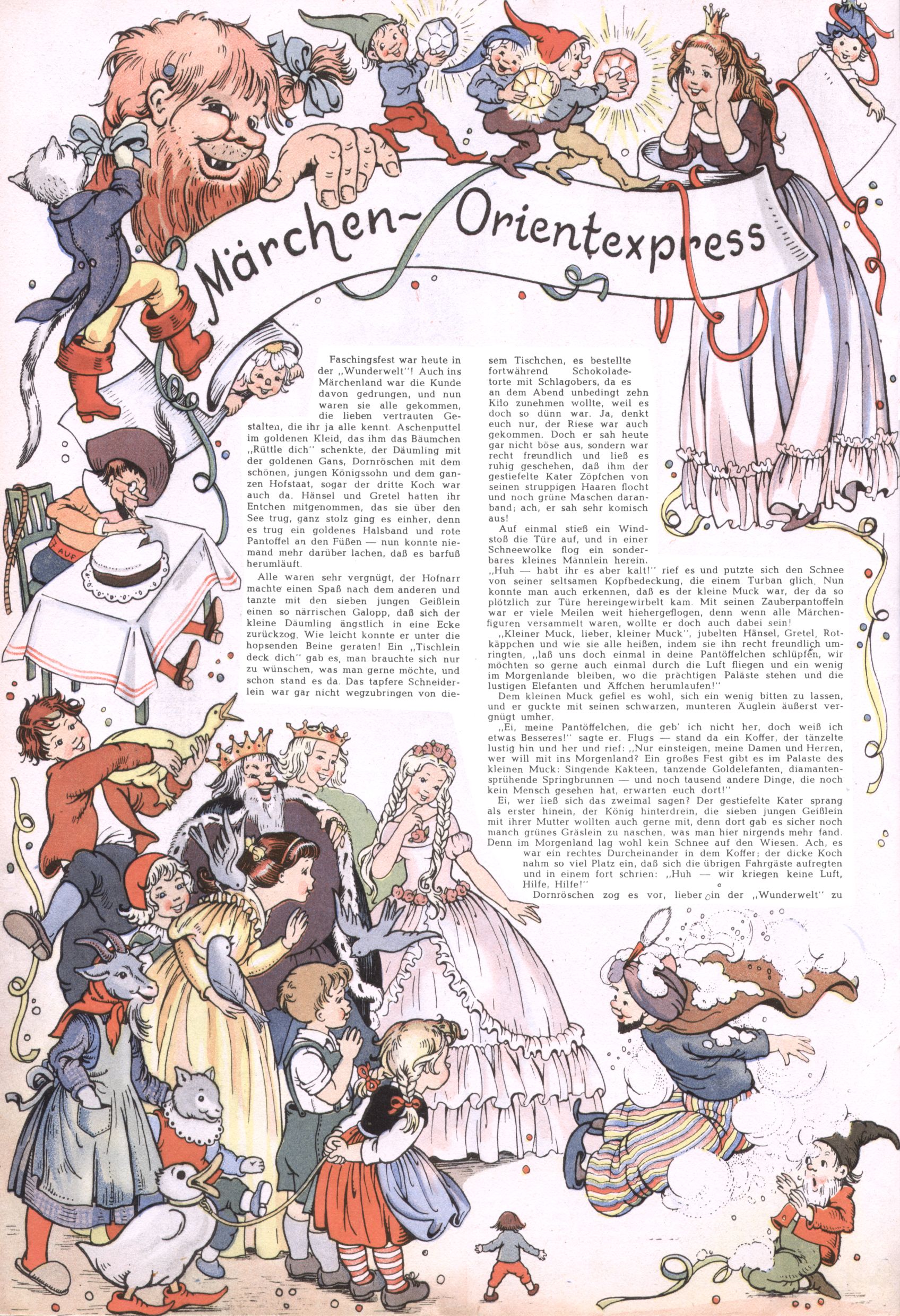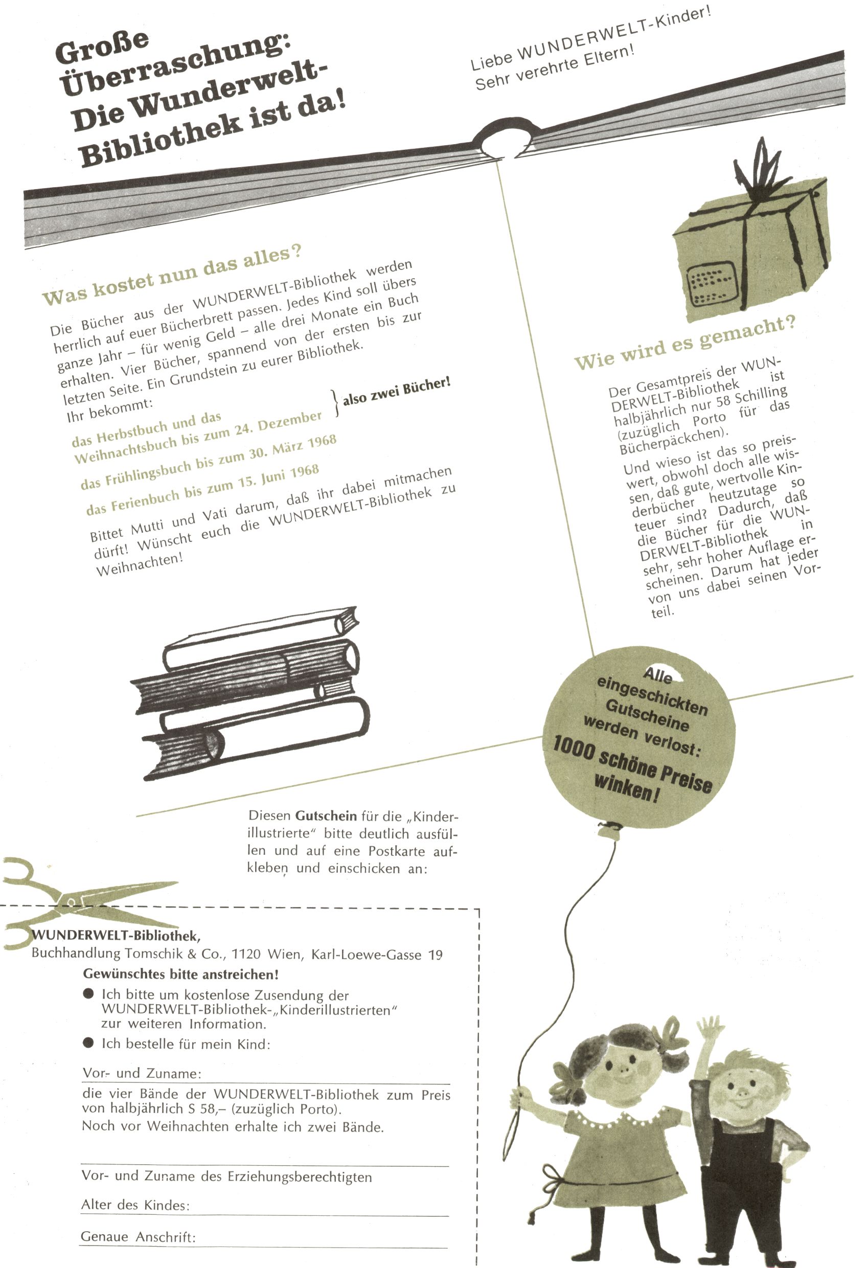 Die Wunderwelt im Festtagsgewand In den Sonderheften präsentierte sich die Wunderwelt wahrhaftig in Feiertagsstimmung. Mit wenigen Ausnahmen gab es pro Jahr drei Sonderhefte - zu Weihnachten bzw. im Advent, zu Ostern und in den Ferien im Sommer. Experimente mit Faschings- und Muttertagsheften hatten sich nicht bewährt. Selbst als es die Einzelhefte in der Krisensituation nach 1967 nicht mehr gab, wurde die Wunderwelt-Zeitung im Layout der Sonderhefte fortgesetzt: Zunächst mit 3 bis 5 und ab 1971 immerhin wieder mit 10-12 Heften pro Jahr. Die Weihnachts-, Oster- und Ferienhefte hatten naturgemäß verschiedene Schwerpunkte. Während im Sommer Spielen und Werken mit Material im Vordergrund stand, waren es zu Weihnachten Krippen und Adventhäuser; zu Ostern dann Erzählungen, Hasenstädte und Oster-Basteleien. Das bessere Papier der Sonderhefte erleichterte das Ausschneiden der insgesamt mehr als 1000 Papiermodelle erheblich. Die Sonderhefte waren vergleichsweise aufwändig gestaltet, aber auch ein wichtiges Zusatzgeschäft für die Zeitung. Die Kinder fieberten dem Erscheinungsdatum der jeweiligen Ausgabe nicht selten richtiggehend entgegen. Mit knapp 100 Seiten pro Jahr machten die Sonderhefte von der Menge her zwar nicht einmal ein Viertel aus, trugen aber zum Erscheinungsbild mindestens genauso viel bei wie die Standardhefte. Im Wesentlichen blieb das Layout der Sonderhefte über die Jahre hin unverändert. Mühselig wurde es, als man den Inhalt der Beiträge vorübergehend auf die Seiten gleichmäßig verteilte und die Kinder ermunterte, die Hefte in der Mitte zu zerschneiden. Die eine Hälfte enthielt dann etwa Erzählungen und Bastelvorschläge, der andere Teil der Zeitung Spielanleitungen. Zur übersichtlichkeit trugen diese Layoutversuche jedenfalls in keiner Weise bei und als besonderen Auswuchs gab es eine Zeitlang auf einer Seite oft mehrere Seitennummern, je nachdem, ob sich diese auf das Gesamtheft oder den herauszunehmenden und zu zerschneidenden Heftteil bezogen. Gegen Ende der 1950er Jahre kehrte man wieder zu einem ganzseitigen Layout zurück und Ideen wie ein Spiel-(Heft-im-)Heft gehörten der Vergangenheit an. In den Sonderheften experimentierte man dann noch ab Mitte der 1960er Jahre, als die Verkaufszahlen stark rückläufig waren, mit grundsätzlich neuen Darstellungsformen - weg vom Niedlich-Kitschigen und engagierte neue Grafikerinnen wie Gundi Groh und Hella Soyka. Den erhofften Erfolg brachte dies jedoch nicht mehr. |