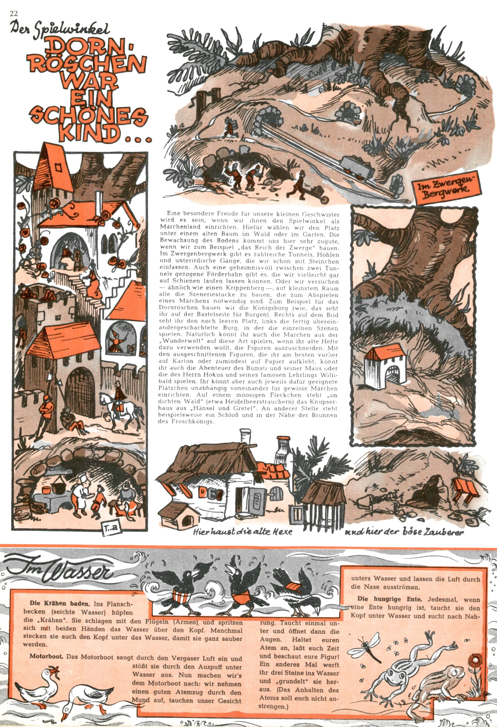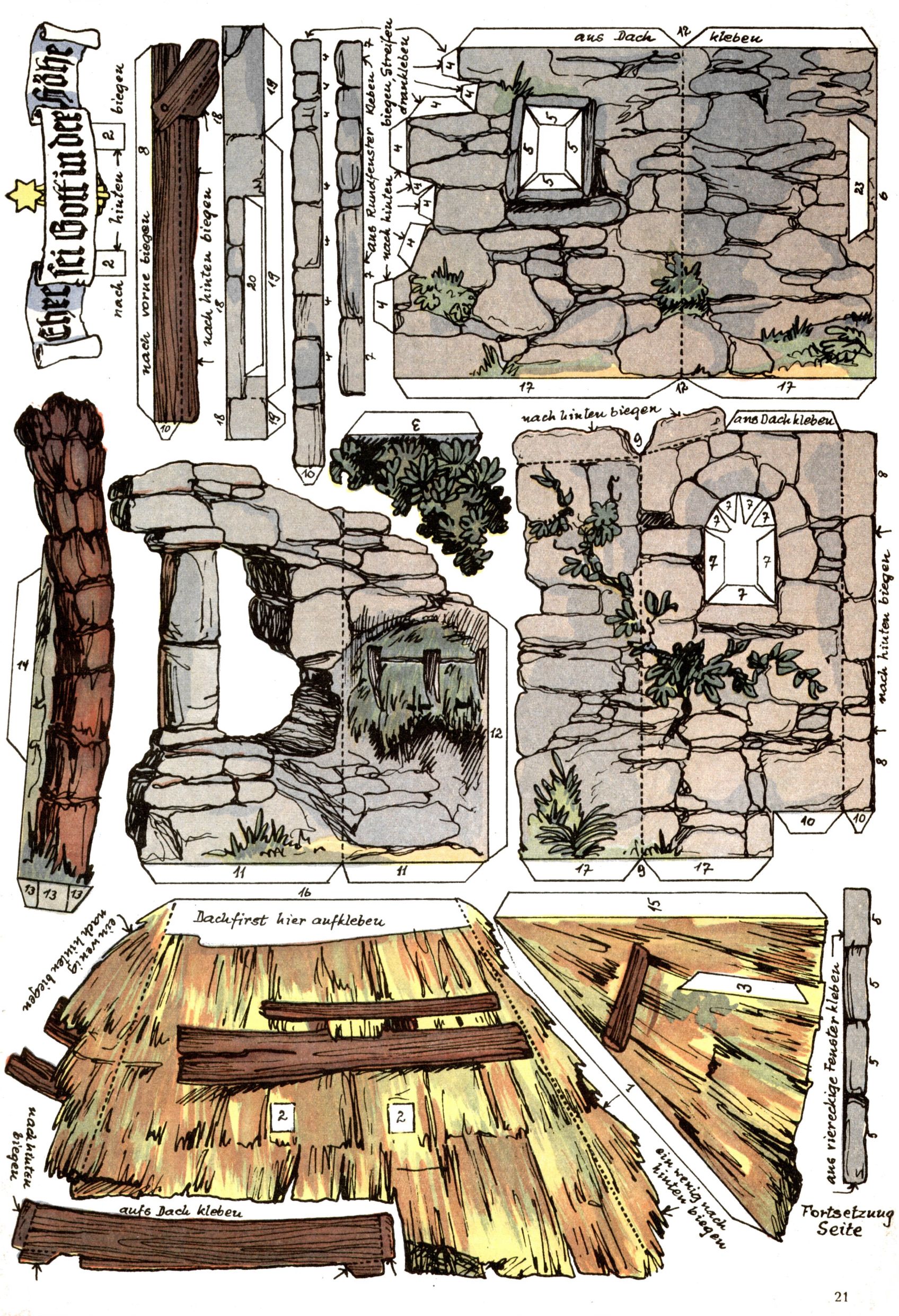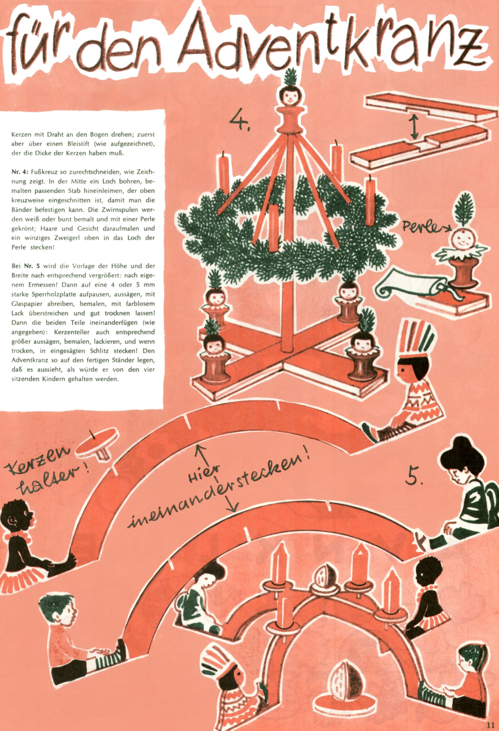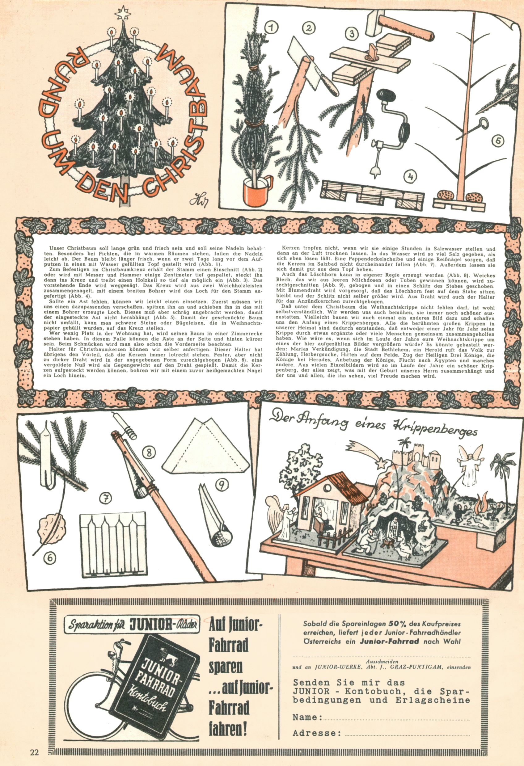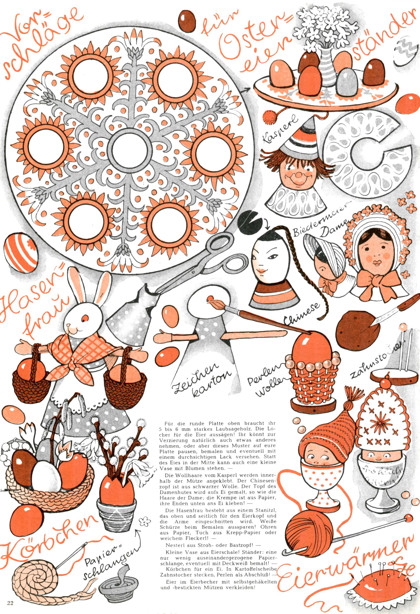 Die Wunderwelt im Festtagsgewand In den Sonderheften präsentierte sich die Wunderwelt wahrhaftig in Feiertagsstimmung. Mit wenigen Ausnahmen gab es pro Jahr drei Sonderhefte - zu Weihnachten bzw. im Advent, zu Ostern und in den Ferien im Sommer. Experimente mit Faschings- und Muttertagsheften hatten sich nicht bewährt. Selbst als es die Einzelhefte in der Krisensituation nach 1967 nicht mehr gab, wurde die Wunderwelt-Zeitung im Layout der Sonderhefte fortgesetzt: Zunächst mit 3 bis 5 und ab 1971 immerhin wieder mit 10-12 Heften pro Jahr. Die Weihnachts-, Oster- und Ferienhefte hatten naturgemäß verschiedene Schwerpunkte. Während im Sommer Spielen und Werken mit Material im Vordergrund stand, waren es zu Weihnachten Krippen und Adventhäuser; zu Ostern dann Erzählungen, Hasenstädte und Oster-Basteleien. Das bessere Papier der Sonderhefte erleichterte das Ausschneiden der insgesamt mehr als 1000 Papiermodelle erheblich. Die Sonderhefte waren vergleichsweise aufwändig gestaltet, aber auch ein wichtiges Zusatzgeschäft für die Zeitung. Die Kinder fieberten dem Erscheinungsdatum der jeweiligen Ausgabe nicht selten richtiggehend entgegen. Mit knapp 100 Seiten pro Jahr machten die Sonderhefte von der Menge her zwar nicht einmal ein Viertel aus, trugen aber zum Erscheinungsbild mindestens genauso viel bei wie die Standardhefte. Im Wesentlichen blieb das Layout der Sonderhefte über die Jahre hin unverändert. Mühselig wurde es, als man den Inhalt der Beiträge vorübergehend auf die Seiten gleichmäßig verteilte und die Kinder ermunterte, die Hefte in der Mitte zu zerschneiden. Die eine Hälfte enthielt dann etwa Erzählungen und Bastelvorschläge, der andere Teil der Zeitung Spielanleitungen. Zur übersichtlichkeit trugen diese Layoutversuche jedenfalls in keiner Weise bei und als besonderen Auswuchs gab es eine Zeitlang auf einer Seite oft mehrere Seitennummern, je nachdem, ob sich diese auf das Gesamtheft oder den herauszunehmenden und zu zerschneidenden Heftteil bezogen. Gegen Ende der 1950er Jahre kehrte man wieder zu einem ganzseitigen Layout zurück und Ideen wie ein Spiel-(Heft-im-)Heft gehörten der Vergangenheit an. In den Sonderheften experimentierte man dann noch ab Mitte der 1960er Jahre, als die Verkaufszahlen stark rückläufig waren, mit grundsätzlich neuen Darstellungsformen - weg vom Niedlich-Kitschigen und engagierte neue Grafikerinnen wie Gundi Groh und Hella Soyka. Den erhofften Erfolg brachte dies jedoch nicht mehr. |