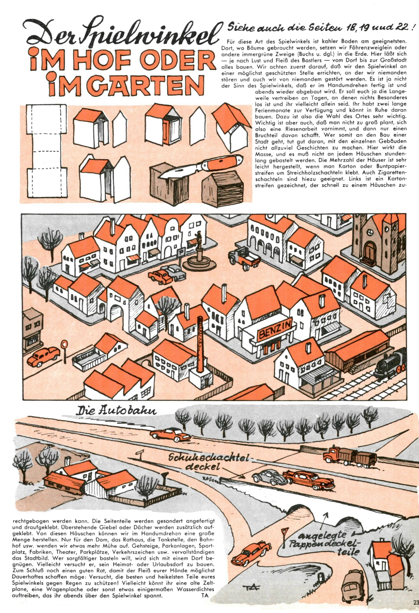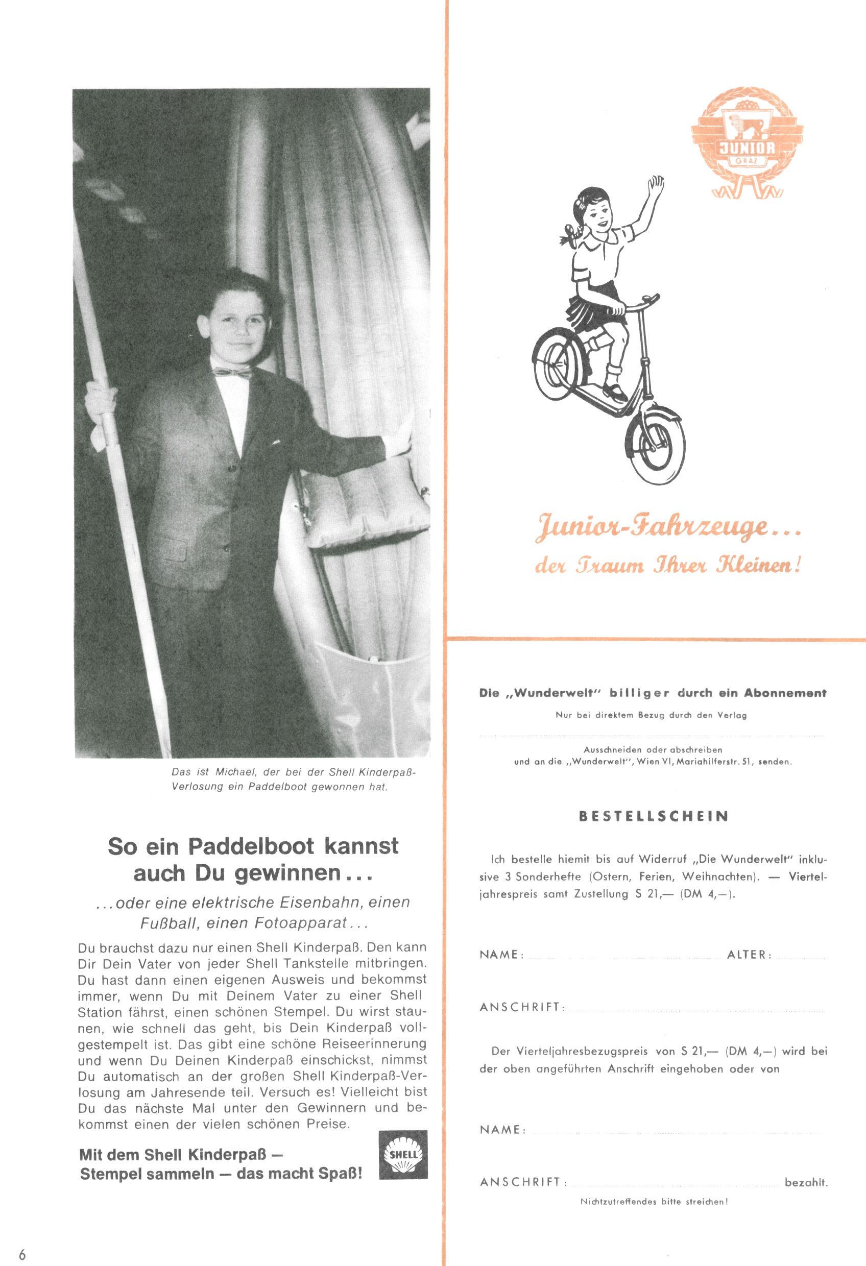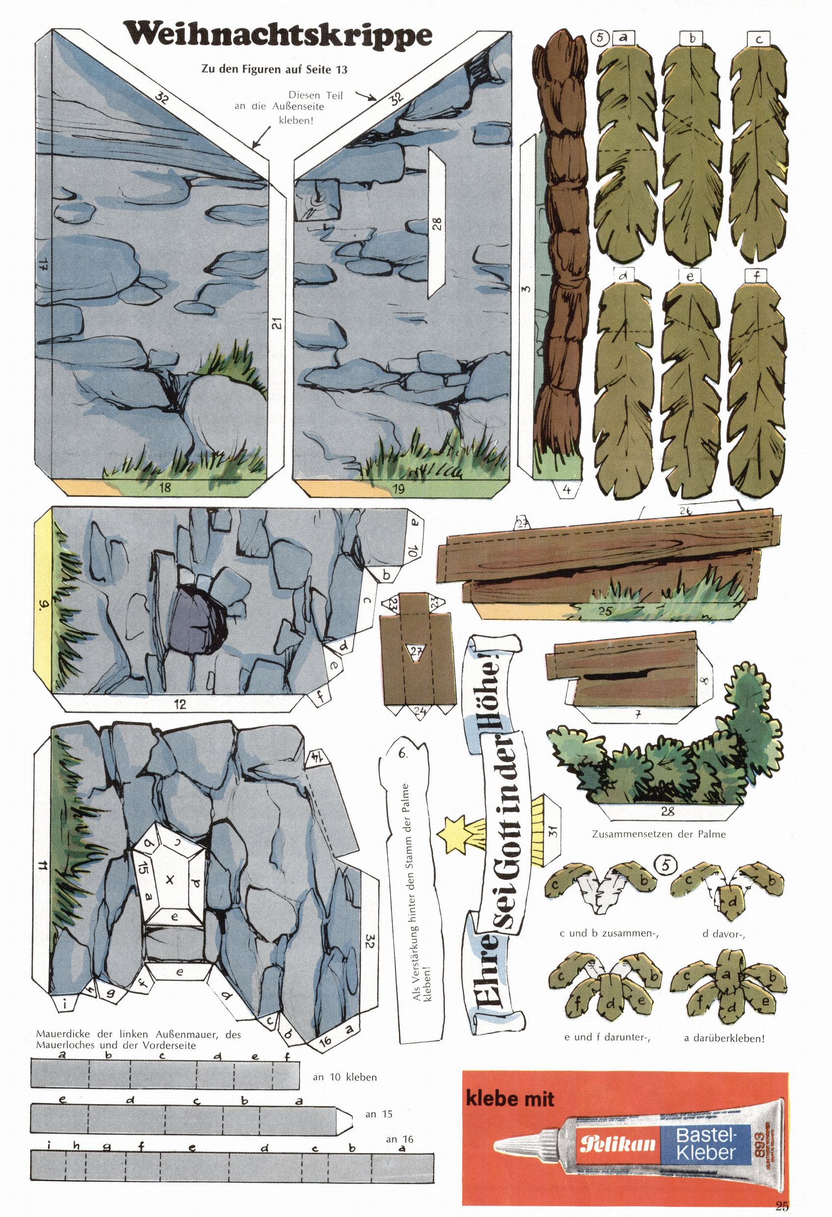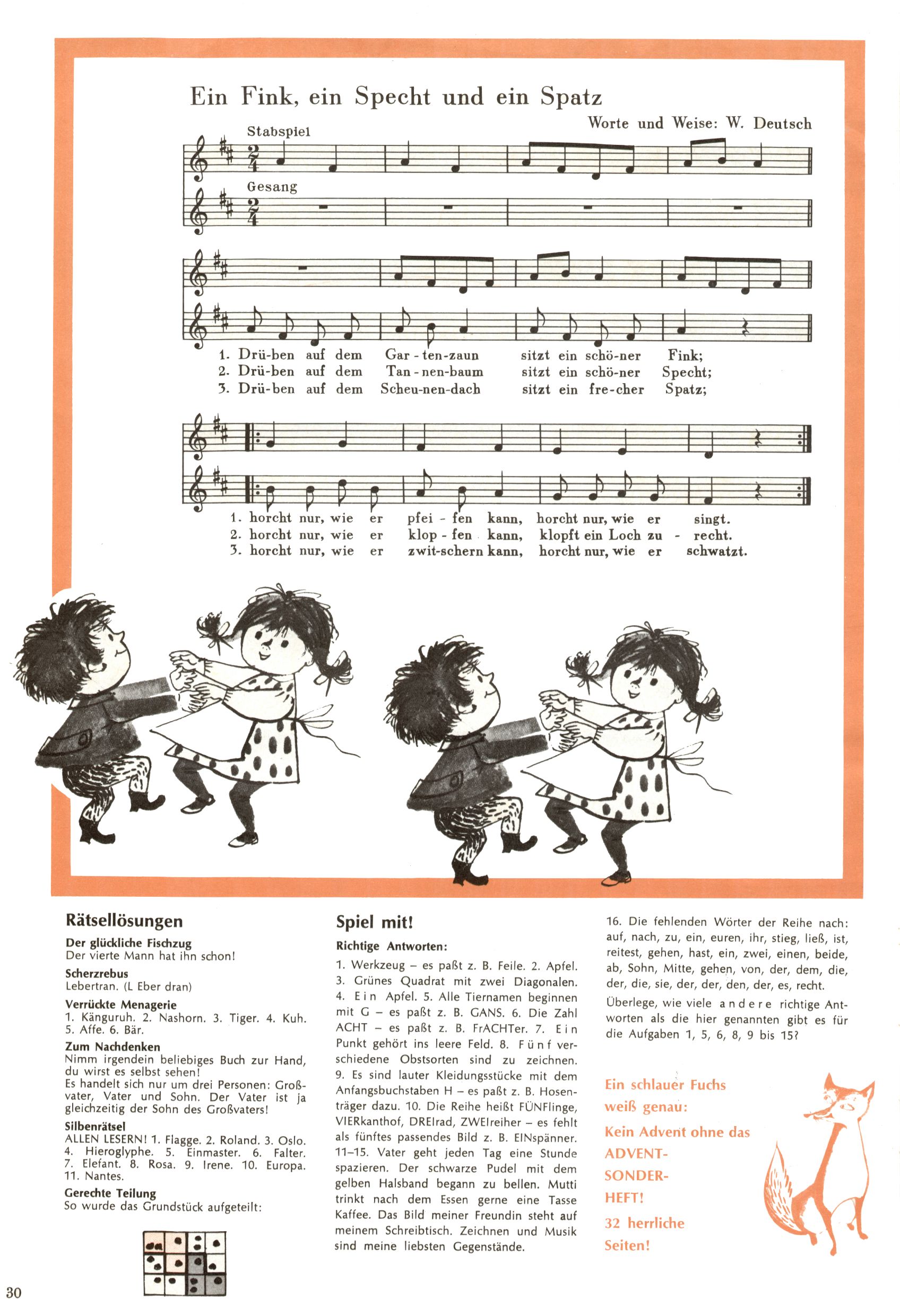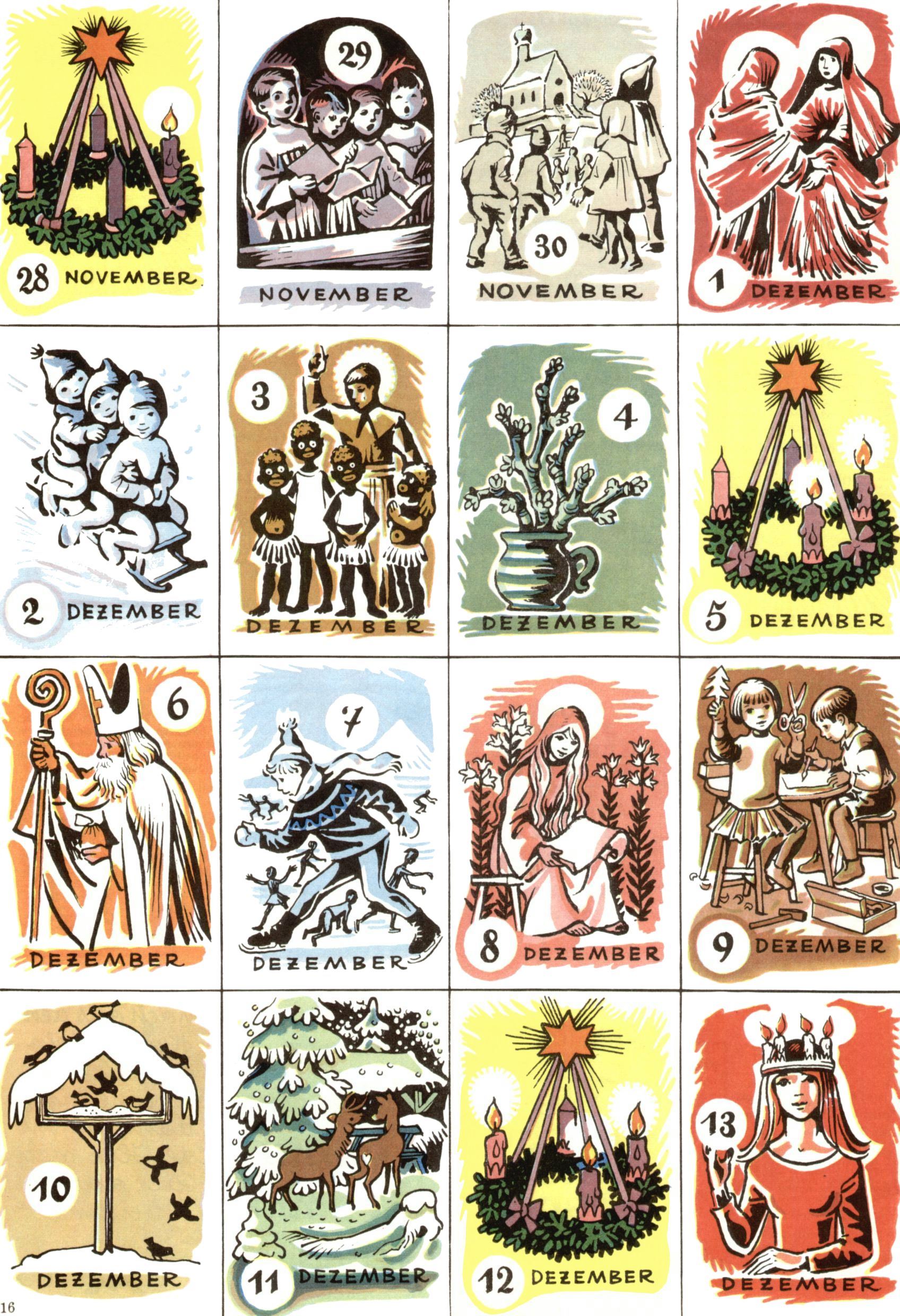 Die Wunderwelt im Festtagsgewand In den Sonderheften präsentierte sich die Wunderwelt wahrhaftig in Feiertagsstimmung. Mit wenigen Ausnahmen gab es pro Jahr drei Sonderhefte - zu Weihnachten bzw. im Advent, zu Ostern und in den Ferien im Sommer. Experimente mit Faschings- und Muttertagsheften hatten sich nicht bewährt. Selbst als es die Einzelhefte in der Krisensituation nach 1967 nicht mehr gab, wurde die Wunderwelt-Zeitung im Layout der Sonderhefte fortgesetzt: Zunächst mit 3 bis 5 und ab 1971 immerhin wieder mit 10-12 Heften pro Jahr. Die Weihnachts-, Oster- und Ferienhefte hatten naturgemäß verschiedene Schwerpunkte. Während im Sommer Spielen und Werken mit Material im Vordergrund stand, waren es zu Weihnachten Krippen und Adventhäuser; zu Ostern dann Erzählungen, Hasenstädte und Oster-Basteleien. Das bessere Papier der Sonderhefte erleichterte das Ausschneiden der insgesamt mehr als 1000 Papiermodelle erheblich. Die Sonderhefte waren vergleichsweise aufwändig gestaltet, aber auch ein wichtiges Zusatzgeschäft für die Zeitung. Die Kinder fieberten dem Erscheinungsdatum der jeweiligen Ausgabe nicht selten richtiggehend entgegen. Mit knapp 100 Seiten pro Jahr machten die Sonderhefte von der Menge her zwar nicht einmal ein Viertel aus, trugen aber zum Erscheinungsbild mindestens genauso viel bei wie die Standardhefte. Im Wesentlichen blieb das Layout der Sonderhefte über die Jahre hin unverändert. Mühselig wurde es, als man den Inhalt der Beiträge vorübergehend auf die Seiten gleichmäßig verteilte und die Kinder ermunterte, die Hefte in der Mitte zu zerschneiden. Die eine Hälfte enthielt dann etwa Erzählungen und Bastelvorschläge, der andere Teil der Zeitung Spielanleitungen. Zur übersichtlichkeit trugen diese Layoutversuche jedenfalls in keiner Weise bei und als besonderen Auswuchs gab es eine Zeitlang auf einer Seite oft mehrere Seitennummern, je nachdem, ob sich diese auf das Gesamtheft oder den herauszunehmenden und zu zerschneidenden Heftteil bezogen. Gegen Ende der 1950er Jahre kehrte man wieder zu einem ganzseitigen Layout zurück und Ideen wie ein Spiel-(Heft-im-)Heft gehörten der Vergangenheit an. In den Sonderheften experimentierte man dann noch ab Mitte der 1960er Jahre, als die Verkaufszahlen stark rückläufig waren, mit grundsätzlich neuen Darstellungsformen - weg vom Niedlich-Kitschigen und engagierte neue Grafikerinnen wie Gundi Groh und Hella Soyka. Den erhofften Erfolg brachte dies jedoch nicht mehr. |