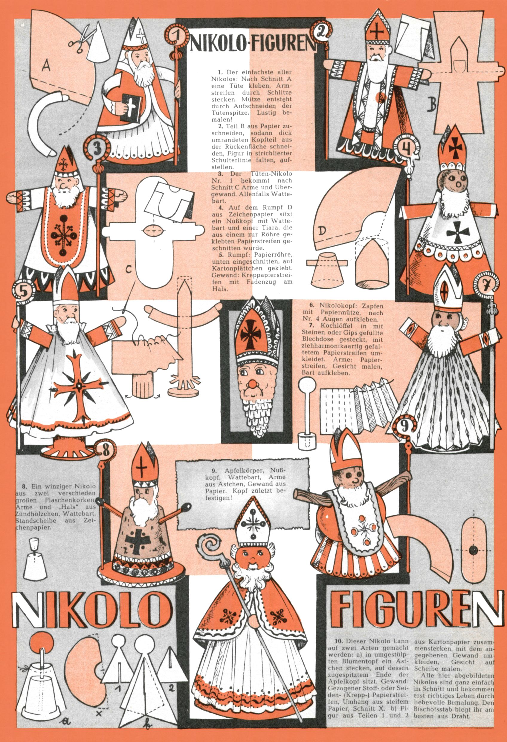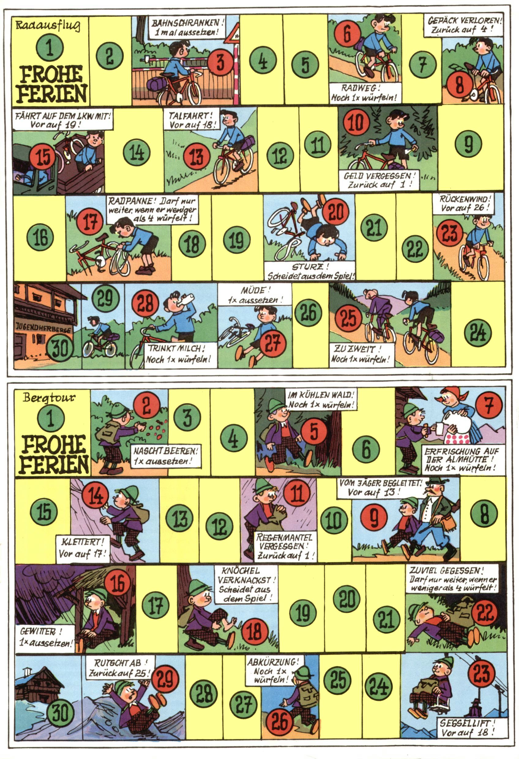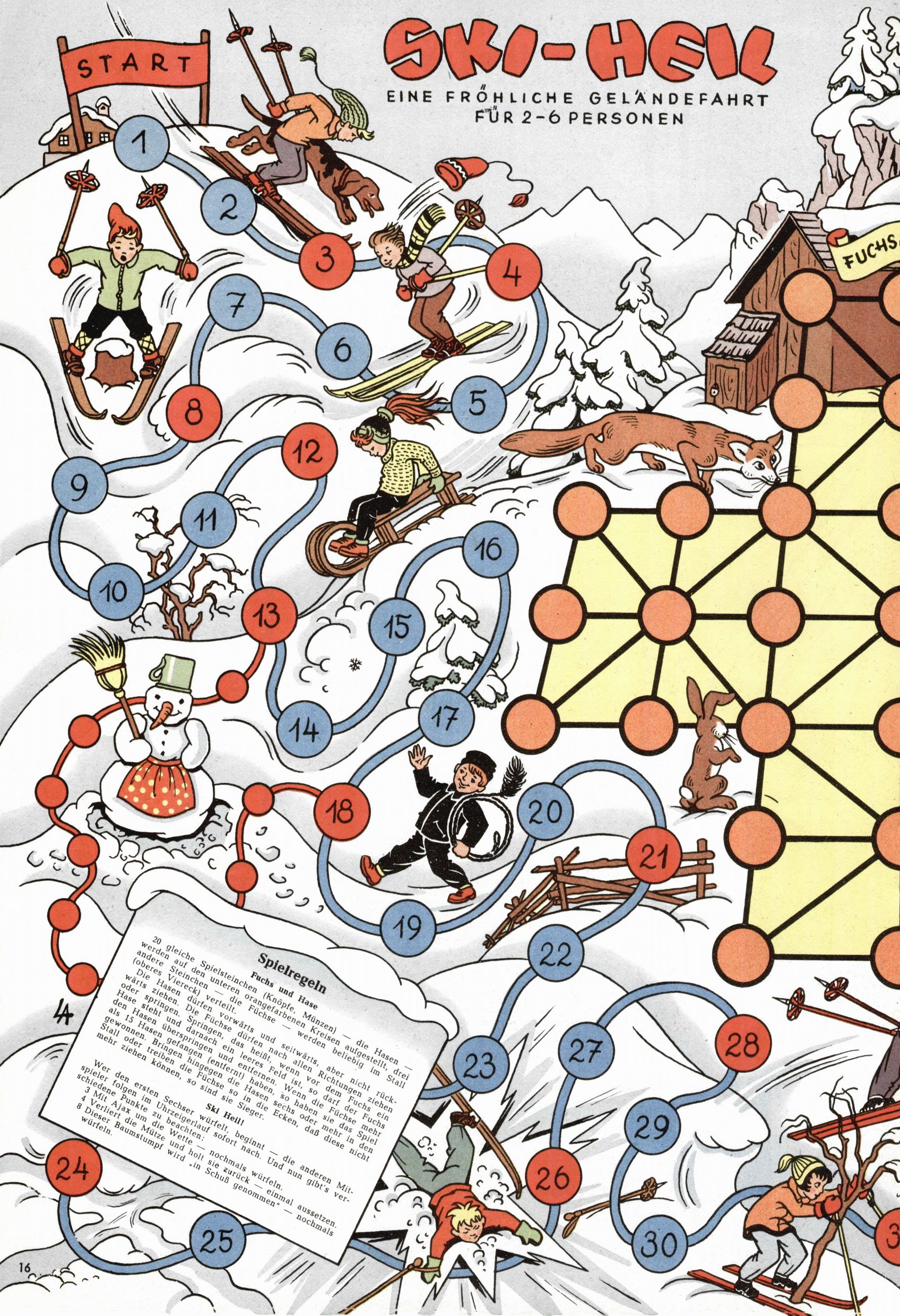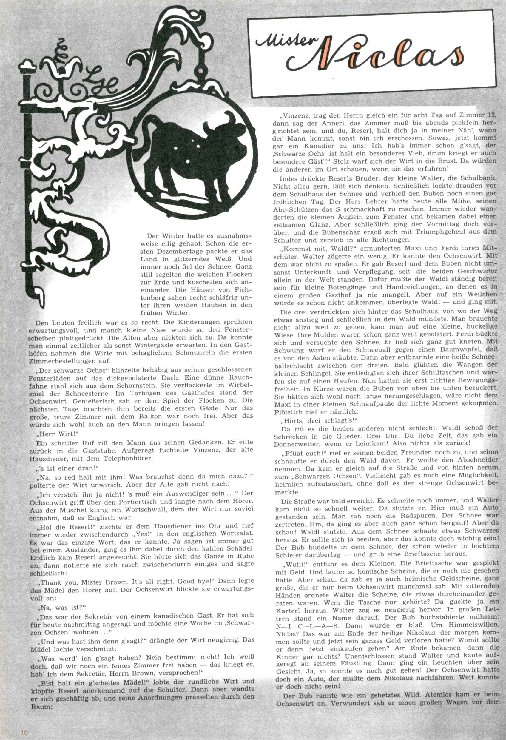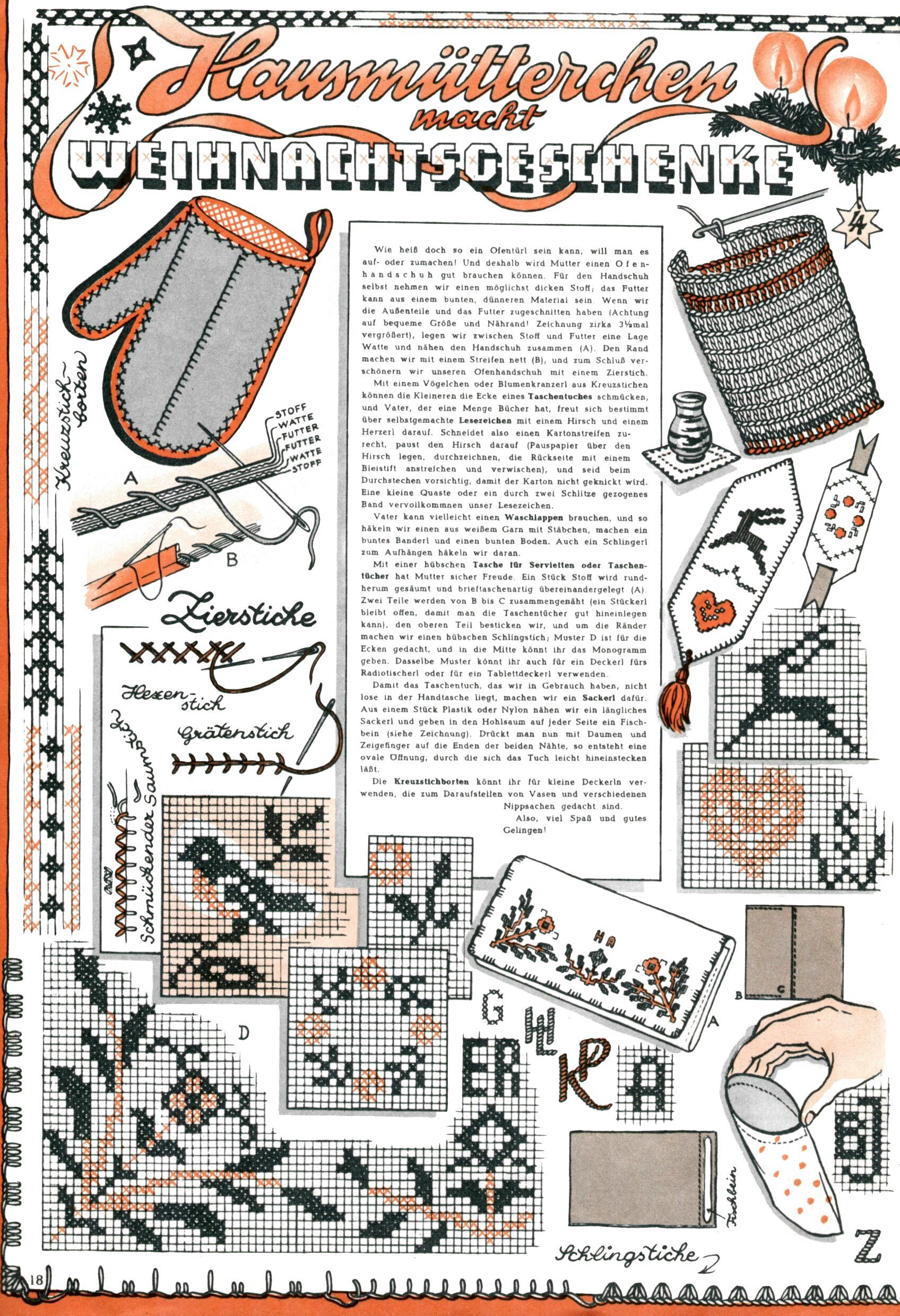 Die Wunderwelt im Festtagsgewand In den Sonderheften präsentierte sich die Wunderwelt wahrhaftig in Feiertagsstimmung. Mit wenigen Ausnahmen gab es pro Jahr drei Sonderhefte - zu Weihnachten bzw. im Advent, zu Ostern und in den Ferien im Sommer. Experimente mit Faschings- und Muttertagsheften hatten sich nicht bewährt. Selbst als es die Einzelhefte in der Krisensituation nach 1967 nicht mehr gab, wurde die Wunderwelt-Zeitung im Layout der Sonderhefte fortgesetzt: Zunächst mit 3 bis 5 und ab 1971 immerhin wieder mit 10-12 Heften pro Jahr. Die Weihnachts-, Oster- und Ferienhefte hatten naturgemäß verschiedene Schwerpunkte. Während im Sommer Spielen und Werken mit Material im Vordergrund stand, waren es zu Weihnachten Krippen und Adventhäuser; zu Ostern dann Erzählungen, Hasenstädte und Oster-Basteleien. Das bessere Papier der Sonderhefte erleichterte das Ausschneiden der insgesamt mehr als 1000 Papiermodelle erheblich. Die Sonderhefte waren vergleichsweise aufwändig gestaltet, aber auch ein wichtiges Zusatzgeschäft für die Zeitung. Die Kinder fieberten dem Erscheinungsdatum der jeweiligen Ausgabe nicht selten richtiggehend entgegen. Mit knapp 100 Seiten pro Jahr machten die Sonderhefte von der Menge her zwar nicht einmal ein Viertel aus, trugen aber zum Erscheinungsbild mindestens genauso viel bei wie die Standardhefte. Im Wesentlichen blieb das Layout der Sonderhefte über die Jahre hin unverändert. Mühselig wurde es, als man den Inhalt der Beiträge vorübergehend auf die Seiten gleichmäßig verteilte und die Kinder ermunterte, die Hefte in der Mitte zu zerschneiden. Die eine Hälfte enthielt dann etwa Erzählungen und Bastelvorschläge, der andere Teil der Zeitung Spielanleitungen. Zur übersichtlichkeit trugen diese Layoutversuche jedenfalls in keiner Weise bei und als besonderen Auswuchs gab es eine Zeitlang auf einer Seite oft mehrere Seitennummern, je nachdem, ob sich diese auf das Gesamtheft oder den herauszunehmenden und zu zerschneidenden Heftteil bezogen. Gegen Ende der 1950er Jahre kehrte man wieder zu einem ganzseitigen Layout zurück und Ideen wie ein Spiel-(Heft-im-)Heft gehörten der Vergangenheit an. In den Sonderheften experimentierte man dann noch ab Mitte der 1960er Jahre, als die Verkaufszahlen stark rückläufig waren, mit grundsätzlich neuen Darstellungsformen - weg vom Niedlich-Kitschigen und engagierte neue Grafikerinnen wie Gundi Groh und Hella Soyka. Den erhofften Erfolg brachte dies jedoch nicht mehr. |