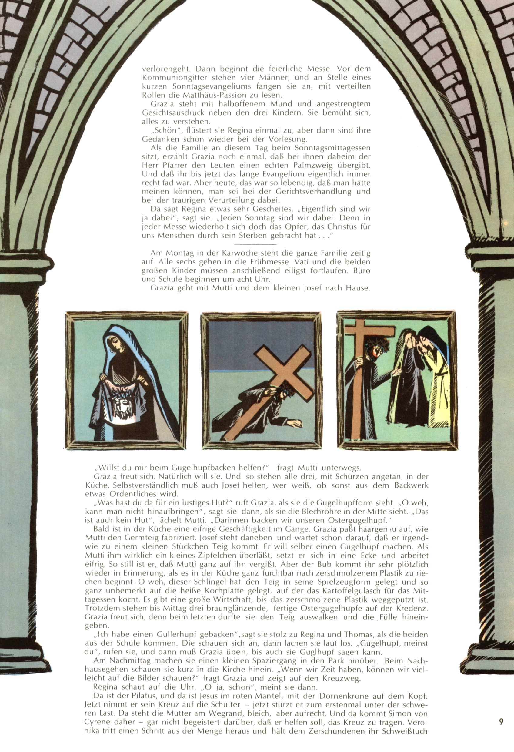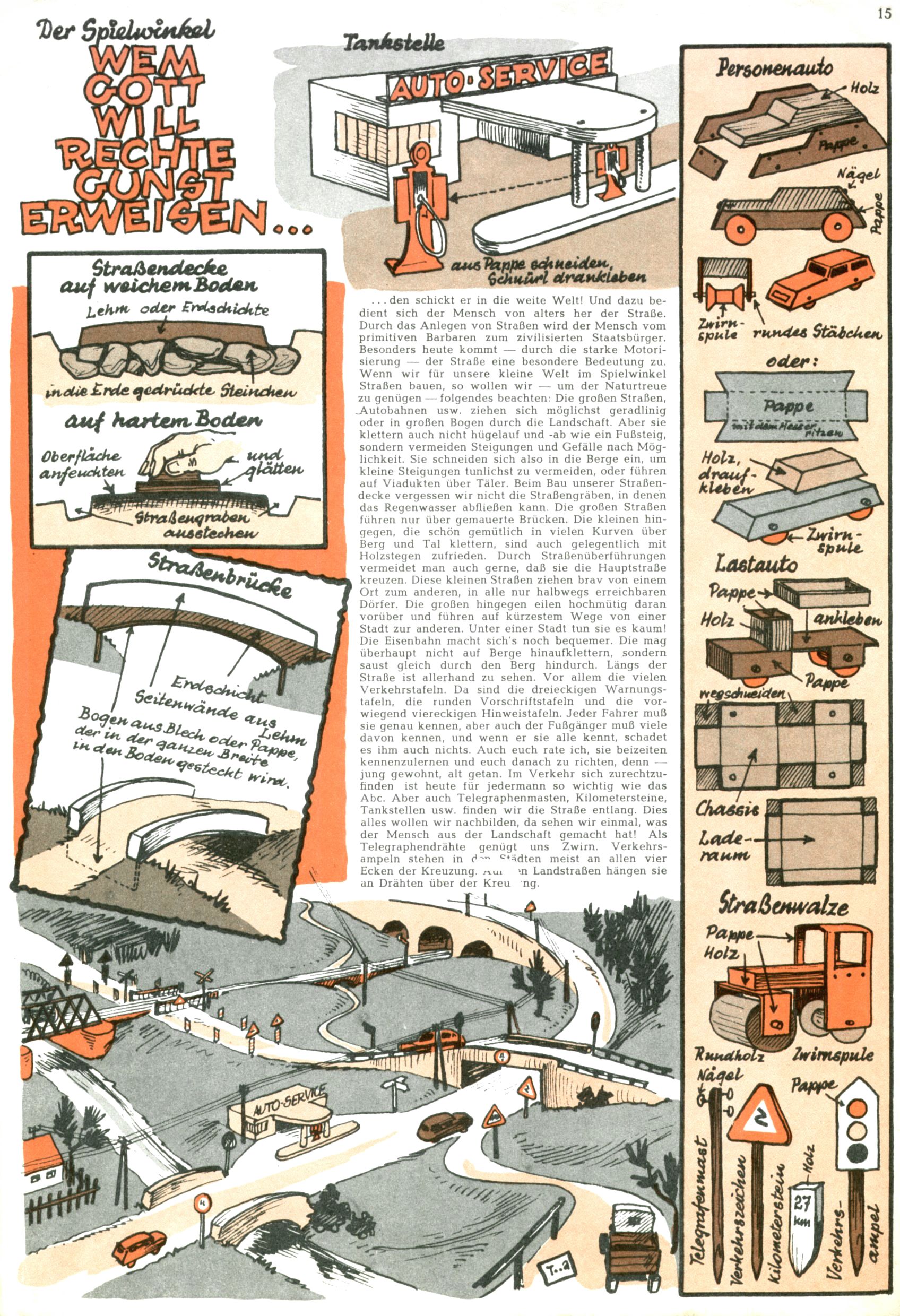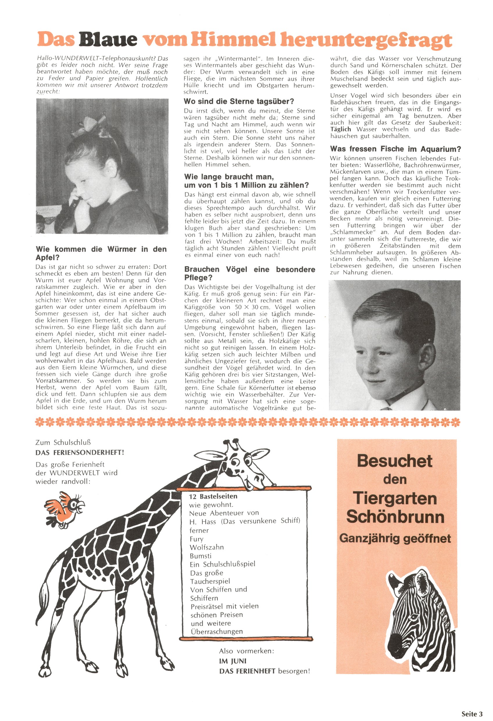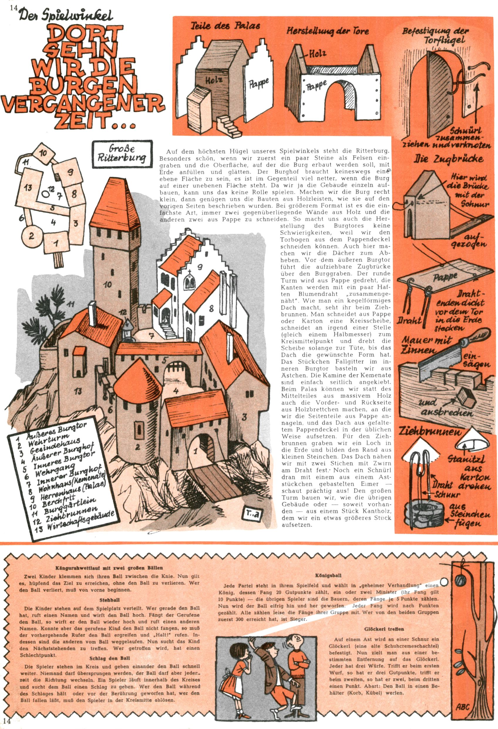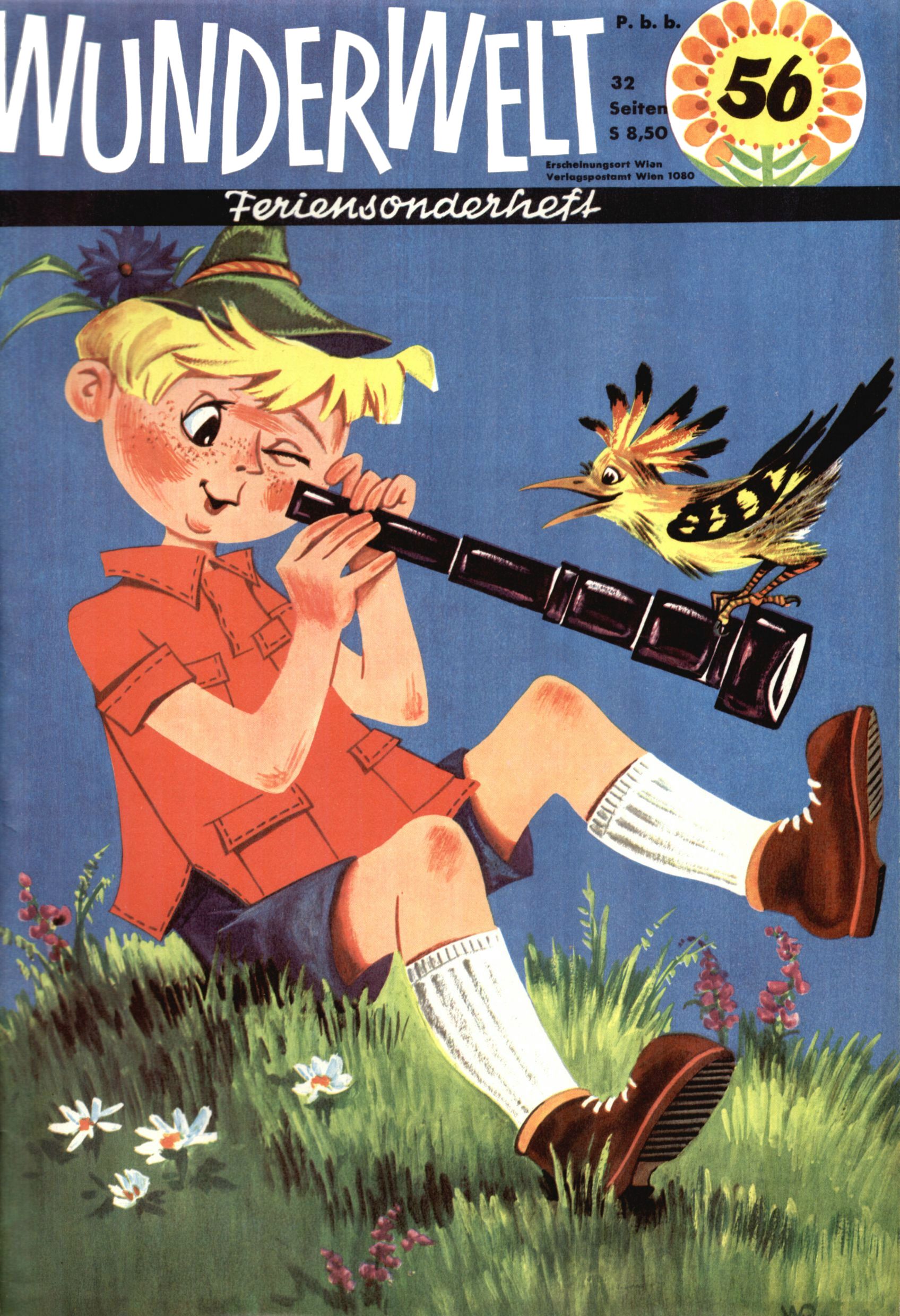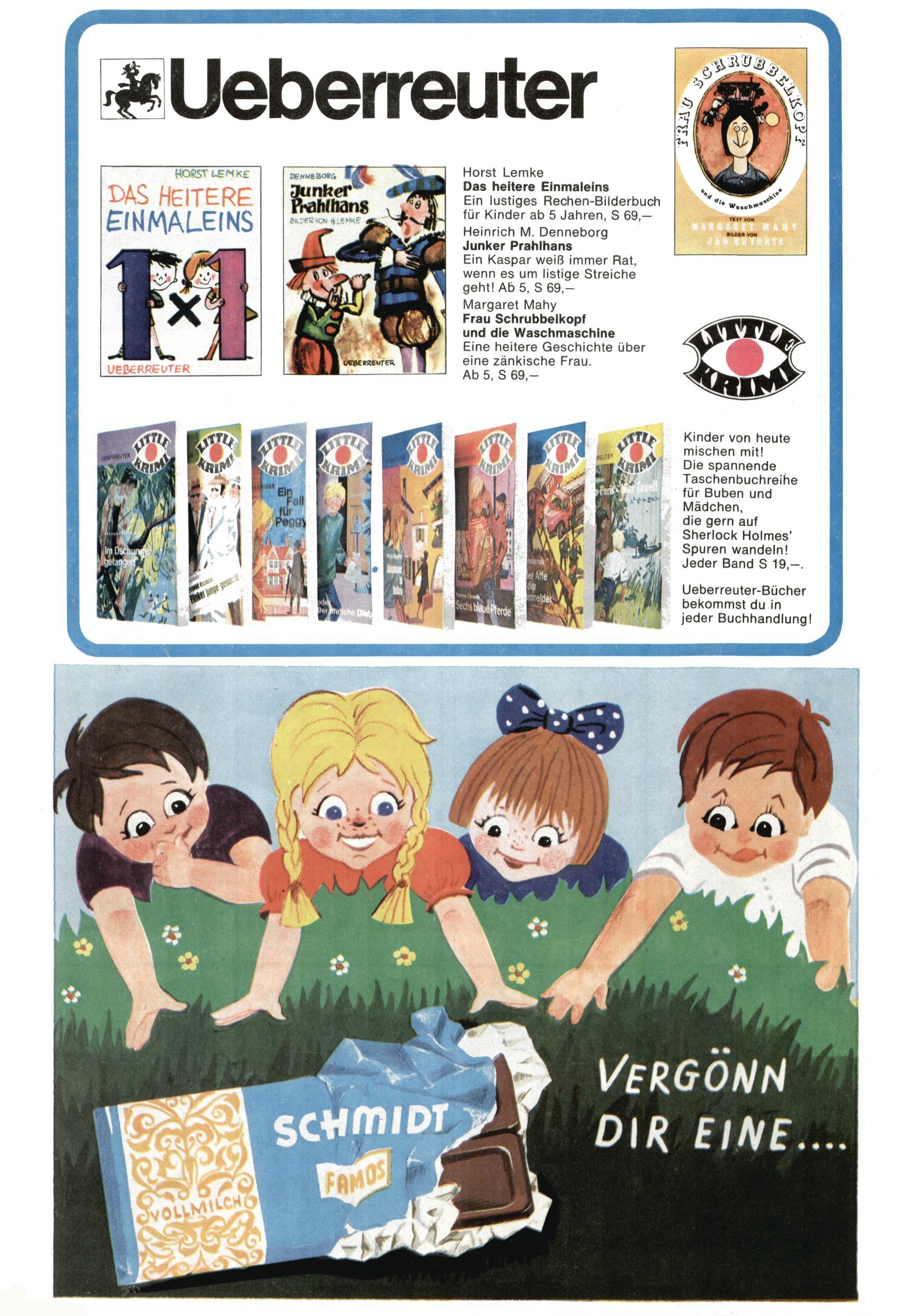 Die Wunderwelt im Festtagsgewand In den Sonderheften präsentierte sich die Wunderwelt wahrhaftig in Feiertagsstimmung. Mit wenigen Ausnahmen gab es pro Jahr drei Sonderhefte - zu Weihnachten bzw. im Advent, zu Ostern und in den Ferien im Sommer. Experimente mit Faschings- und Muttertagsheften hatten sich nicht bewährt. Selbst als es die Einzelhefte in der Krisensituation nach 1967 nicht mehr gab, wurde die Wunderwelt-Zeitung im Layout der Sonderhefte fortgesetzt: Zunächst mit 3 bis 5 und ab 1971 immerhin wieder mit 10-12 Heften pro Jahr. Die Weihnachts-, Oster- und Ferienhefte hatten naturgemäß verschiedene Schwerpunkte. Während im Sommer Spielen und Werken mit Material im Vordergrund stand, waren es zu Weihnachten Krippen und Adventhäuser; zu Ostern dann Erzählungen, Hasenstädte und Oster-Basteleien. Das bessere Papier der Sonderhefte erleichterte das Ausschneiden der insgesamt mehr als 1000 Papiermodelle erheblich. Die Sonderhefte waren vergleichsweise aufwändig gestaltet, aber auch ein wichtiges Zusatzgeschäft für die Zeitung. Die Kinder fieberten dem Erscheinungsdatum der jeweiligen Ausgabe nicht selten richtiggehend entgegen. Mit knapp 100 Seiten pro Jahr machten die Sonderhefte von der Menge her zwar nicht einmal ein Viertel aus, trugen aber zum Erscheinungsbild mindestens genauso viel bei wie die Standardhefte. Im Wesentlichen blieb das Layout der Sonderhefte über die Jahre hin unverändert. Mühselig wurde es, als man den Inhalt der Beiträge vorübergehend auf die Seiten gleichmäßig verteilte und die Kinder ermunterte, die Hefte in der Mitte zu zerschneiden. Die eine Hälfte enthielt dann etwa Erzählungen und Bastelvorschläge, der andere Teil der Zeitung Spielanleitungen. Zur übersichtlichkeit trugen diese Layoutversuche jedenfalls in keiner Weise bei und als besonderen Auswuchs gab es eine Zeitlang auf einer Seite oft mehrere Seitennummern, je nachdem, ob sich diese auf das Gesamtheft oder den herauszunehmenden und zu zerschneidenden Heftteil bezogen. Gegen Ende der 1950er Jahre kehrte man wieder zu einem ganzseitigen Layout zurück und Ideen wie ein Spiel-(Heft-im-)Heft gehörten der Vergangenheit an. In den Sonderheften experimentierte man dann noch ab Mitte der 1960er Jahre, als die Verkaufszahlen stark rückläufig waren, mit grundsätzlich neuen Darstellungsformen - weg vom Niedlich-Kitschigen und engagierte neue Grafikerinnen wie Gundi Groh und Hella Soyka. Den erhofften Erfolg brachte dies jedoch nicht mehr. |