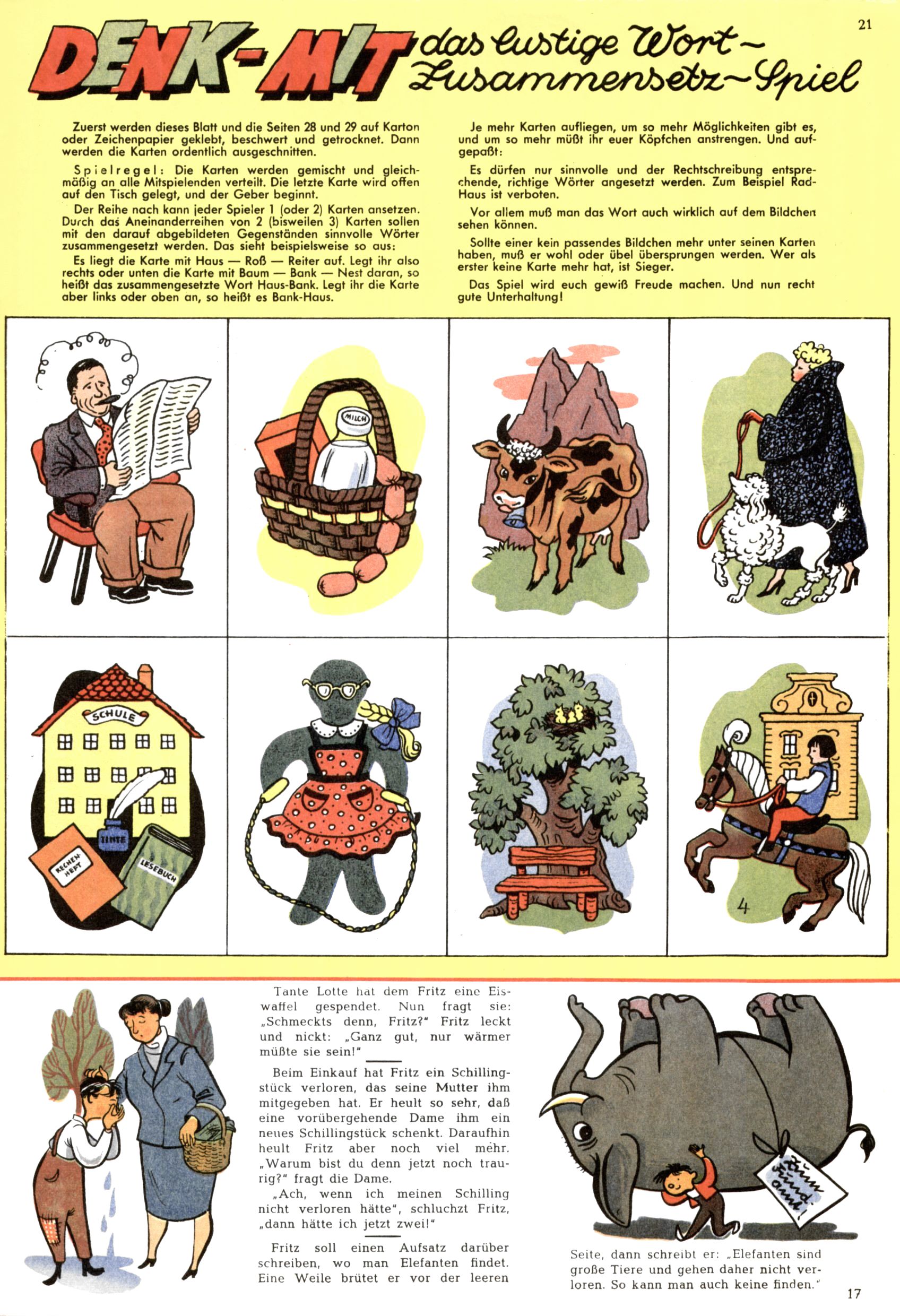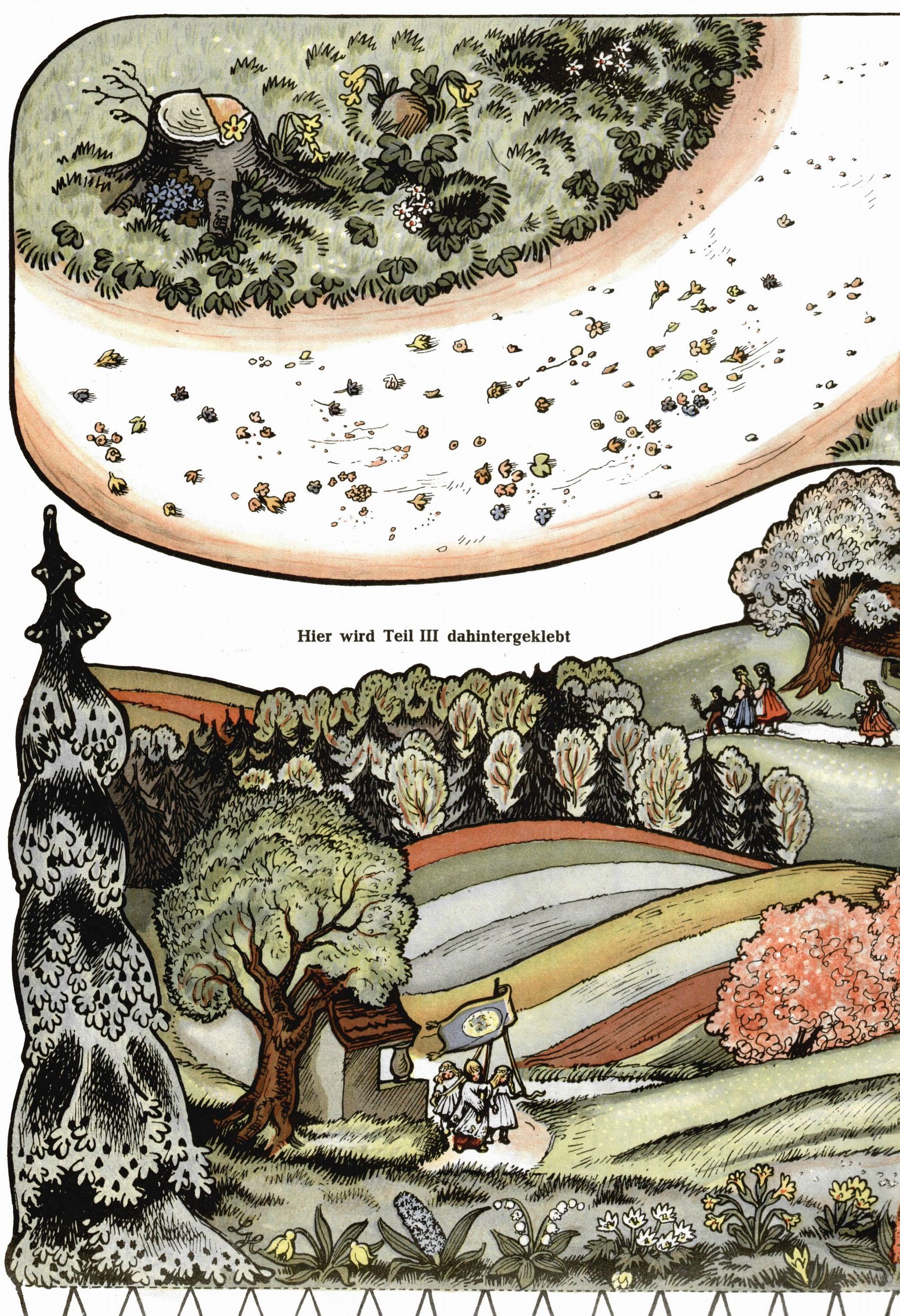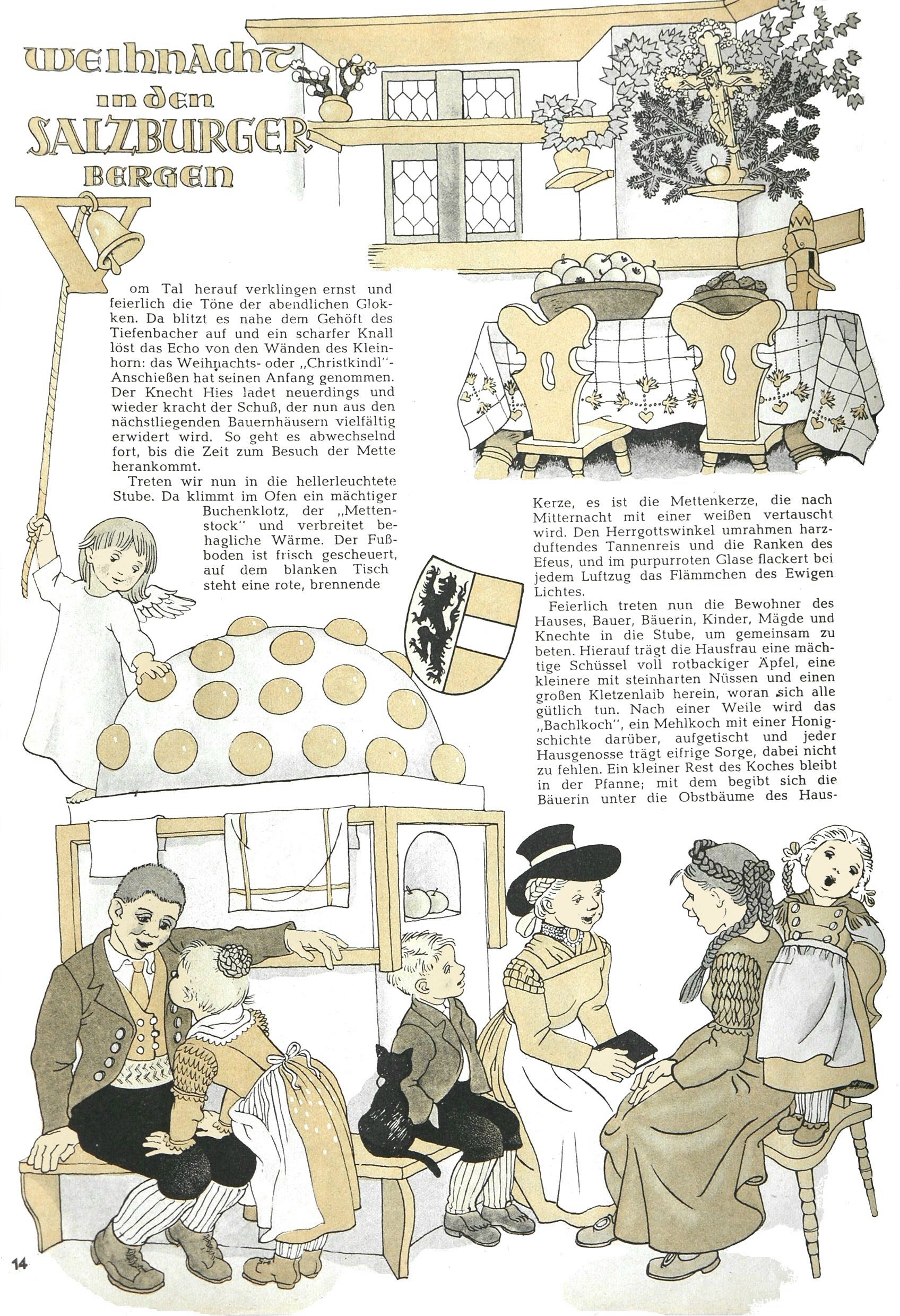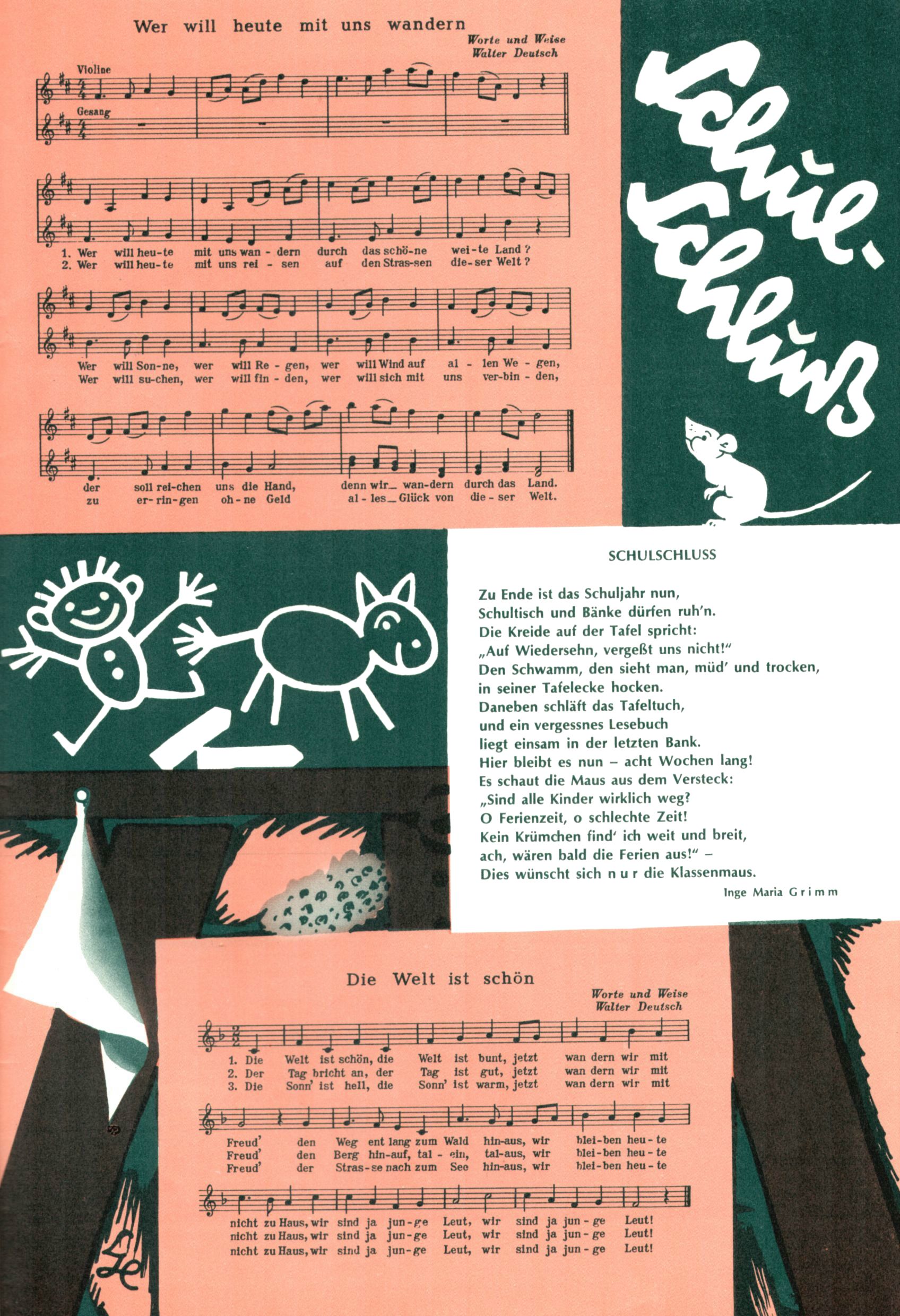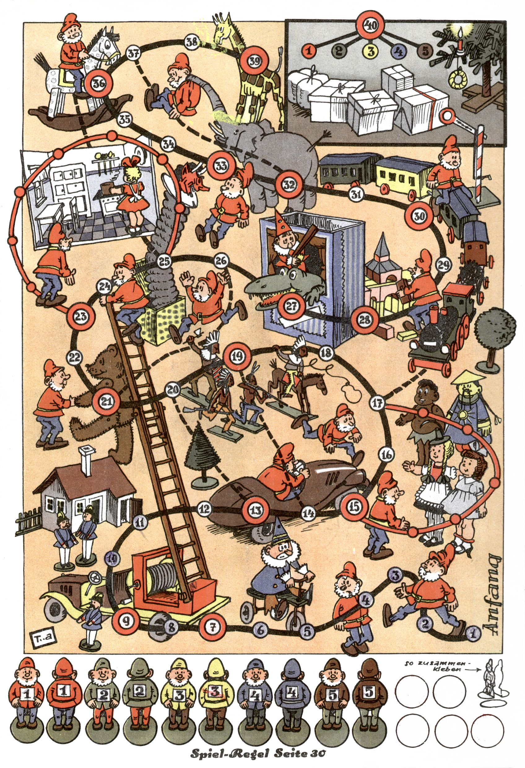 Die Wunderwelt im Festtagsgewand In den Sonderheften präsentierte sich die Wunderwelt wahrhaftig in Feiertagsstimmung. Mit wenigen Ausnahmen gab es pro Jahr drei Sonderhefte - zu Weihnachten bzw. im Advent, zu Ostern und in den Ferien im Sommer. Experimente mit Faschings- und Muttertagsheften hatten sich nicht bewährt. Selbst als es die Einzelhefte in der Krisensituation nach 1967 nicht mehr gab, wurde die Wunderwelt-Zeitung im Layout der Sonderhefte fortgesetzt: Zunächst mit 3 bis 5 und ab 1971 immerhin wieder mit 10-12 Heften pro Jahr. Die Weihnachts-, Oster- und Ferienhefte hatten naturgemäß verschiedene Schwerpunkte. Während im Sommer Spielen und Werken mit Material im Vordergrund stand, waren es zu Weihnachten Krippen und Adventhäuser; zu Ostern dann Erzählungen, Hasenstädte und Oster-Basteleien. Das bessere Papier der Sonderhefte erleichterte das Ausschneiden der insgesamt mehr als 1000 Papiermodelle erheblich. Die Sonderhefte waren vergleichsweise aufwändig gestaltet, aber auch ein wichtiges Zusatzgeschäft für die Zeitung. Die Kinder fieberten dem Erscheinungsdatum der jeweiligen Ausgabe nicht selten richtiggehend entgegen. Mit knapp 100 Seiten pro Jahr machten die Sonderhefte von der Menge her zwar nicht einmal ein Viertel aus, trugen aber zum Erscheinungsbild mindestens genauso viel bei wie die Standardhefte. Im Wesentlichen blieb das Layout der Sonderhefte über die Jahre hin unverändert. Mühselig wurde es, als man den Inhalt der Beiträge vorübergehend auf die Seiten gleichmäßig verteilte und die Kinder ermunterte, die Hefte in der Mitte zu zerschneiden. Die eine Hälfte enthielt dann etwa Erzählungen und Bastelvorschläge, der andere Teil der Zeitung Spielanleitungen. Zur übersichtlichkeit trugen diese Layoutversuche jedenfalls in keiner Weise bei und als besonderen Auswuchs gab es eine Zeitlang auf einer Seite oft mehrere Seitennummern, je nachdem, ob sich diese auf das Gesamtheft oder den herauszunehmenden und zu zerschneidenden Heftteil bezogen. Gegen Ende der 1950er Jahre kehrte man wieder zu einem ganzseitigen Layout zurück und Ideen wie ein Spiel-(Heft-im-)Heft gehörten der Vergangenheit an. In den Sonderheften experimentierte man dann noch ab Mitte der 1960er Jahre, als die Verkaufszahlen stark rückläufig waren, mit grundsätzlich neuen Darstellungsformen - weg vom Niedlich-Kitschigen und engagierte neue Grafikerinnen wie Gundi Groh und Hella Soyka. Den erhofften Erfolg brachte dies jedoch nicht mehr. |