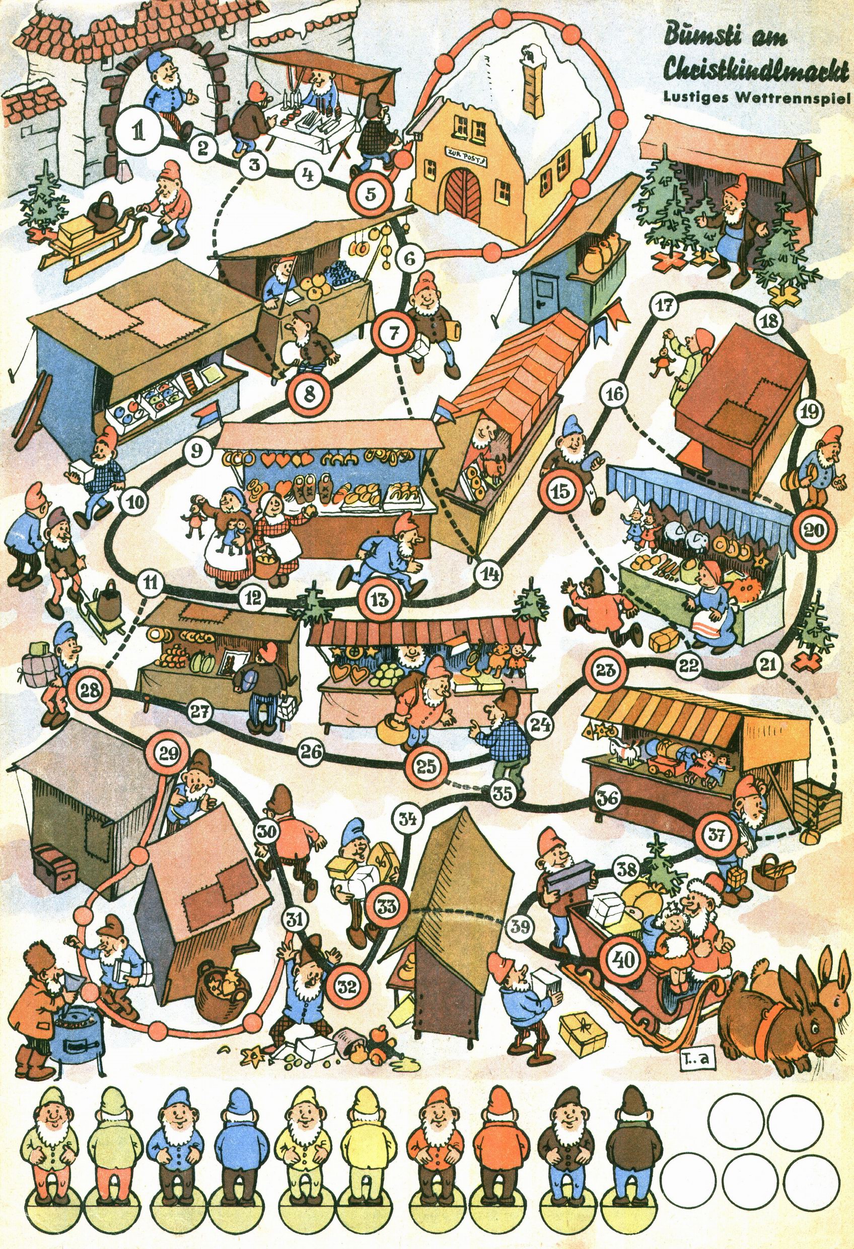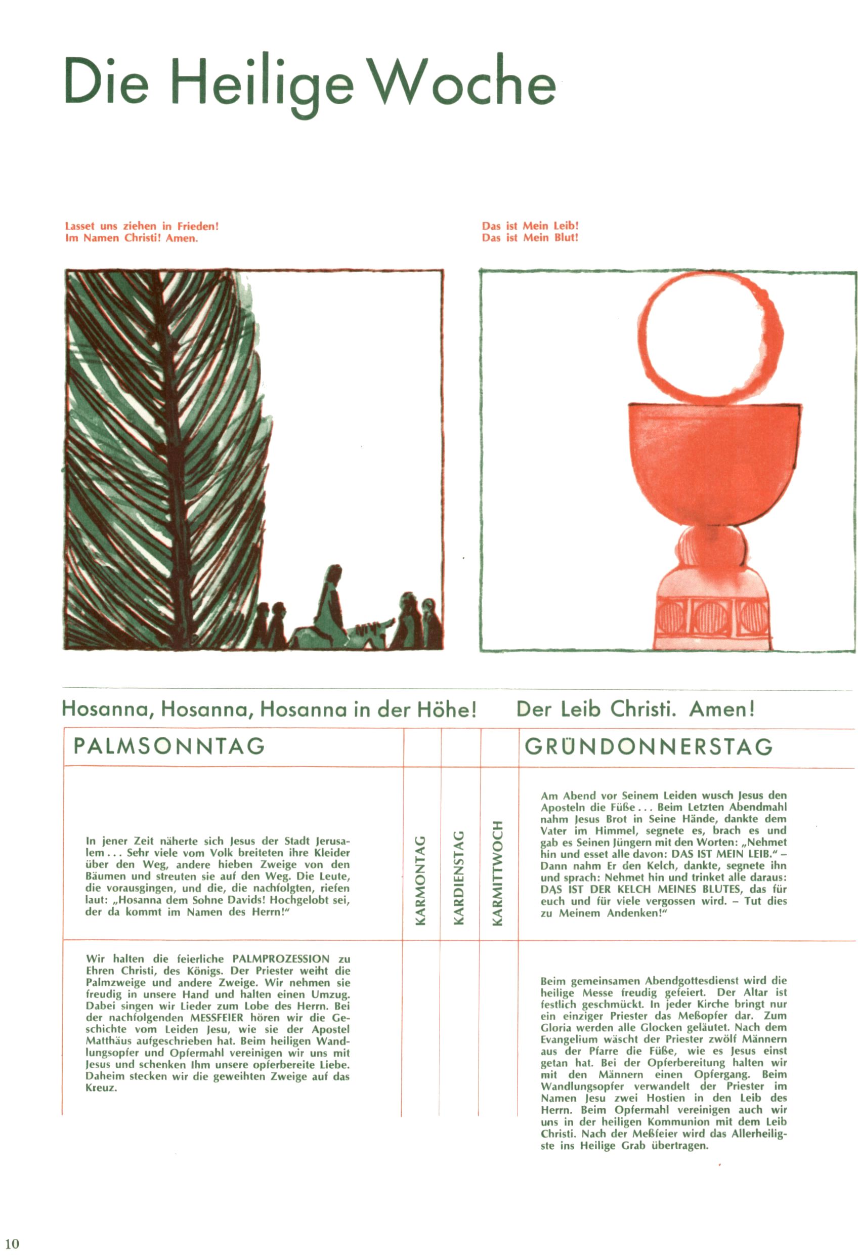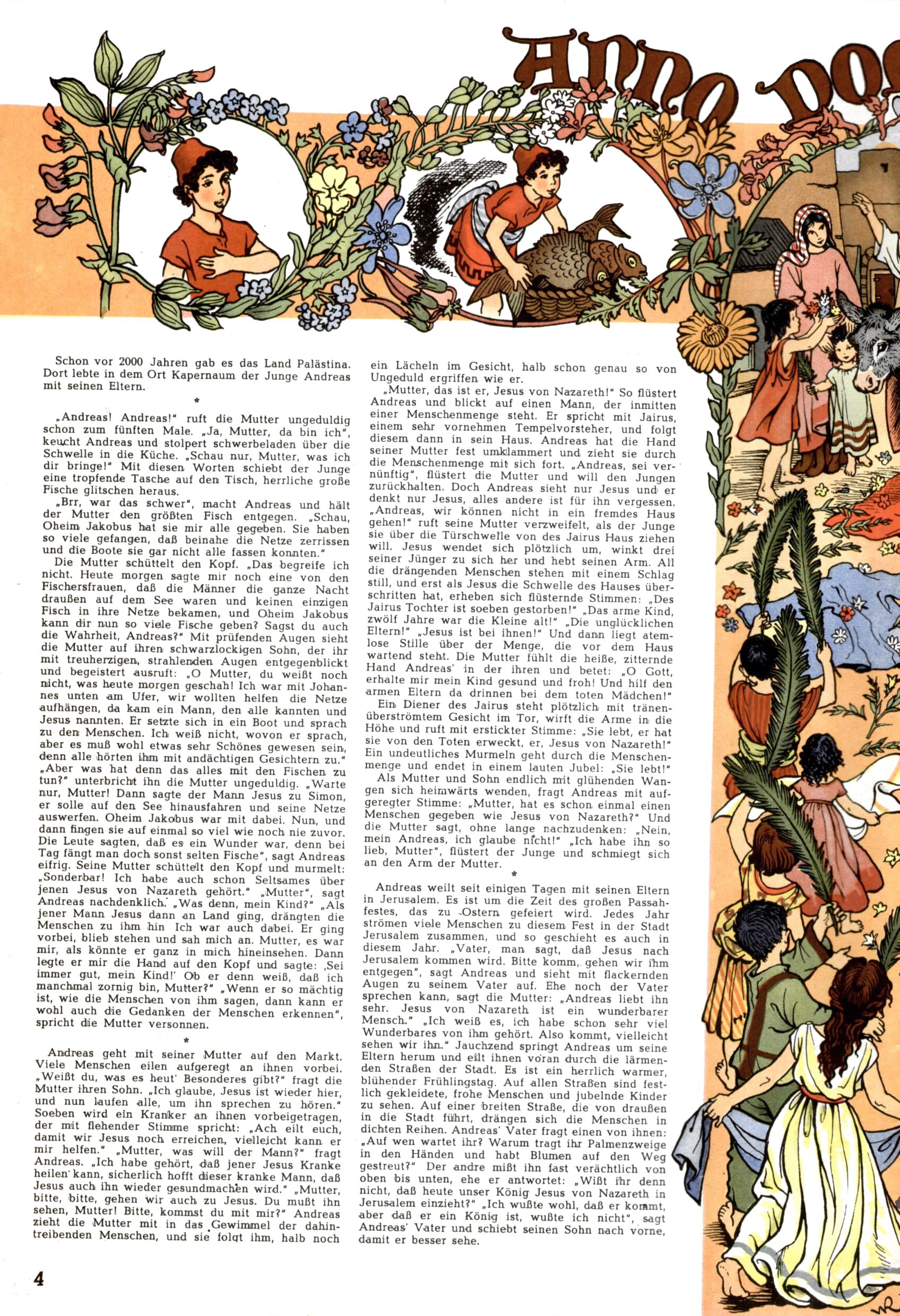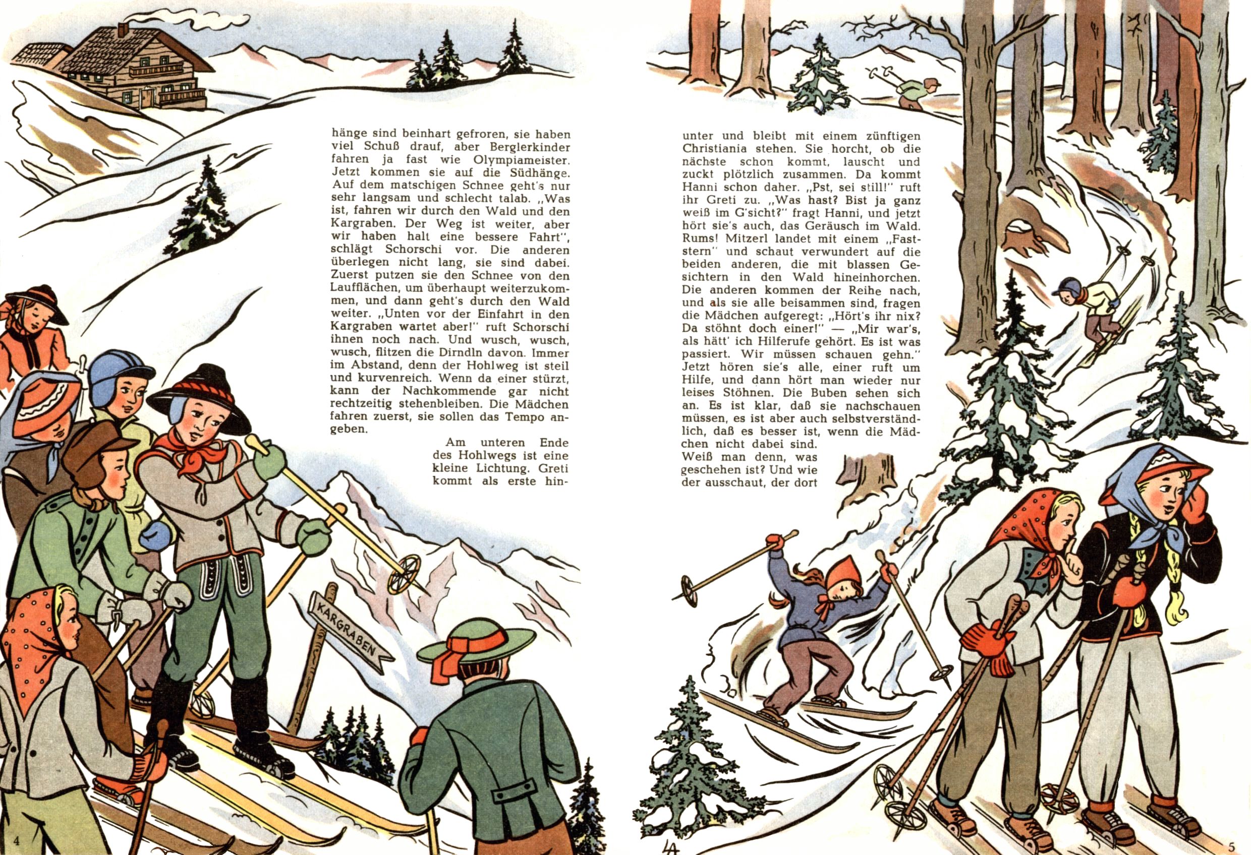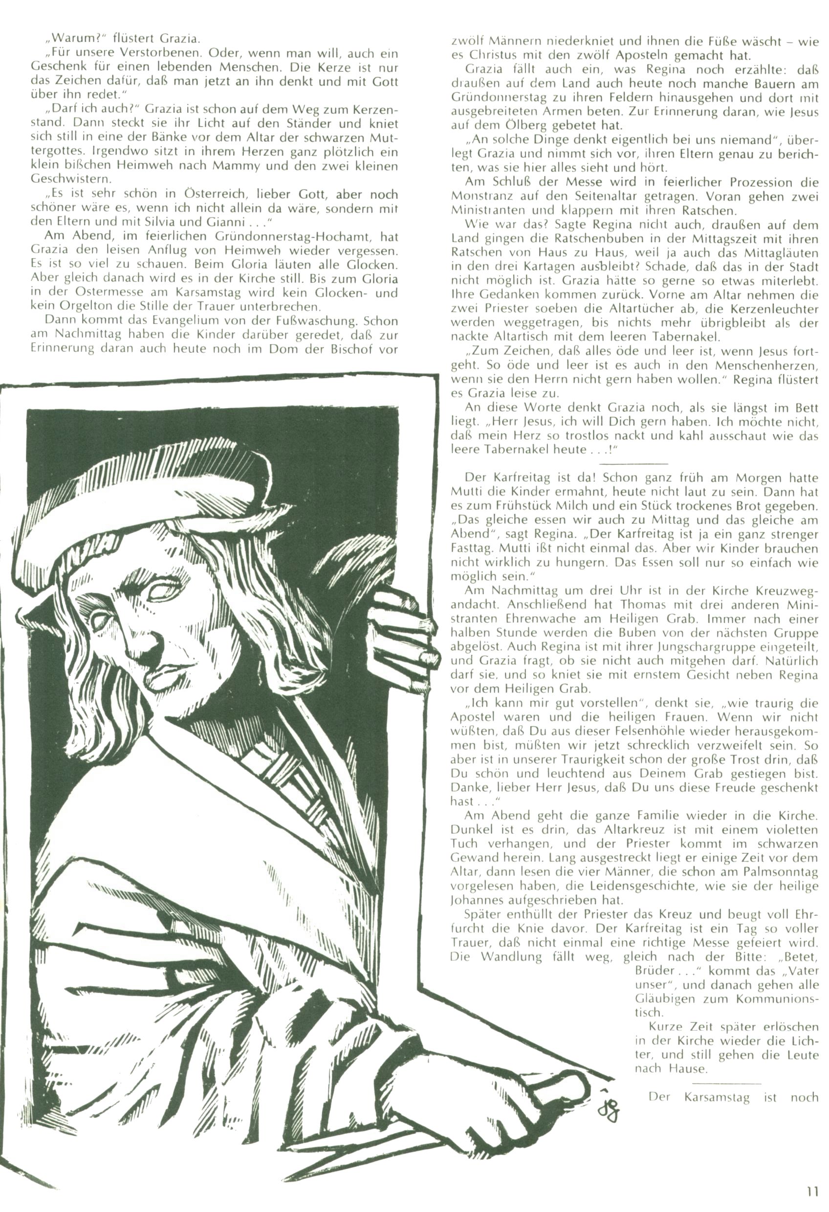Die Wunderwelt im Festtagsgewand In den Sonderheften präsentierte sich die Wunderwelt wahrhaftig in Feiertagsstimmung. Mit wenigen Ausnahmen gab es pro Jahr drei Sonderhefte - zu Weihnachten bzw. im Advent, zu Ostern und in den Ferien im Sommer. Experimente mit Faschings- und Muttertagsheften hatten sich nicht bewährt. Selbst als es die Einzelhefte in der Krisensituation nach 1967 nicht mehr gab, wurde die Wunderwelt-Zeitung im Layout der Sonderhefte fortgesetzt: Zunächst mit 3 bis 5 und ab 1971 immerhin wieder mit 10-12 Heften pro Jahr. Die Weihnachts-, Oster- und Ferienhefte hatten naturgemäß verschiedene Schwerpunkte. Während im Sommer Spielen und Werken mit Material im Vordergrund stand, waren es zu Weihnachten Krippen und Adventhäuser; zu Ostern dann Erzählungen, Hasenstädte und Oster-Basteleien. Das bessere Papier der Sonderhefte erleichterte das Ausschneiden der insgesamt mehr als 1000 Papiermodelle erheblich. Die Sonderhefte waren vergleichsweise aufwändig gestaltet, aber auch ein wichtiges Zusatzgeschäft für die Zeitung. Die Kinder fieberten dem Erscheinungsdatum der jeweiligen Ausgabe nicht selten richtiggehend entgegen. Mit knapp 100 Seiten pro Jahr machten die Sonderhefte von der Menge her zwar nicht einmal ein Viertel aus, trugen aber zum Erscheinungsbild mindestens genauso viel bei wie die Standardhefte. Im Wesentlichen blieb das Layout der Sonderhefte über die Jahre hin unverändert. Mühselig wurde es, als man den Inhalt der Beiträge vorübergehend auf die Seiten gleichmäßig verteilte und die Kinder ermunterte, die Hefte in der Mitte zu zerschneiden. Die eine Hälfte enthielt dann etwa Erzählungen und Bastelvorschläge, der andere Teil der Zeitung Spielanleitungen. Zur übersichtlichkeit trugen diese Layoutversuche jedenfalls in keiner Weise bei und als besonderen Auswuchs gab es eine Zeitlang auf einer Seite oft mehrere Seitennummern, je nachdem, ob sich diese auf das Gesamtheft oder den herauszunehmenden und zu zerschneidenden Heftteil bezogen. Gegen Ende der 1950er Jahre kehrte man wieder zu einem ganzseitigen Layout zurück und Ideen wie ein Spiel-(Heft-im-)Heft gehörten der Vergangenheit an. In den Sonderheften experimentierte man dann noch ab Mitte der 1960er Jahre, als die Verkaufszahlen stark rückläufig waren, mit grundsätzlich neuen Darstellungsformen - weg vom Niedlich-Kitschigen und engagierte neue Grafikerinnen wie Gundi Groh und Hella Soyka. Den erhofften Erfolg brachte dies jedoch nicht mehr. |