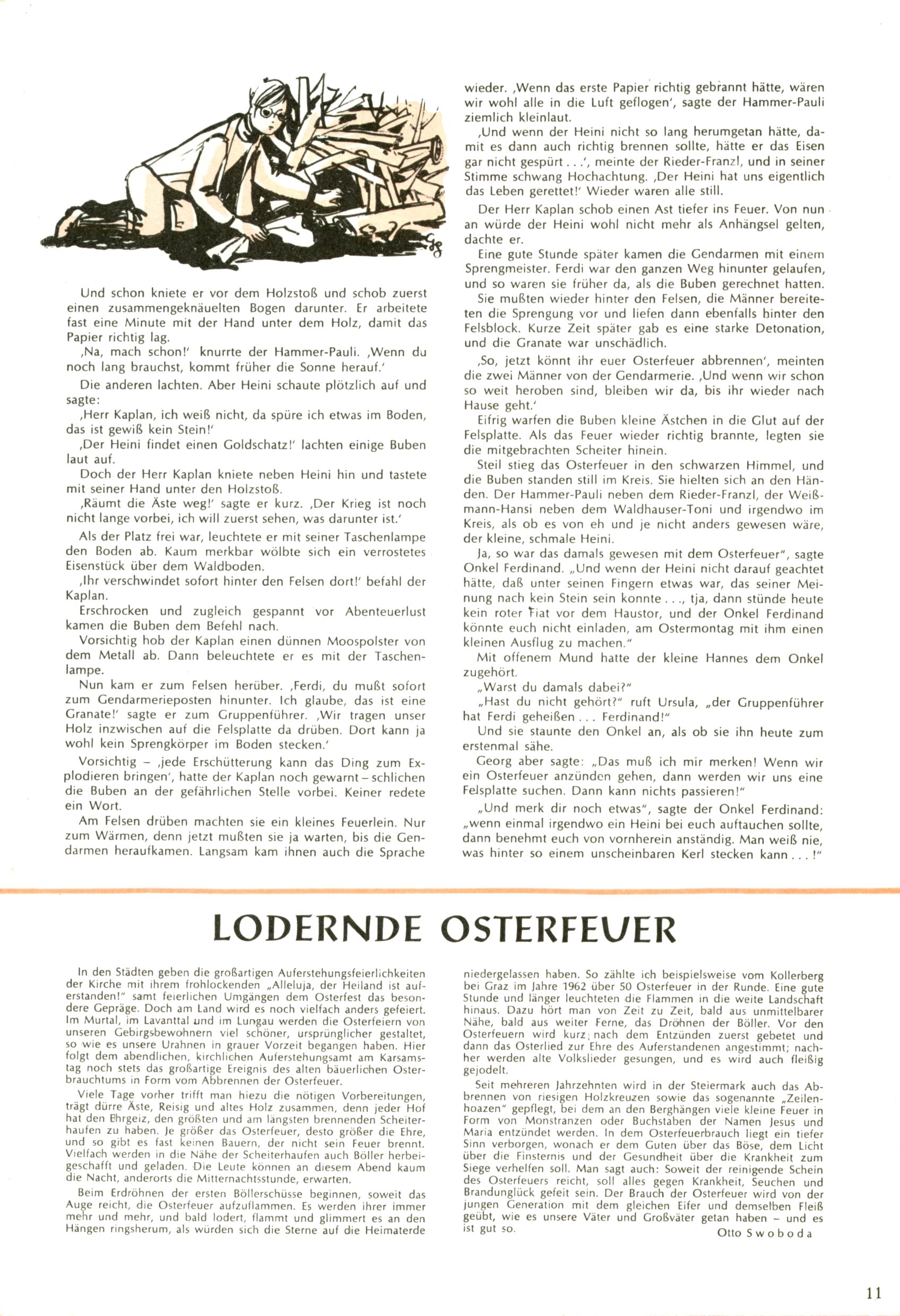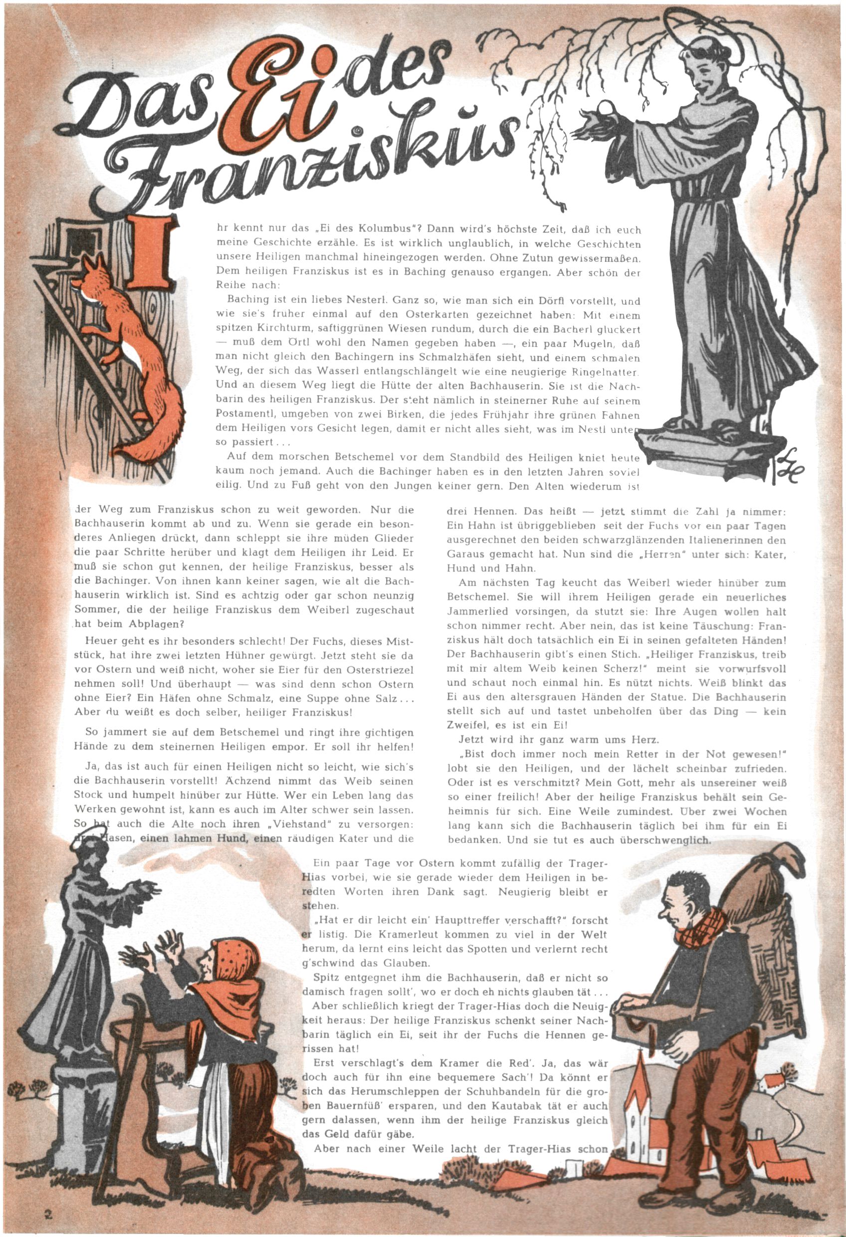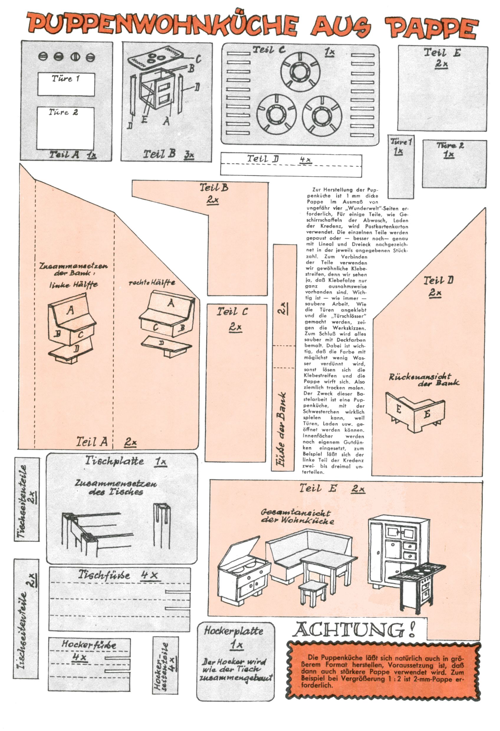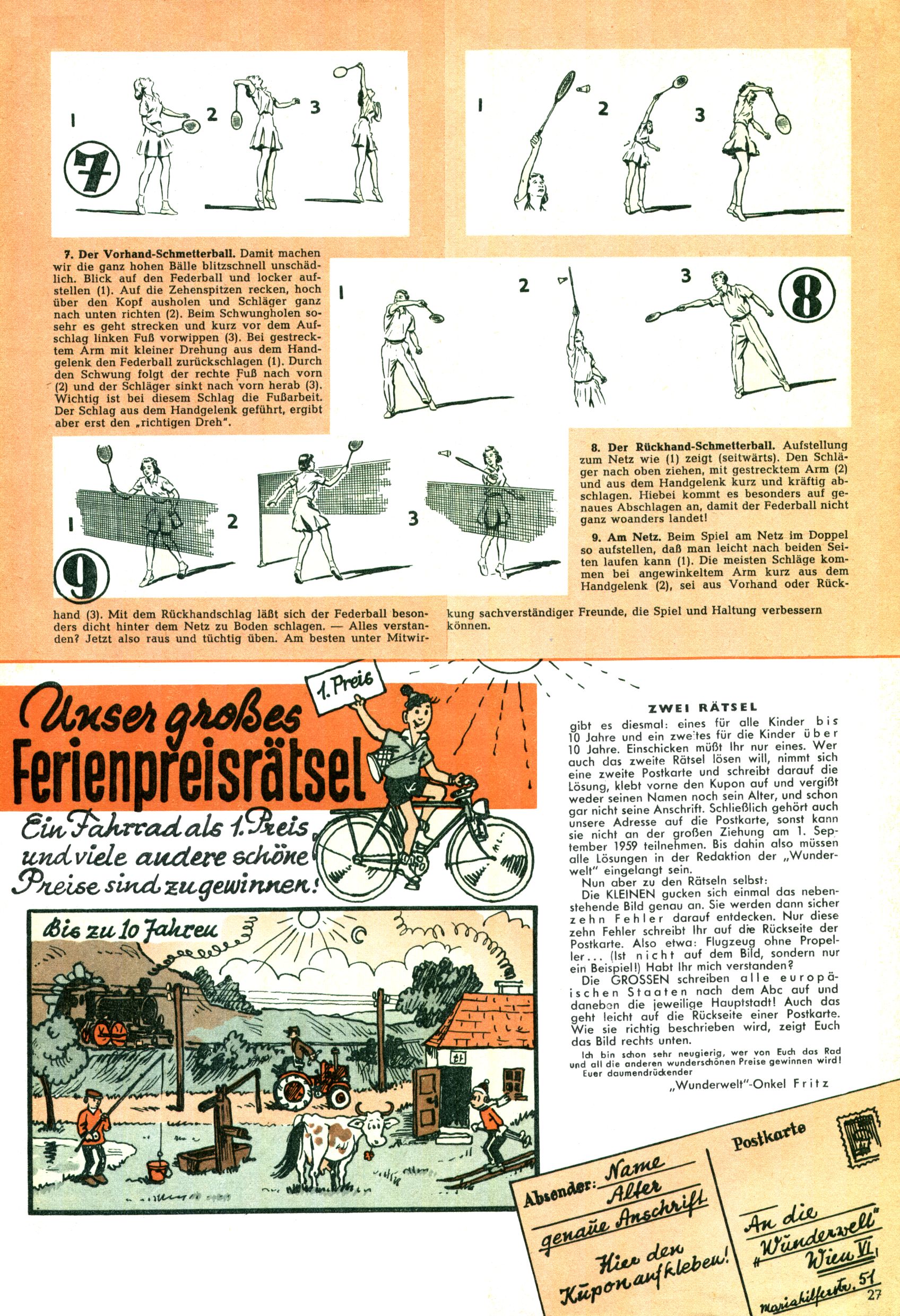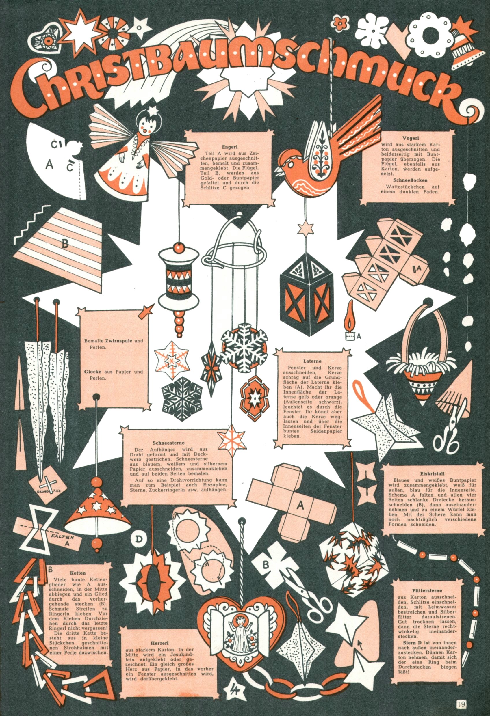 Die Wunderwelt im Festtagsgewand In den Sonderheften präsentierte sich die Wunderwelt wahrhaftig in Feiertagsstimmung. Mit wenigen Ausnahmen gab es pro Jahr drei Sonderhefte - zu Weihnachten bzw. im Advent, zu Ostern und in den Ferien im Sommer. Experimente mit Faschings- und Muttertagsheften hatten sich nicht bewährt. Selbst als es die Einzelhefte in der Krisensituation nach 1967 nicht mehr gab, wurde die Wunderwelt-Zeitung im Layout der Sonderhefte fortgesetzt: Zunächst mit 3 bis 5 und ab 1971 immerhin wieder mit 10-12 Heften pro Jahr. Die Weihnachts-, Oster- und Ferienhefte hatten naturgemäß verschiedene Schwerpunkte. Während im Sommer Spielen und Werken mit Material im Vordergrund stand, waren es zu Weihnachten Krippen und Adventhäuser; zu Ostern dann Erzählungen, Hasenstädte und Oster-Basteleien. Das bessere Papier der Sonderhefte erleichterte das Ausschneiden der insgesamt mehr als 1000 Papiermodelle erheblich. Die Sonderhefte waren vergleichsweise aufwändig gestaltet, aber auch ein wichtiges Zusatzgeschäft für die Zeitung. Die Kinder fieberten dem Erscheinungsdatum der jeweiligen Ausgabe nicht selten richtiggehend entgegen. Mit knapp 100 Seiten pro Jahr machten die Sonderhefte von der Menge her zwar nicht einmal ein Viertel aus, trugen aber zum Erscheinungsbild mindestens genauso viel bei wie die Standardhefte. Im Wesentlichen blieb das Layout der Sonderhefte über die Jahre hin unverändert. Mühselig wurde es, als man den Inhalt der Beiträge vorübergehend auf die Seiten gleichmäßig verteilte und die Kinder ermunterte, die Hefte in der Mitte zu zerschneiden. Die eine Hälfte enthielt dann etwa Erzählungen und Bastelvorschläge, der andere Teil der Zeitung Spielanleitungen. Zur übersichtlichkeit trugen diese Layoutversuche jedenfalls in keiner Weise bei und als besonderen Auswuchs gab es eine Zeitlang auf einer Seite oft mehrere Seitennummern, je nachdem, ob sich diese auf das Gesamtheft oder den herauszunehmenden und zu zerschneidenden Heftteil bezogen. Gegen Ende der 1950er Jahre kehrte man wieder zu einem ganzseitigen Layout zurück und Ideen wie ein Spiel-(Heft-im-)Heft gehörten der Vergangenheit an. In den Sonderheften experimentierte man dann noch ab Mitte der 1960er Jahre, als die Verkaufszahlen stark rückläufig waren, mit grundsätzlich neuen Darstellungsformen - weg vom Niedlich-Kitschigen und engagierte neue Grafikerinnen wie Gundi Groh und Hella Soyka. Den erhofften Erfolg brachte dies jedoch nicht mehr. |