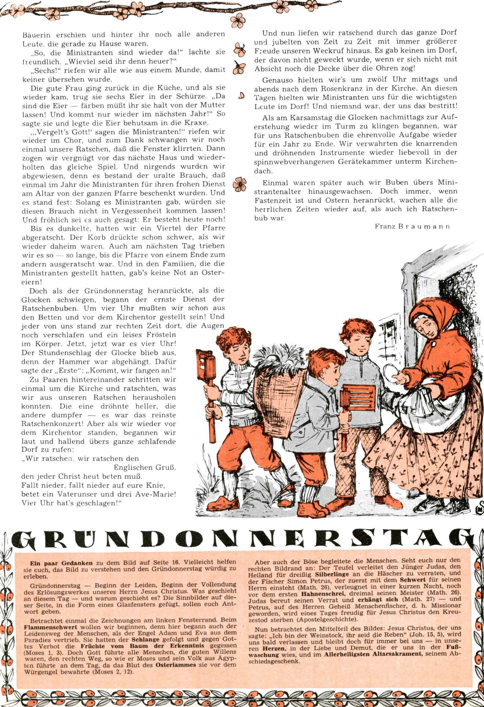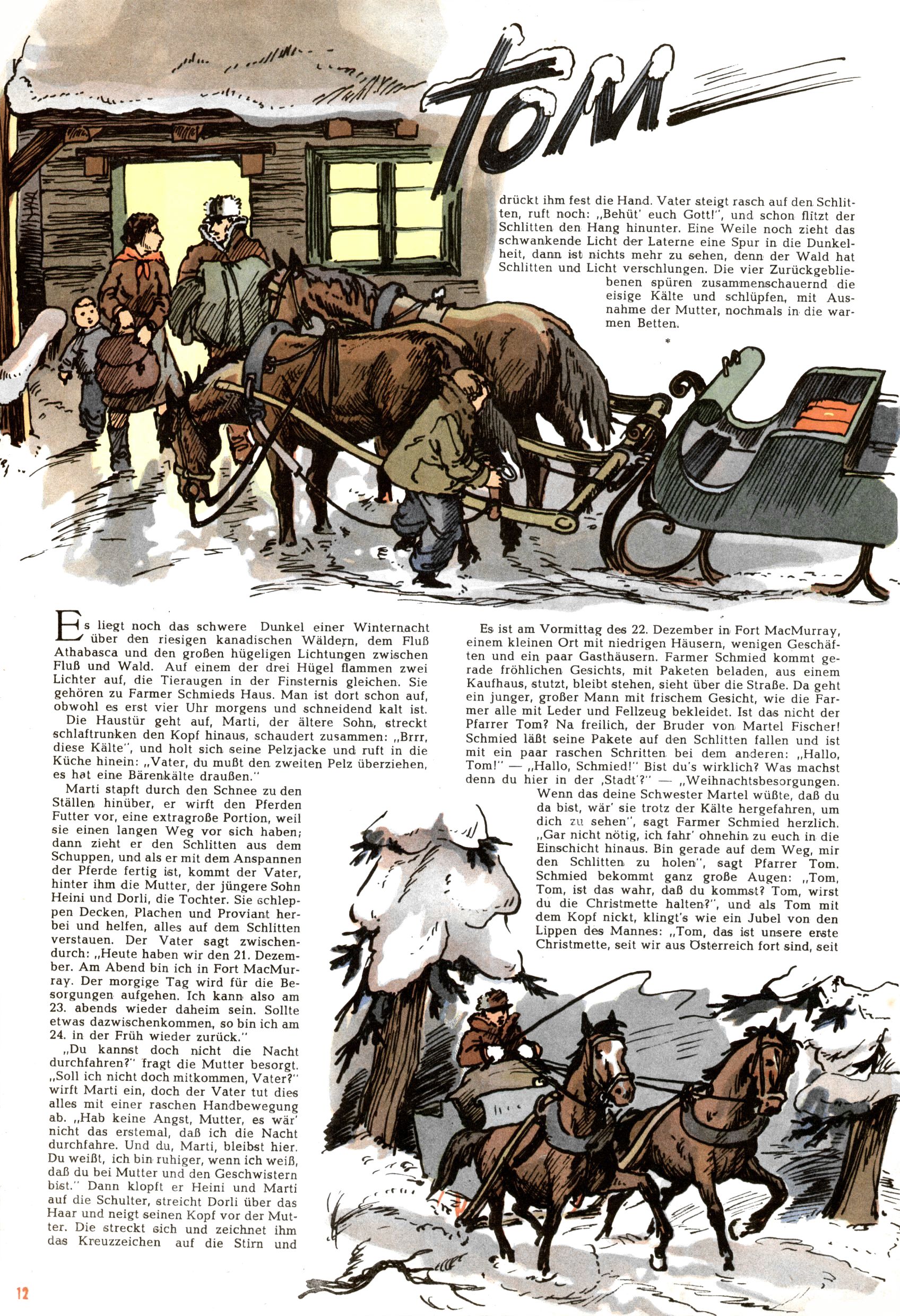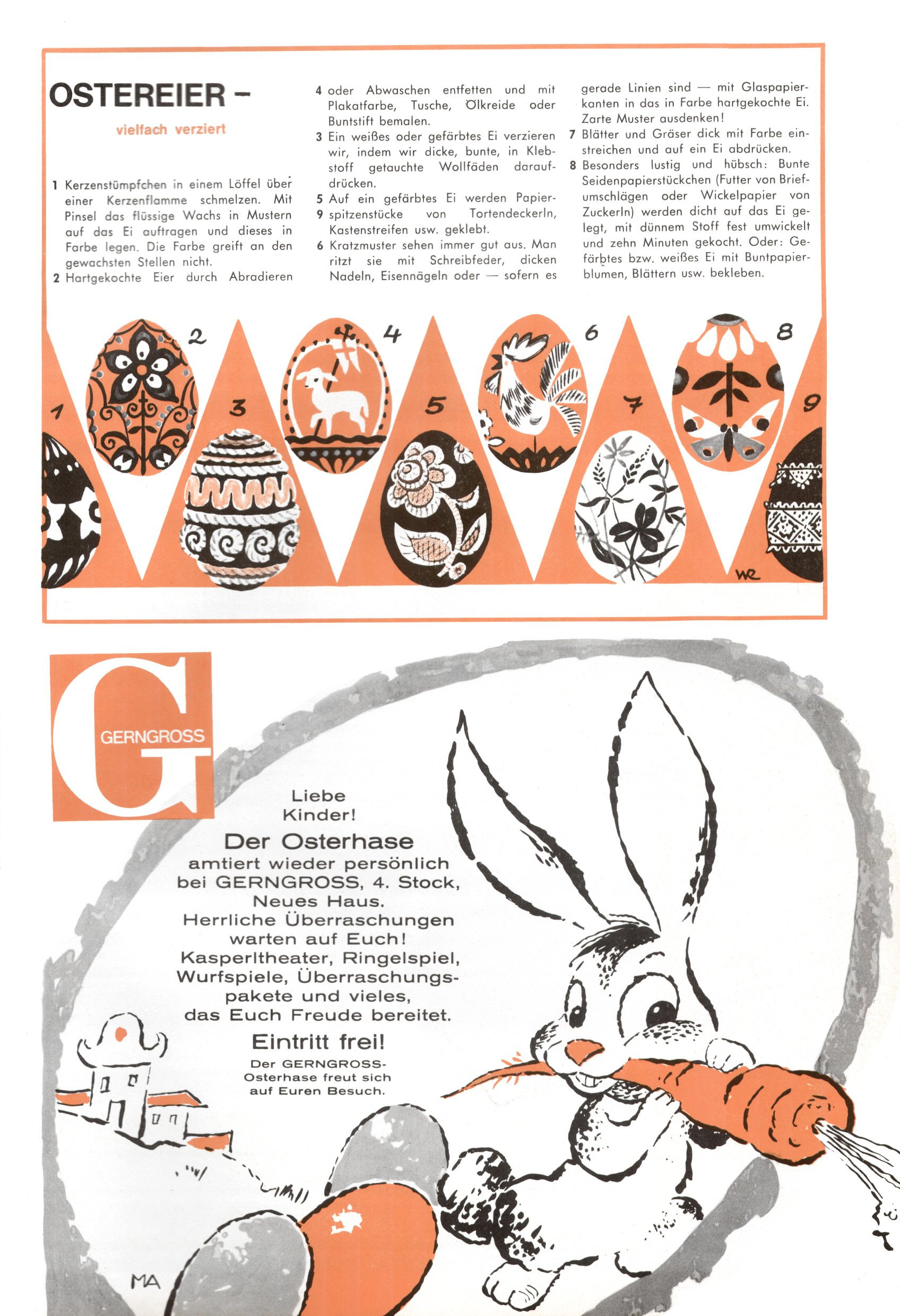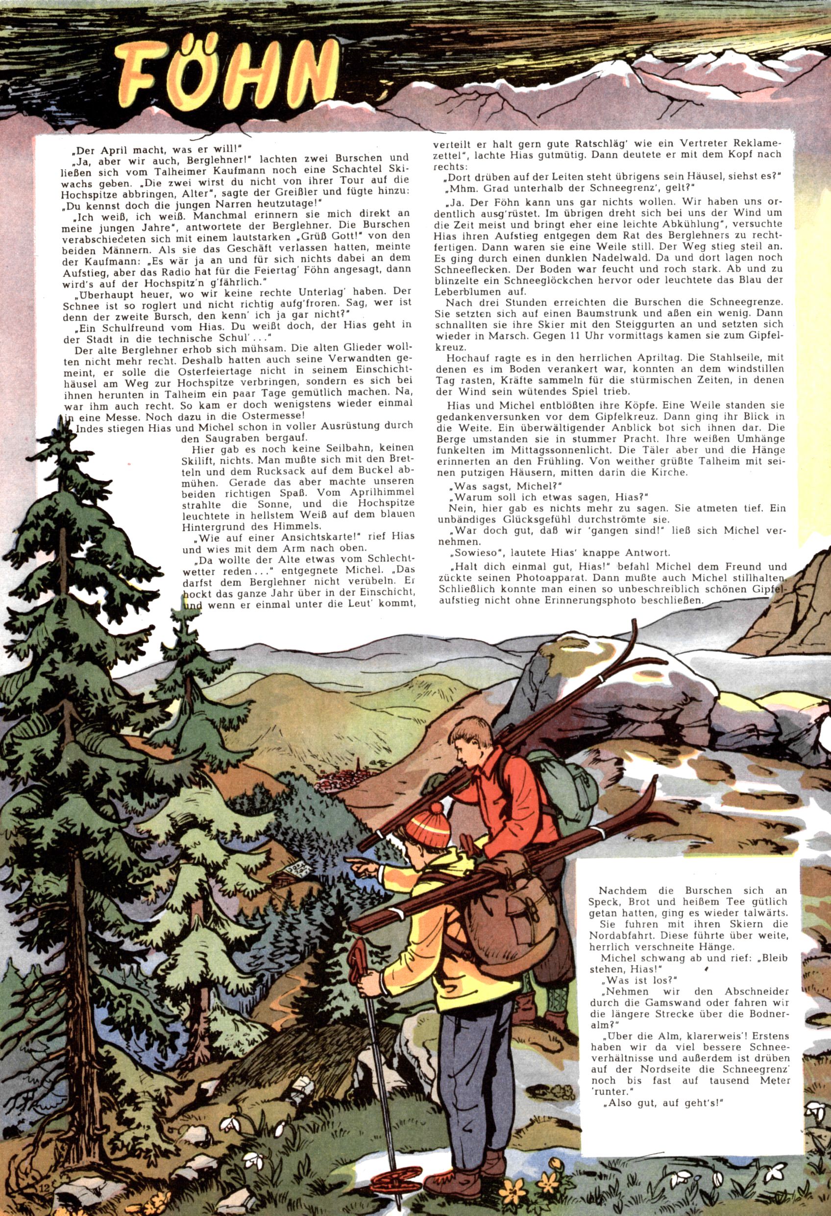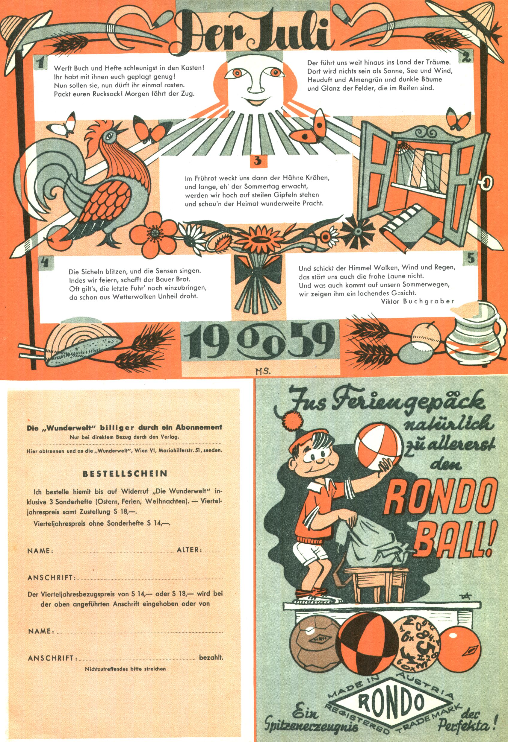 Die Wunderwelt im Festtagsgewand In den Sonderheften präsentierte sich die Wunderwelt wahrhaftig in Feiertagsstimmung. Mit wenigen Ausnahmen gab es pro Jahr drei Sonderhefte - zu Weihnachten bzw. im Advent, zu Ostern und in den Ferien im Sommer. Experimente mit Faschings- und Muttertagsheften hatten sich nicht bewährt. Selbst als es die Einzelhefte in der Krisensituation nach 1967 nicht mehr gab, wurde die Wunderwelt-Zeitung im Layout der Sonderhefte fortgesetzt: Zunächst mit 3 bis 5 und ab 1971 immerhin wieder mit 10-12 Heften pro Jahr. Die Weihnachts-, Oster- und Ferienhefte hatten naturgemäß verschiedene Schwerpunkte. Während im Sommer Spielen und Werken mit Material im Vordergrund stand, waren es zu Weihnachten Krippen und Adventhäuser; zu Ostern dann Erzählungen, Hasenstädte und Oster-Basteleien. Das bessere Papier der Sonderhefte erleichterte das Ausschneiden der insgesamt mehr als 1000 Papiermodelle erheblich. Die Sonderhefte waren vergleichsweise aufwändig gestaltet, aber auch ein wichtiges Zusatzgeschäft für die Zeitung. Die Kinder fieberten dem Erscheinungsdatum der jeweiligen Ausgabe nicht selten richtiggehend entgegen. Mit knapp 100 Seiten pro Jahr machten die Sonderhefte von der Menge her zwar nicht einmal ein Viertel aus, trugen aber zum Erscheinungsbild mindestens genauso viel bei wie die Standardhefte. Im Wesentlichen blieb das Layout der Sonderhefte über die Jahre hin unverändert. Mühselig wurde es, als man den Inhalt der Beiträge vorübergehend auf die Seiten gleichmäßig verteilte und die Kinder ermunterte, die Hefte in der Mitte zu zerschneiden. Die eine Hälfte enthielt dann etwa Erzählungen und Bastelvorschläge, der andere Teil der Zeitung Spielanleitungen. Zur übersichtlichkeit trugen diese Layoutversuche jedenfalls in keiner Weise bei und als besonderen Auswuchs gab es eine Zeitlang auf einer Seite oft mehrere Seitennummern, je nachdem, ob sich diese auf das Gesamtheft oder den herauszunehmenden und zu zerschneidenden Heftteil bezogen. Gegen Ende der 1950er Jahre kehrte man wieder zu einem ganzseitigen Layout zurück und Ideen wie ein Spiel-(Heft-im-)Heft gehörten der Vergangenheit an. In den Sonderheften experimentierte man dann noch ab Mitte der 1960er Jahre, als die Verkaufszahlen stark rückläufig waren, mit grundsätzlich neuen Darstellungsformen - weg vom Niedlich-Kitschigen und engagierte neue Grafikerinnen wie Gundi Groh und Hella Soyka. Den erhofften Erfolg brachte dies jedoch nicht mehr. |