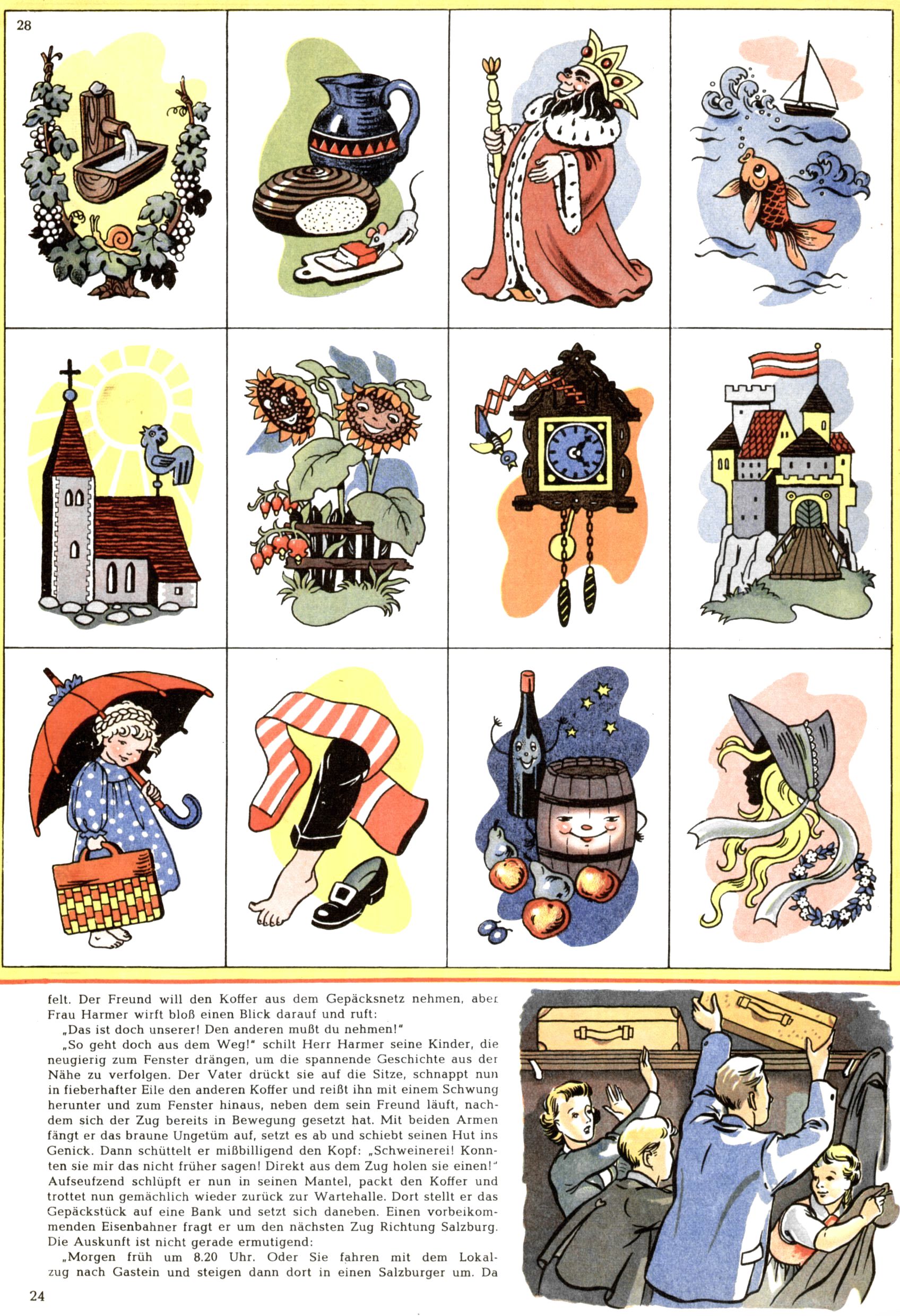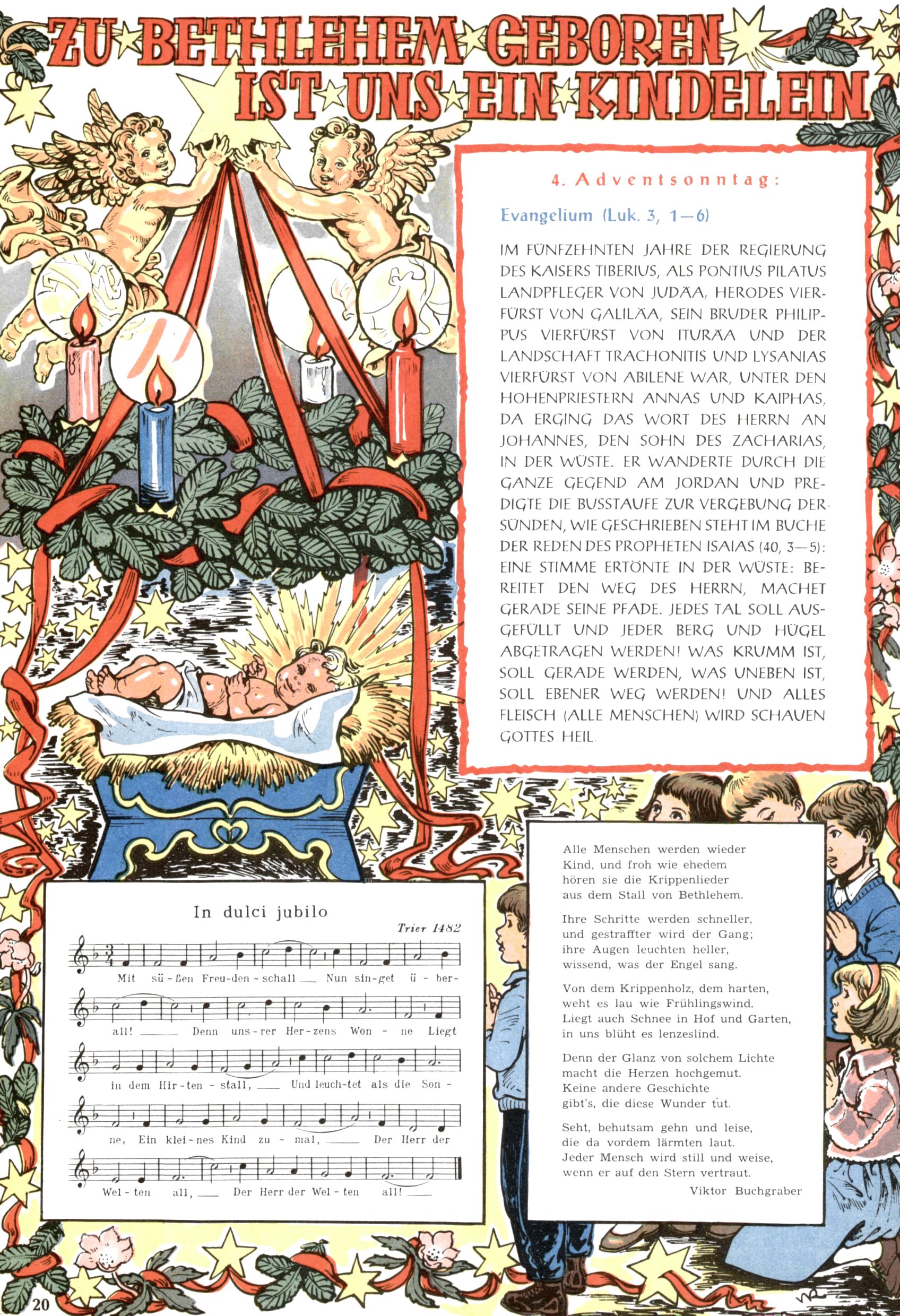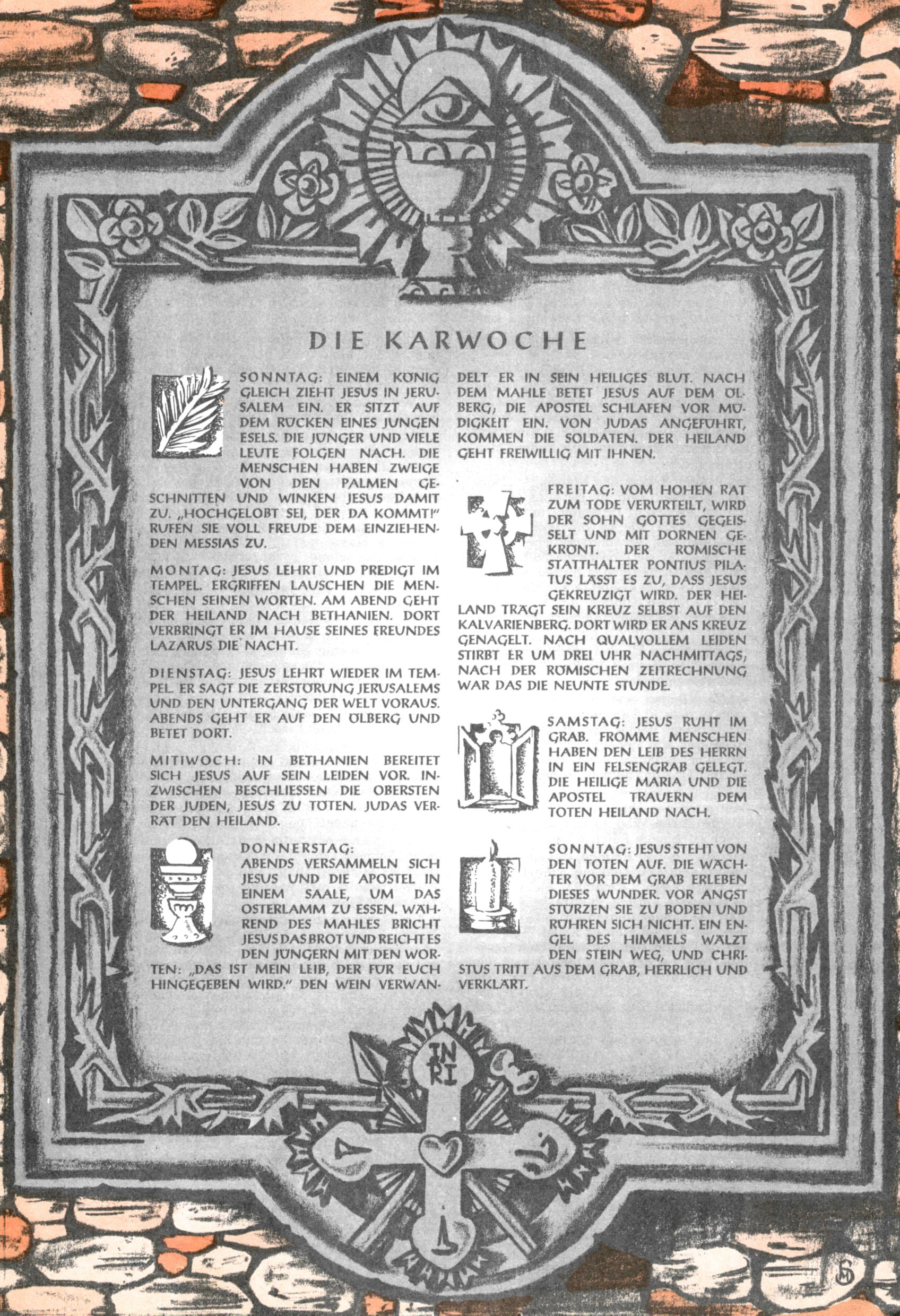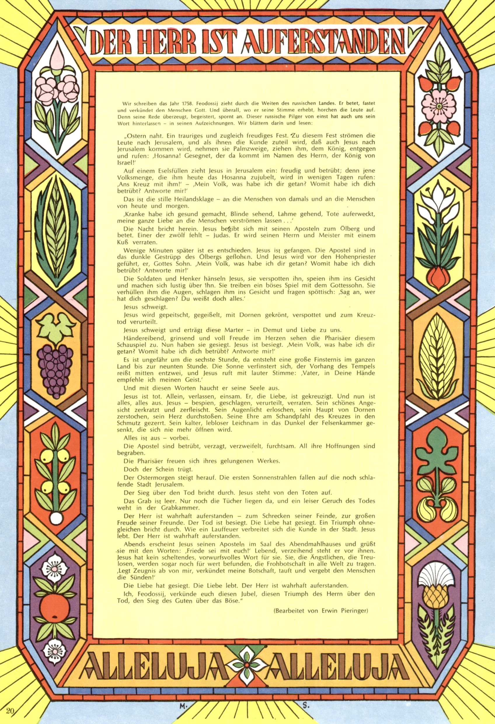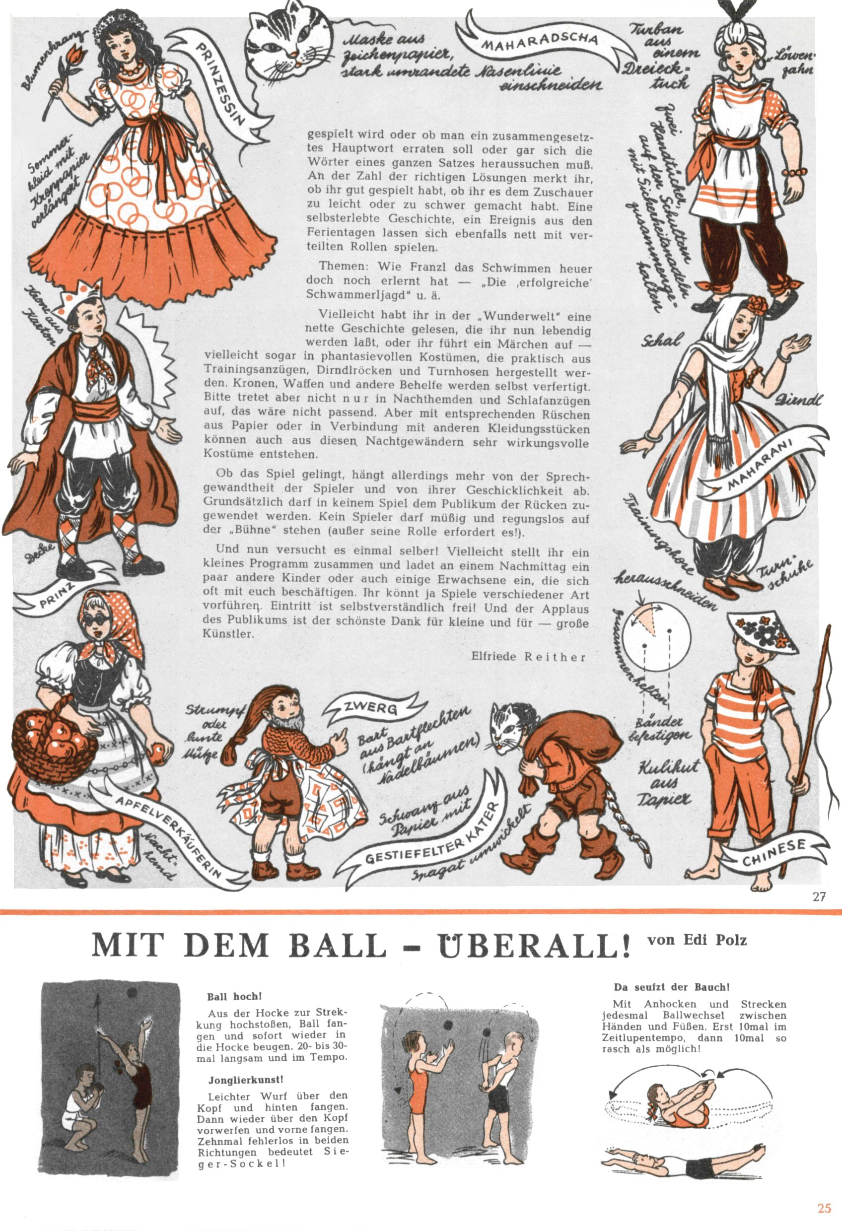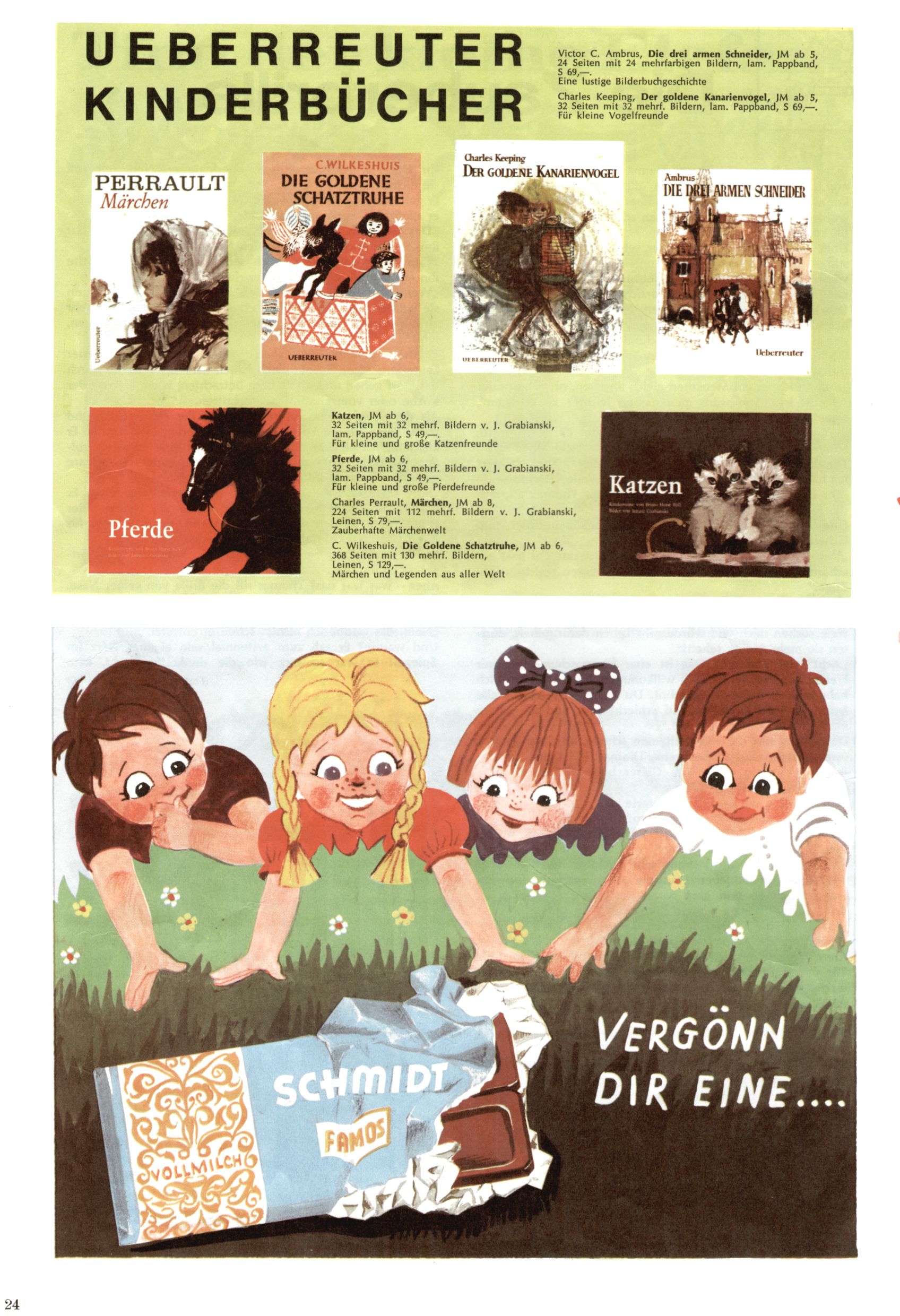 Die Wunderwelt im Festtagsgewand In den Sonderheften präsentierte sich die Wunderwelt wahrhaftig in Feiertagsstimmung. Mit wenigen Ausnahmen gab es pro Jahr drei Sonderhefte - zu Weihnachten bzw. im Advent, zu Ostern und in den Ferien im Sommer. Experimente mit Faschings- und Muttertagsheften hatten sich nicht bewährt. Selbst als es die Einzelhefte in der Krisensituation nach 1967 nicht mehr gab, wurde die Wunderwelt-Zeitung im Layout der Sonderhefte fortgesetzt: Zunächst mit 3 bis 5 und ab 1971 immerhin wieder mit 10-12 Heften pro Jahr. Die Weihnachts-, Oster- und Ferienhefte hatten naturgemäß verschiedene Schwerpunkte. Während im Sommer Spielen und Werken mit Material im Vordergrund stand, waren es zu Weihnachten Krippen und Adventhäuser; zu Ostern dann Erzählungen, Hasenstädte und Oster-Basteleien. Das bessere Papier der Sonderhefte erleichterte das Ausschneiden der insgesamt mehr als 1000 Papiermodelle erheblich. Die Sonderhefte waren vergleichsweise aufwändig gestaltet, aber auch ein wichtiges Zusatzgeschäft für die Zeitung. Die Kinder fieberten dem Erscheinungsdatum der jeweiligen Ausgabe nicht selten richtiggehend entgegen. Mit knapp 100 Seiten pro Jahr machten die Sonderhefte von der Menge her zwar nicht einmal ein Viertel aus, trugen aber zum Erscheinungsbild mindestens genauso viel bei wie die Standardhefte. Im Wesentlichen blieb das Layout der Sonderhefte über die Jahre hin unverändert. Mühselig wurde es, als man den Inhalt der Beiträge vorübergehend auf die Seiten gleichmäßig verteilte und die Kinder ermunterte, die Hefte in der Mitte zu zerschneiden. Die eine Hälfte enthielt dann etwa Erzählungen und Bastelvorschläge, der andere Teil der Zeitung Spielanleitungen. Zur übersichtlichkeit trugen diese Layoutversuche jedenfalls in keiner Weise bei und als besonderen Auswuchs gab es eine Zeitlang auf einer Seite oft mehrere Seitennummern, je nachdem, ob sich diese auf das Gesamtheft oder den herauszunehmenden und zu zerschneidenden Heftteil bezogen. Gegen Ende der 1950er Jahre kehrte man wieder zu einem ganzseitigen Layout zurück und Ideen wie ein Spiel-(Heft-im-)Heft gehörten der Vergangenheit an. In den Sonderheften experimentierte man dann noch ab Mitte der 1960er Jahre, als die Verkaufszahlen stark rückläufig waren, mit grundsätzlich neuen Darstellungsformen - weg vom Niedlich-Kitschigen und engagierte neue Grafikerinnen wie Gundi Groh und Hella Soyka. Den erhofften Erfolg brachte dies jedoch nicht mehr. |