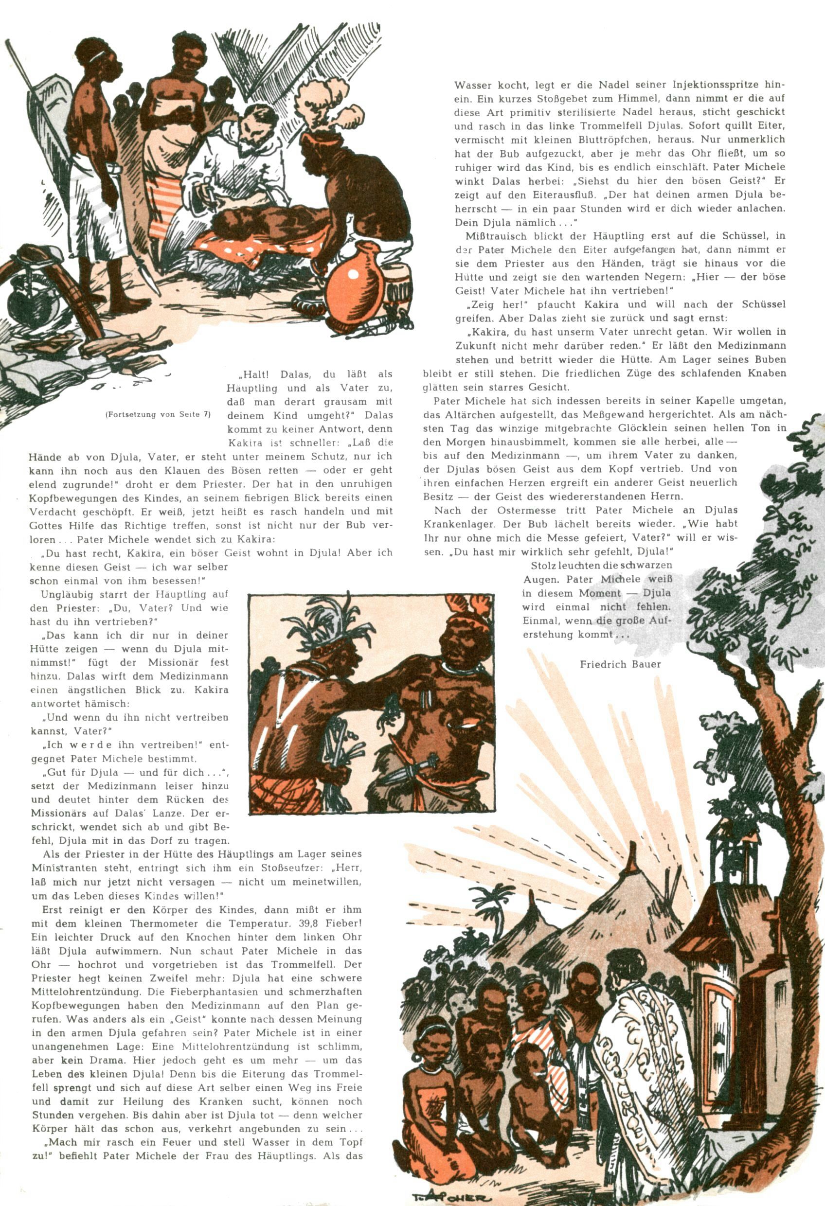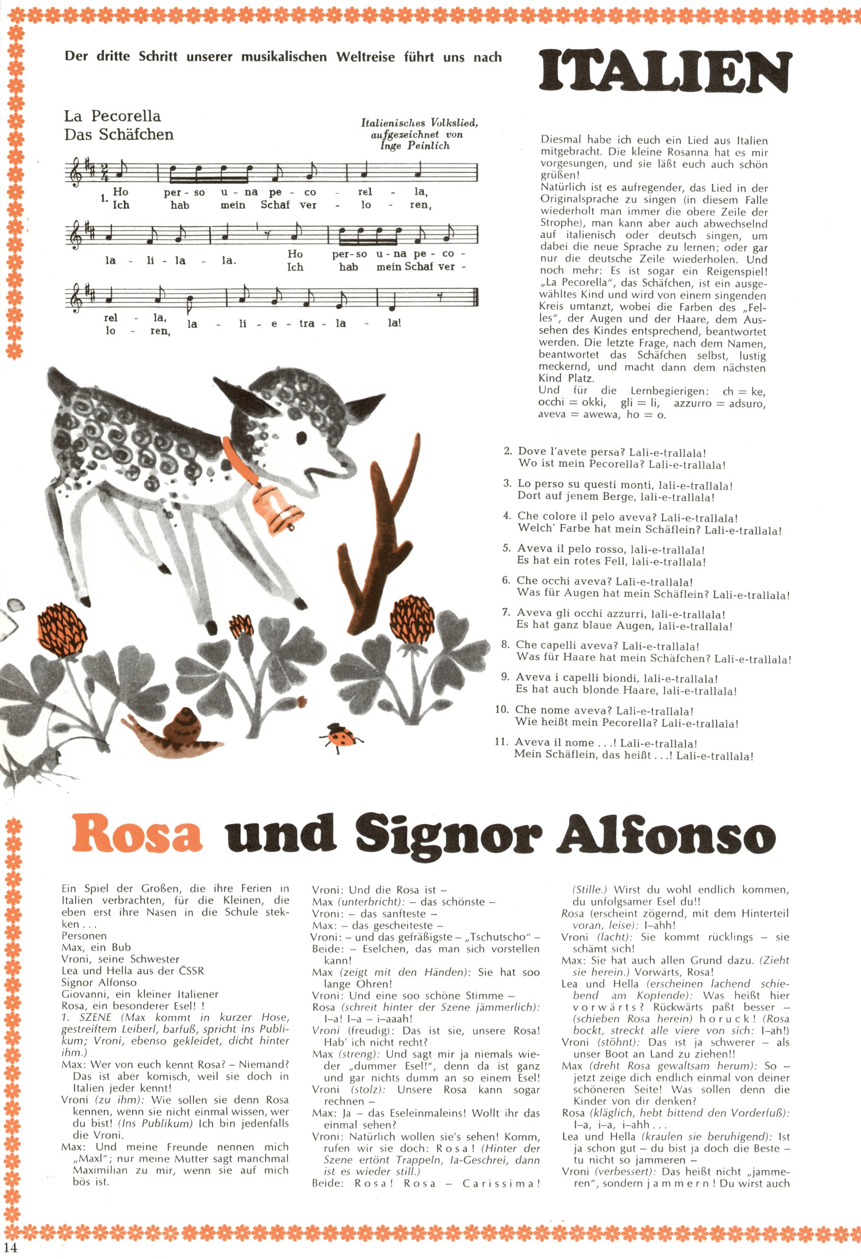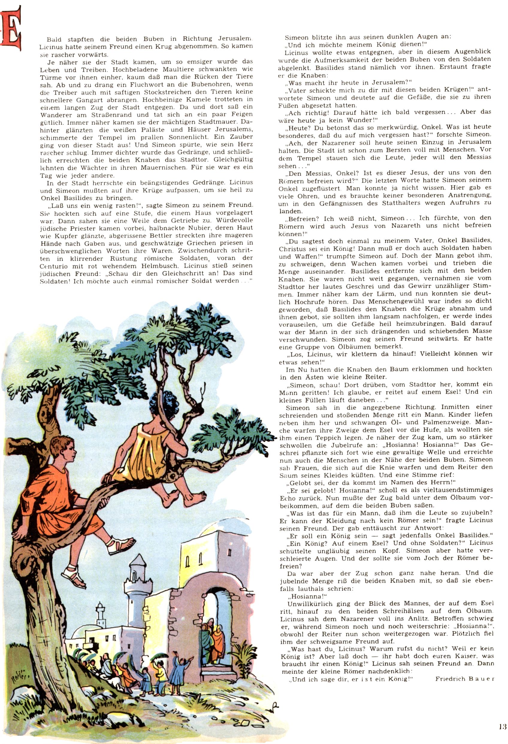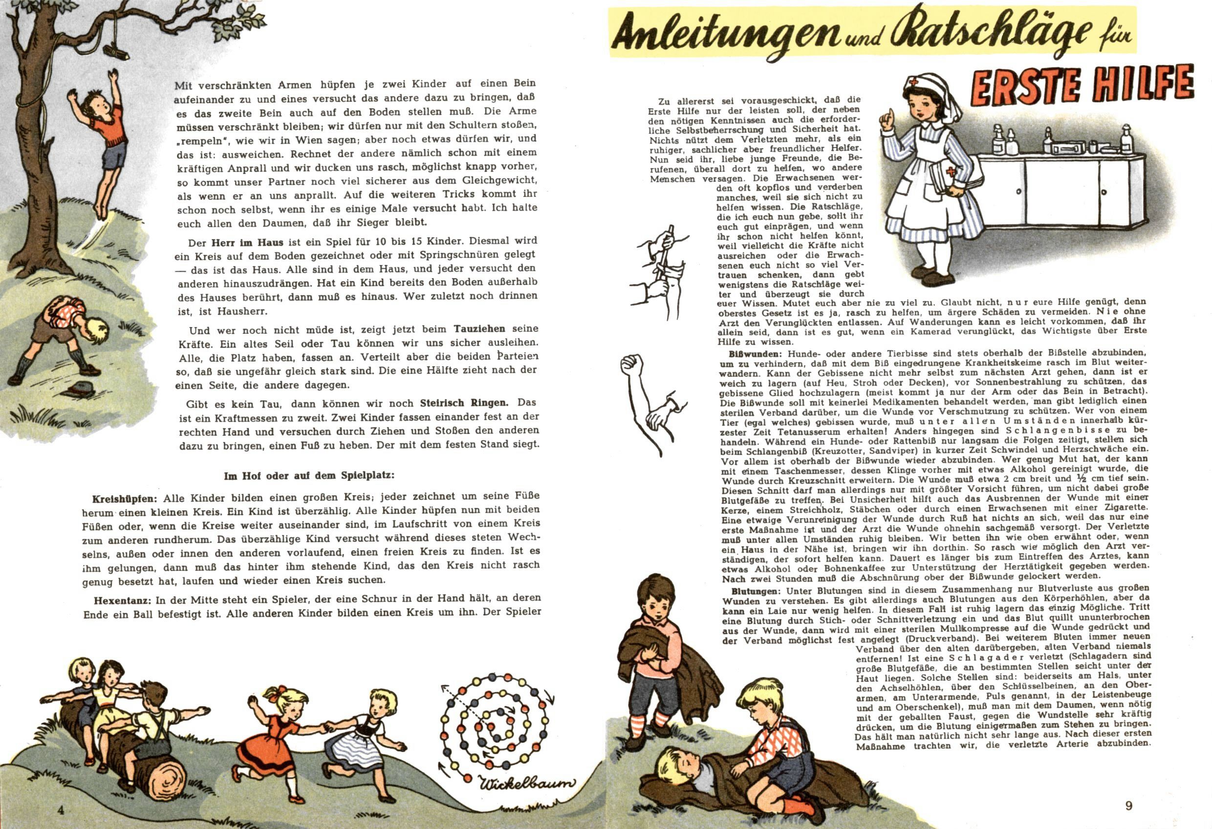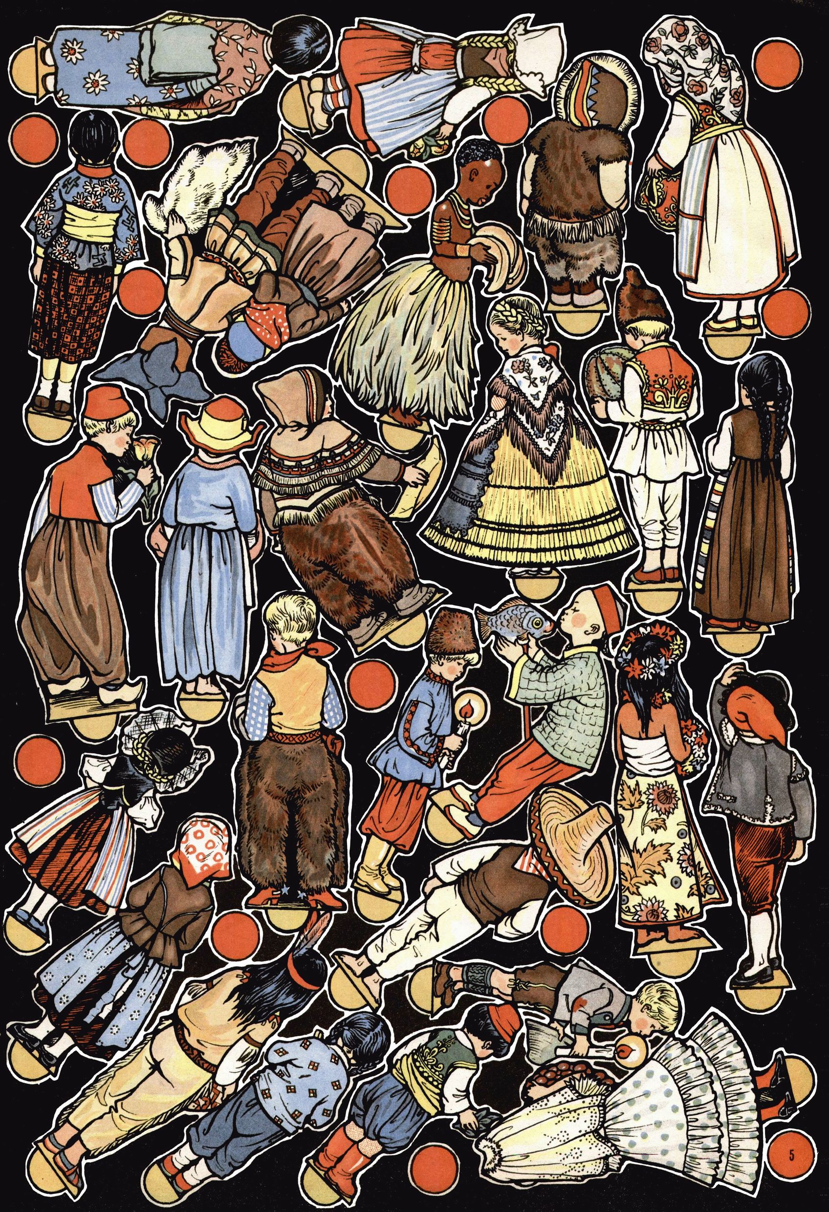 Die Wunderwelt im Festtagsgewand In den Sonderheften präsentierte sich die Wunderwelt wahrhaftig in Feiertagsstimmung. Mit wenigen Ausnahmen gab es pro Jahr drei Sonderhefte - zu Weihnachten bzw. im Advent, zu Ostern und in den Ferien im Sommer. Experimente mit Faschings- und Muttertagsheften hatten sich nicht bewährt. Selbst als es die Einzelhefte in der Krisensituation nach 1967 nicht mehr gab, wurde die Wunderwelt-Zeitung im Layout der Sonderhefte fortgesetzt: Zunächst mit 3 bis 5 und ab 1971 immerhin wieder mit 10-12 Heften pro Jahr. Die Weihnachts-, Oster- und Ferienhefte hatten naturgemäß verschiedene Schwerpunkte. Während im Sommer Spielen und Werken mit Material im Vordergrund stand, waren es zu Weihnachten Krippen und Adventhäuser; zu Ostern dann Erzählungen, Hasenstädte und Oster-Basteleien. Das bessere Papier der Sonderhefte erleichterte das Ausschneiden der insgesamt mehr als 1000 Papiermodelle erheblich. Die Sonderhefte waren vergleichsweise aufwändig gestaltet, aber auch ein wichtiges Zusatzgeschäft für die Zeitung. Die Kinder fieberten dem Erscheinungsdatum der jeweiligen Ausgabe nicht selten richtiggehend entgegen. Mit knapp 100 Seiten pro Jahr machten die Sonderhefte von der Menge her zwar nicht einmal ein Viertel aus, trugen aber zum Erscheinungsbild mindestens genauso viel bei wie die Standardhefte. Im Wesentlichen blieb das Layout der Sonderhefte über die Jahre hin unverändert. Mühselig wurde es, als man den Inhalt der Beiträge vorübergehend auf die Seiten gleichmäßig verteilte und die Kinder ermunterte, die Hefte in der Mitte zu zerschneiden. Die eine Hälfte enthielt dann etwa Erzählungen und Bastelvorschläge, der andere Teil der Zeitung Spielanleitungen. Zur übersichtlichkeit trugen diese Layoutversuche jedenfalls in keiner Weise bei und als besonderen Auswuchs gab es eine Zeitlang auf einer Seite oft mehrere Seitennummern, je nachdem, ob sich diese auf das Gesamtheft oder den herauszunehmenden und zu zerschneidenden Heftteil bezogen. Gegen Ende der 1950er Jahre kehrte man wieder zu einem ganzseitigen Layout zurück und Ideen wie ein Spiel-(Heft-im-)Heft gehörten der Vergangenheit an. In den Sonderheften experimentierte man dann noch ab Mitte der 1960er Jahre, als die Verkaufszahlen stark rückläufig waren, mit grundsätzlich neuen Darstellungsformen - weg vom Niedlich-Kitschigen und engagierte neue Grafikerinnen wie Gundi Groh und Hella Soyka. Den erhofften Erfolg brachte dies jedoch nicht mehr. |