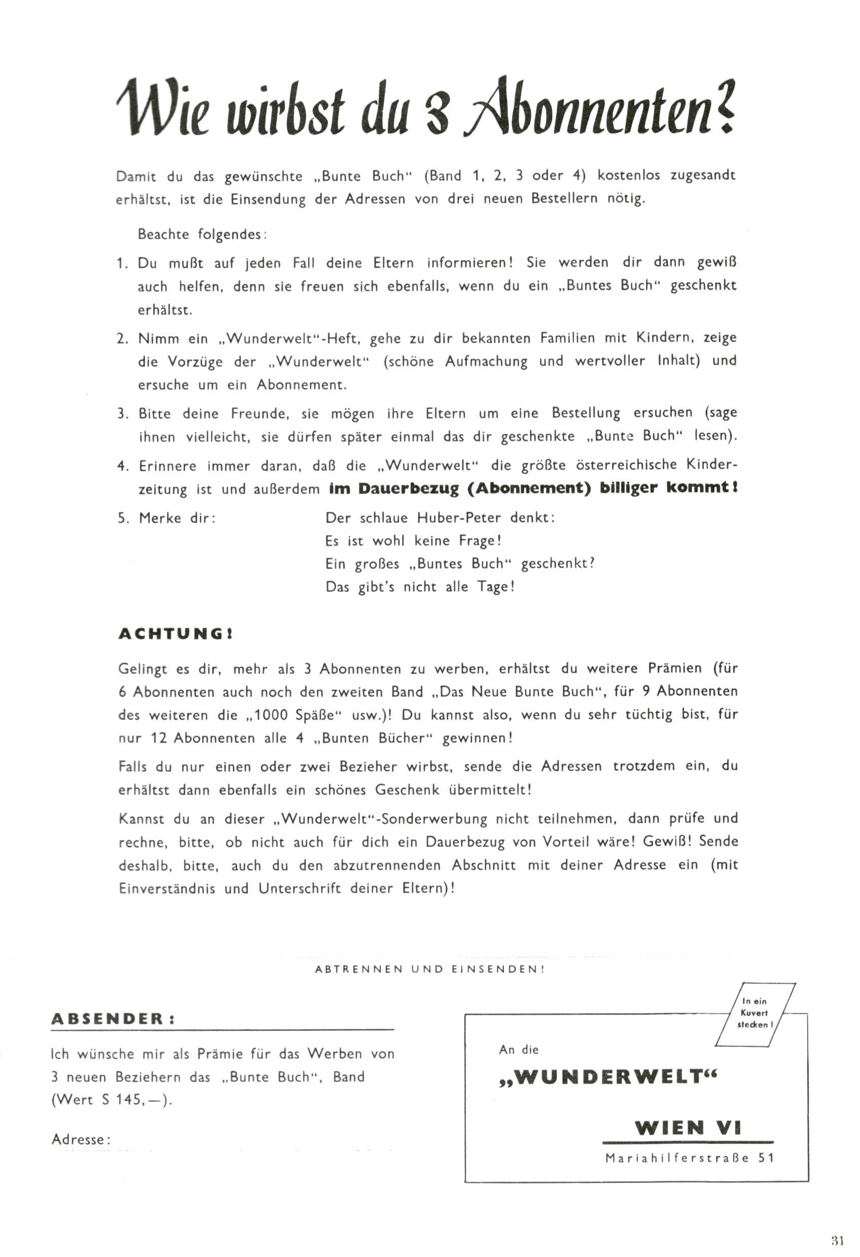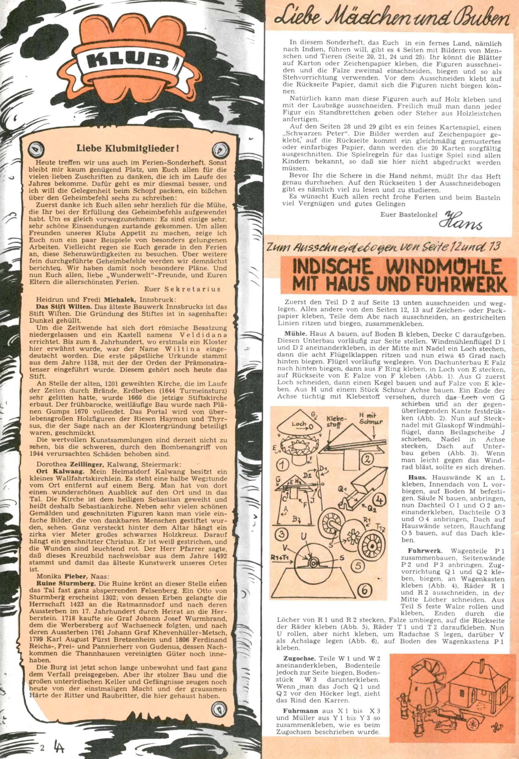 Unsere Ausschneidebogen (HW=Hans Weinhappel) |