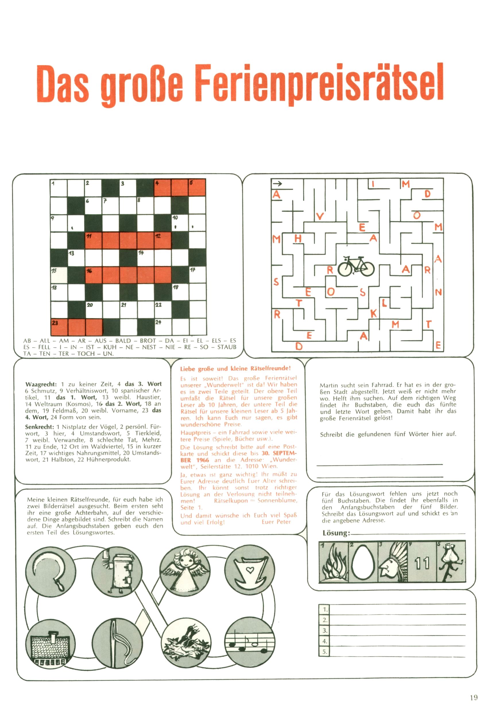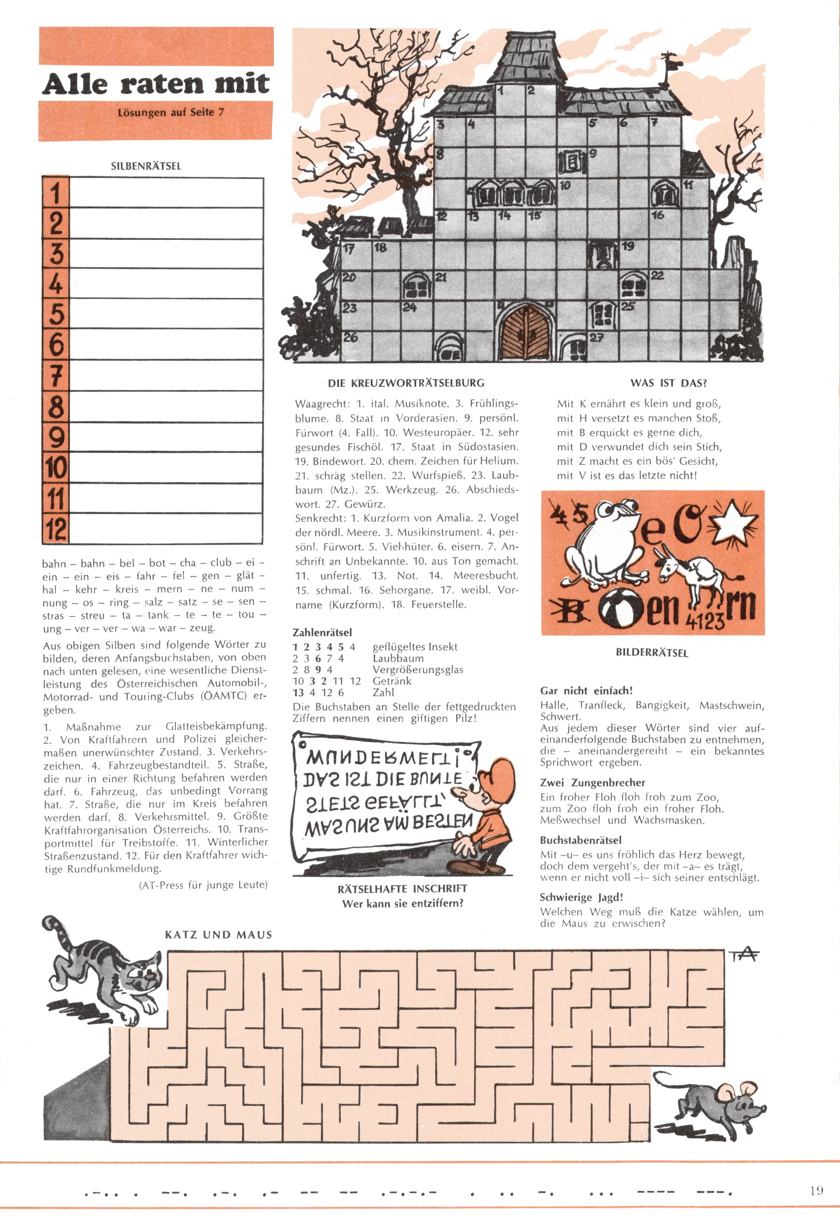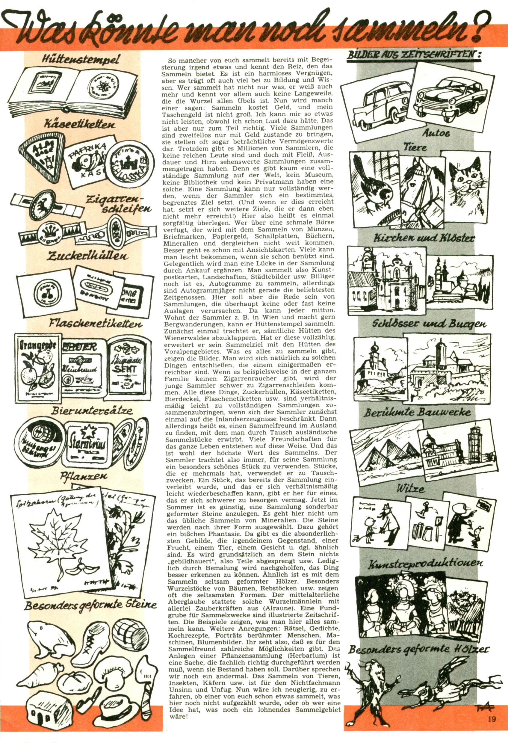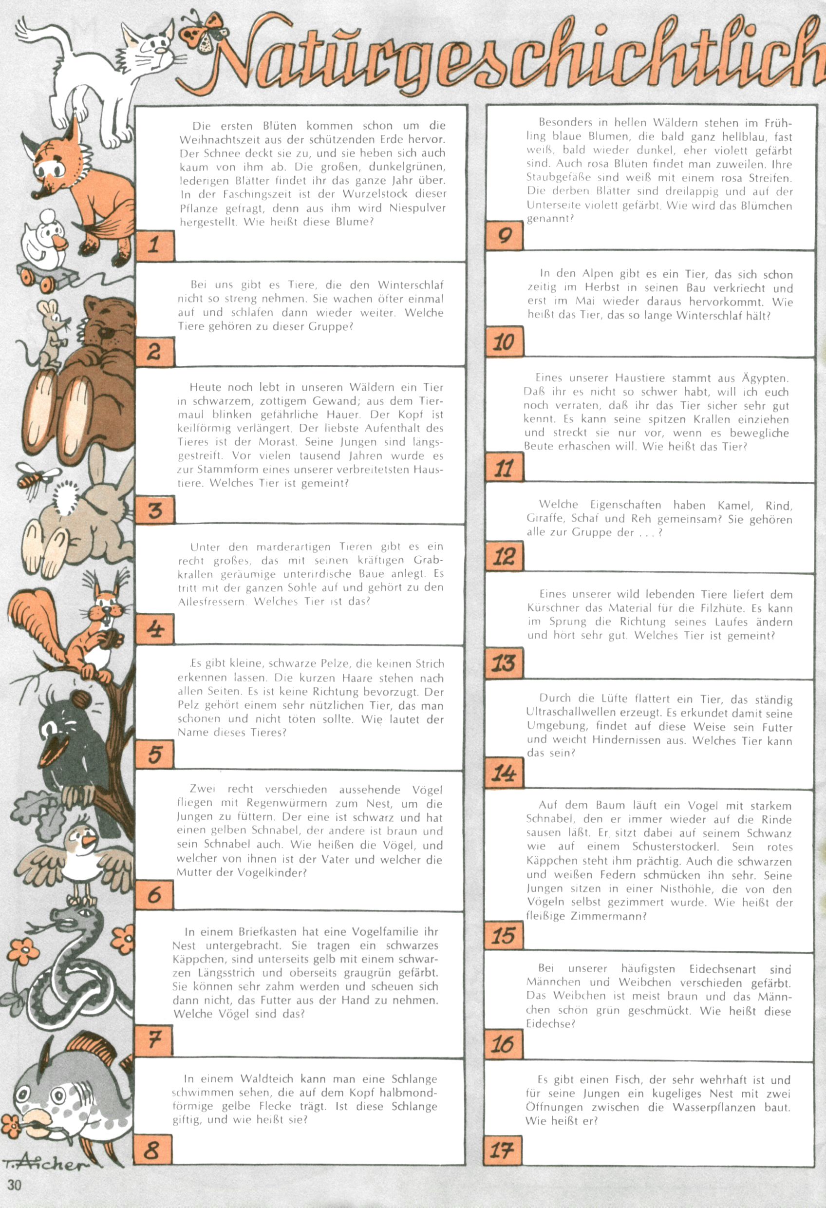 [A]usschneiden | [B]asteln/Handwerken | [C]omic | [E]rzählung/Märchen/Sage | [F]oto/Bild [G]edicht/Lied | [I]nformatives | [N]atur | [R]ätsel | [S]port/Spiel | [T]echnik/Wissen | [W]erbung |