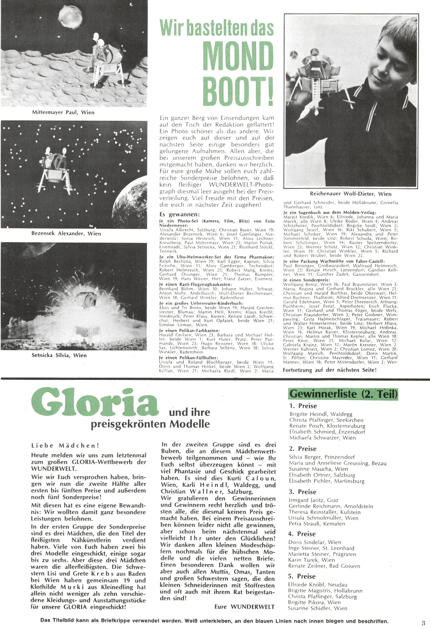 Mondboot-Gewinner / Gloria preisgekrönte Modelle | Preisausschreiben |