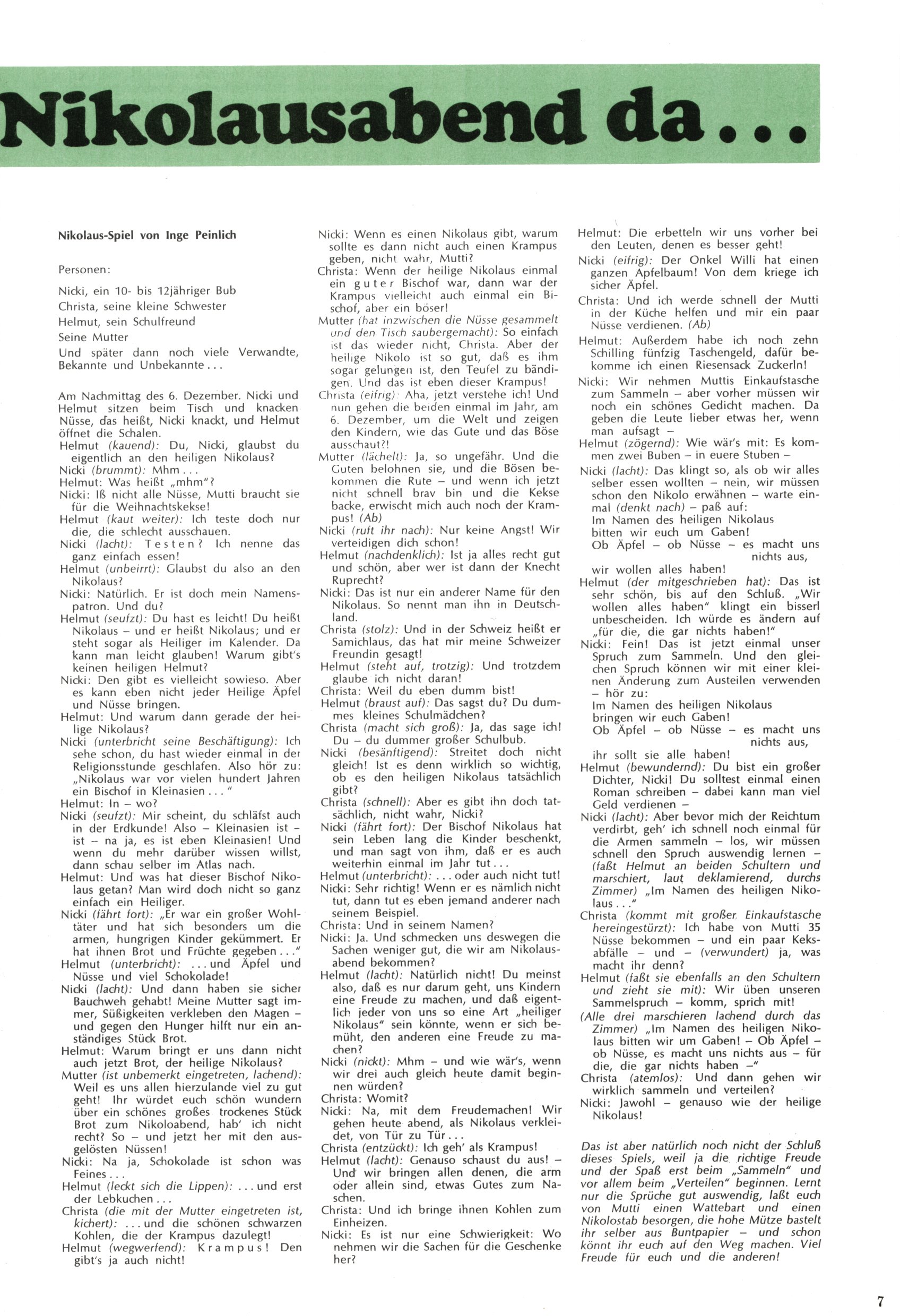 Bald ist Nikolausabend da | Nikolaus-Spiel (Bühnenstück) (MS + Inge Peinlich) |