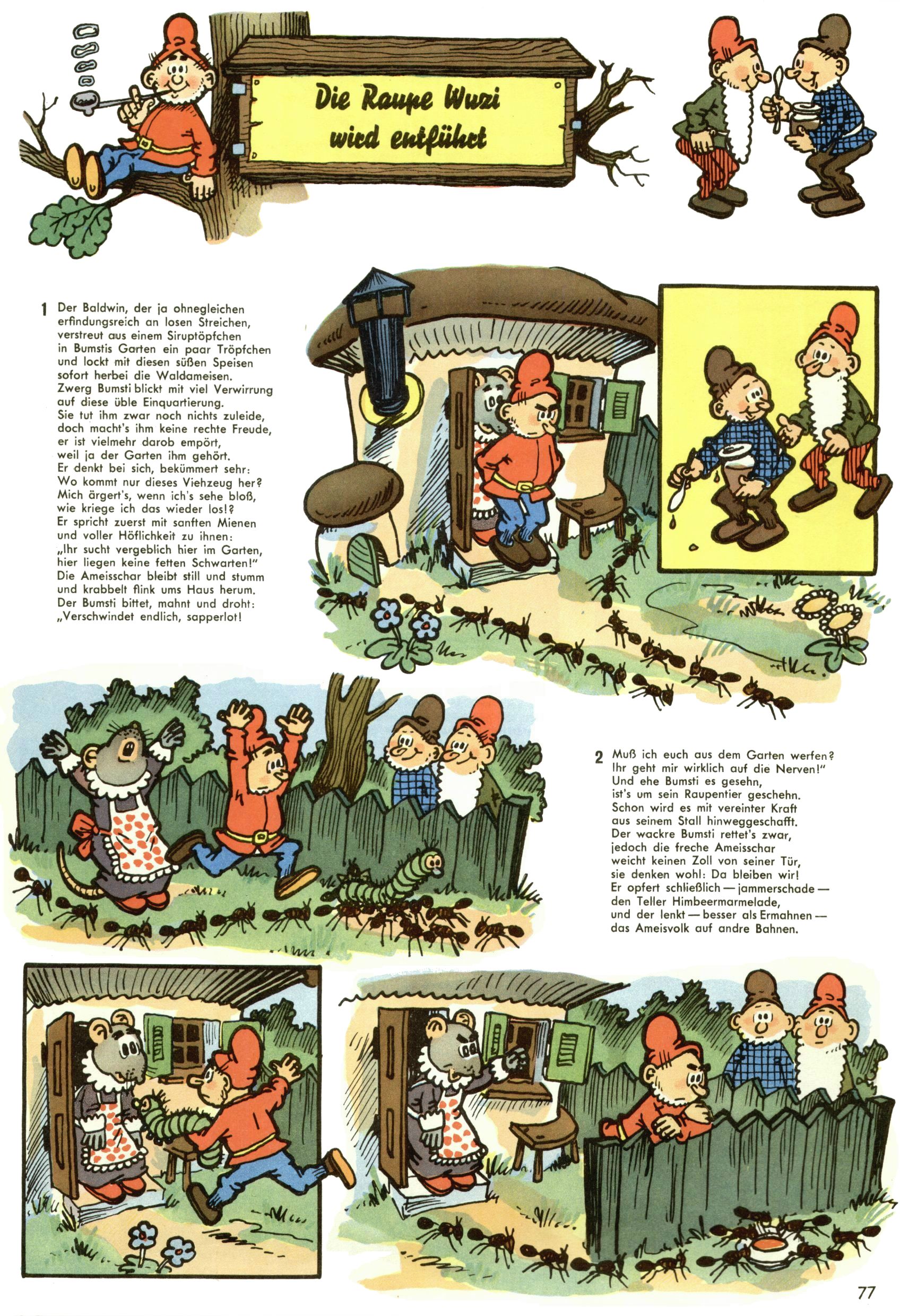 als perfekt. Er stellt dies gleich im ersten Abenteuer "Zwerg Bumsti und die wilde Hummel"
