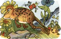 Mit dem Laubfrosch Phillip kommt Bumsti auch gelegentlich zusammen. Meist geht Bumsti dabei unfreiwillig