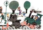beim Versuch, zu fliegen. Dann gibt es noch Klothilde, das Nilpferd, das vor lauter Fressen zerplatzt und im entstehenden Nebel wachsen den Tieren